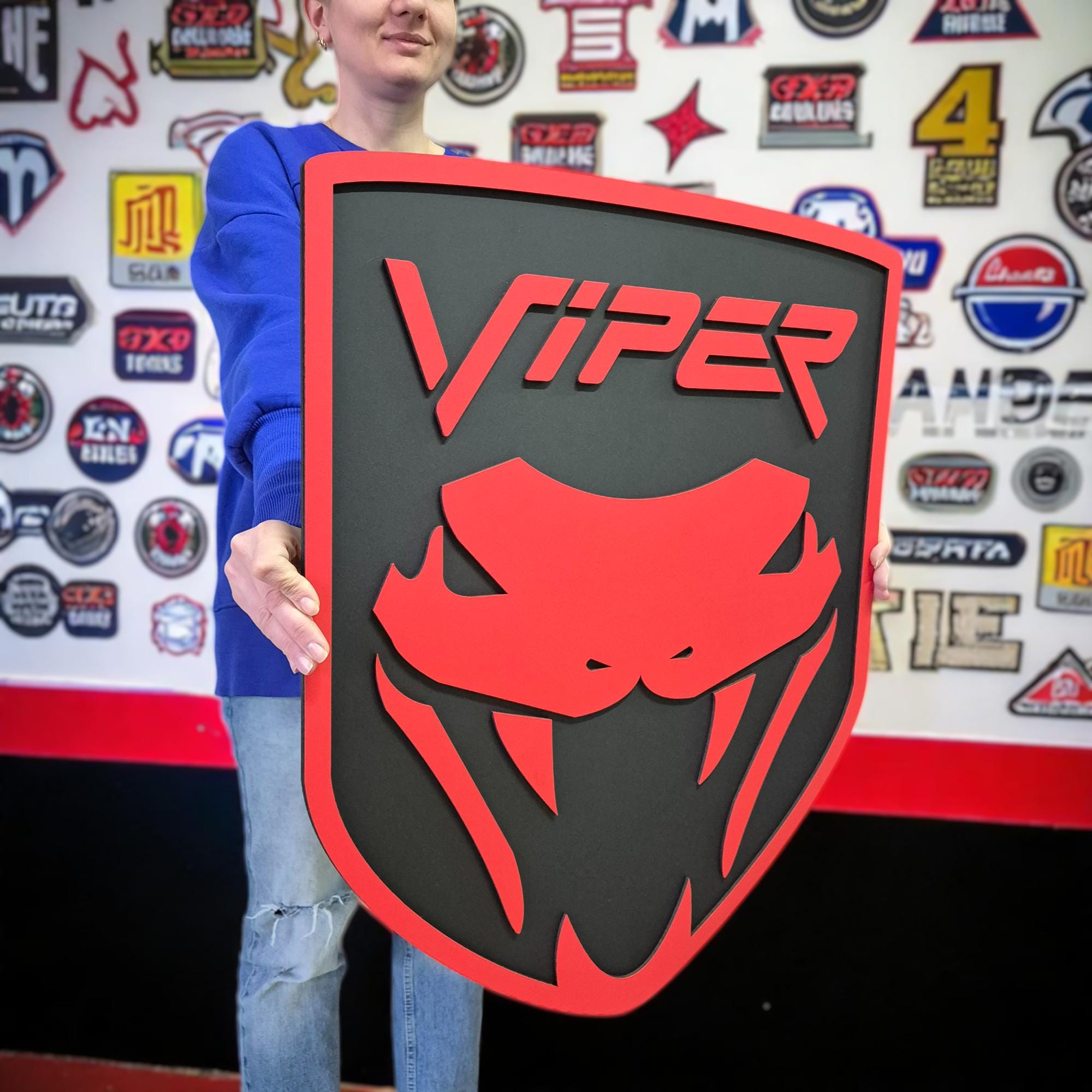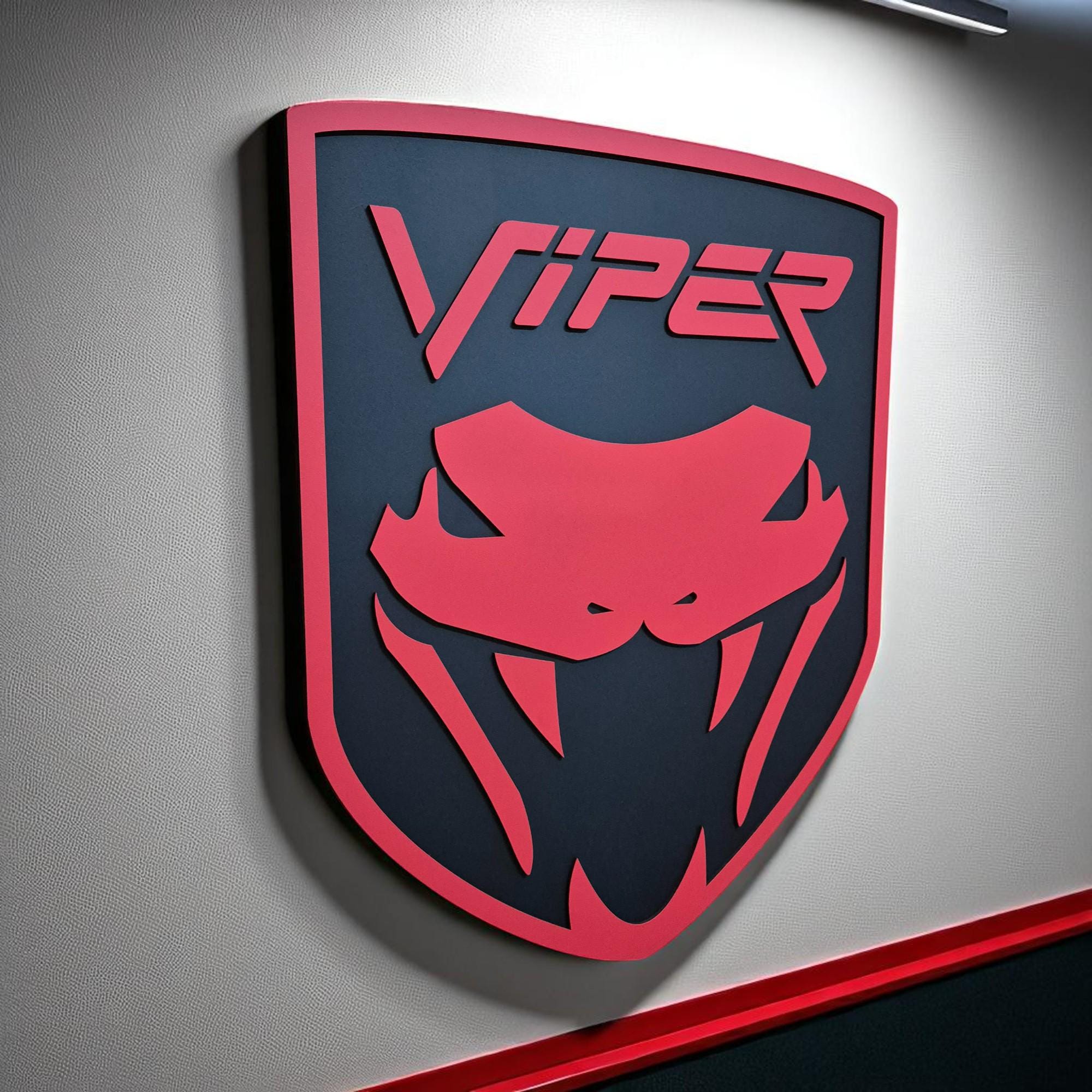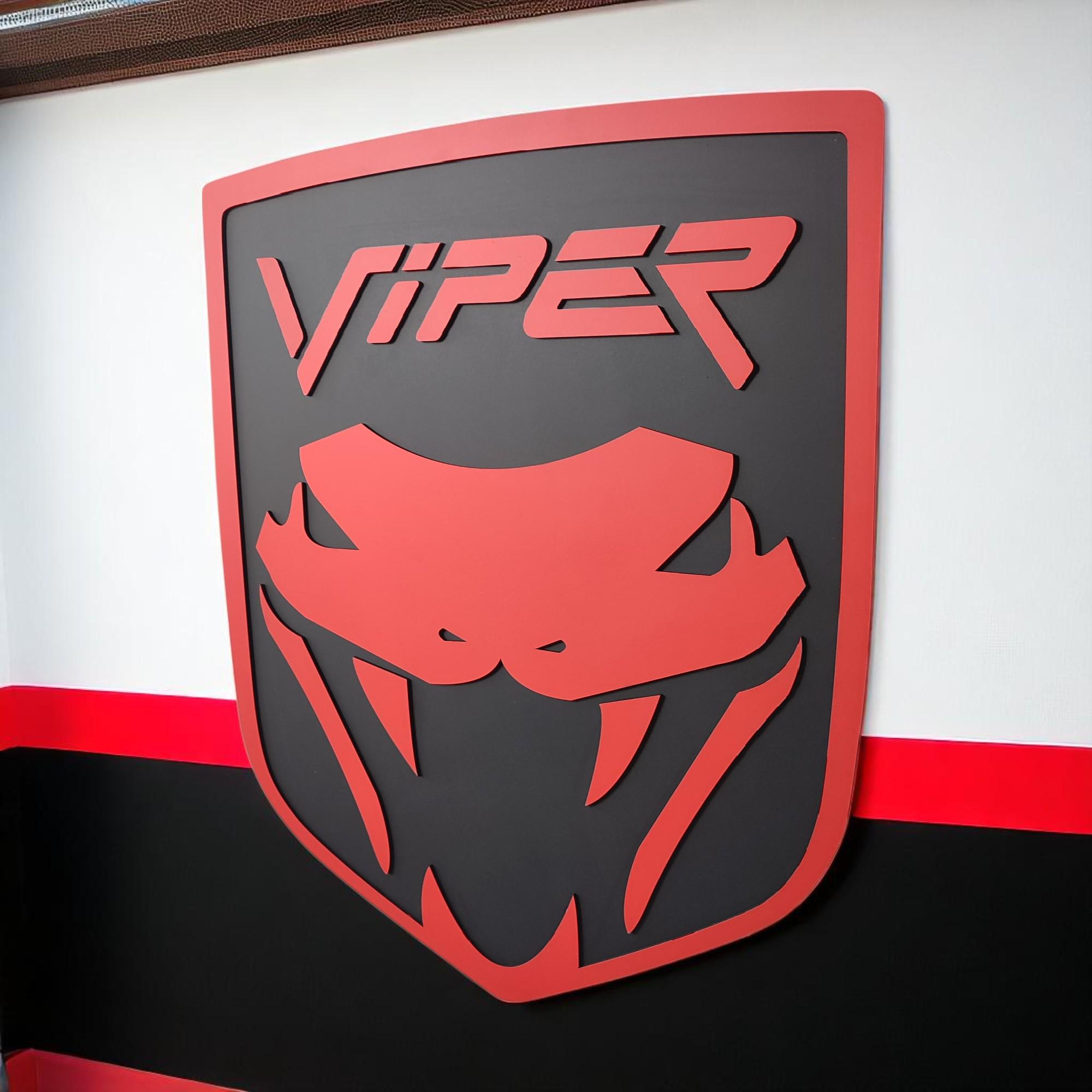 Dodge Viper Wooden Wall Art | American Muscle Car Logo Sign | Garage or Man Cave Decor | Automotive Gift for Racing Enthusiasts