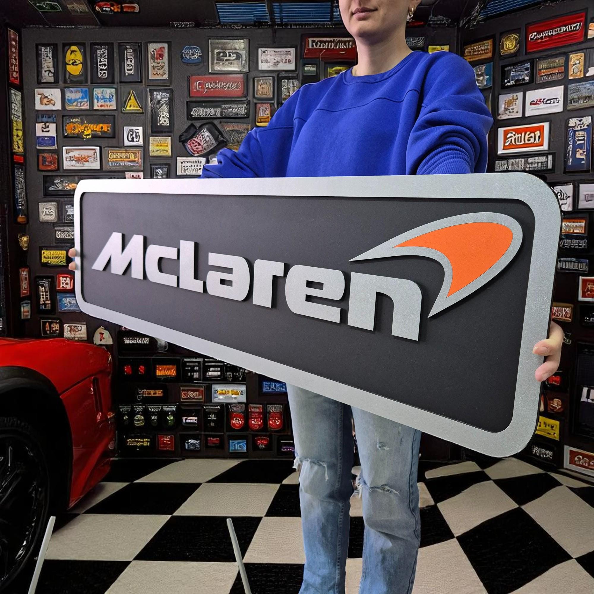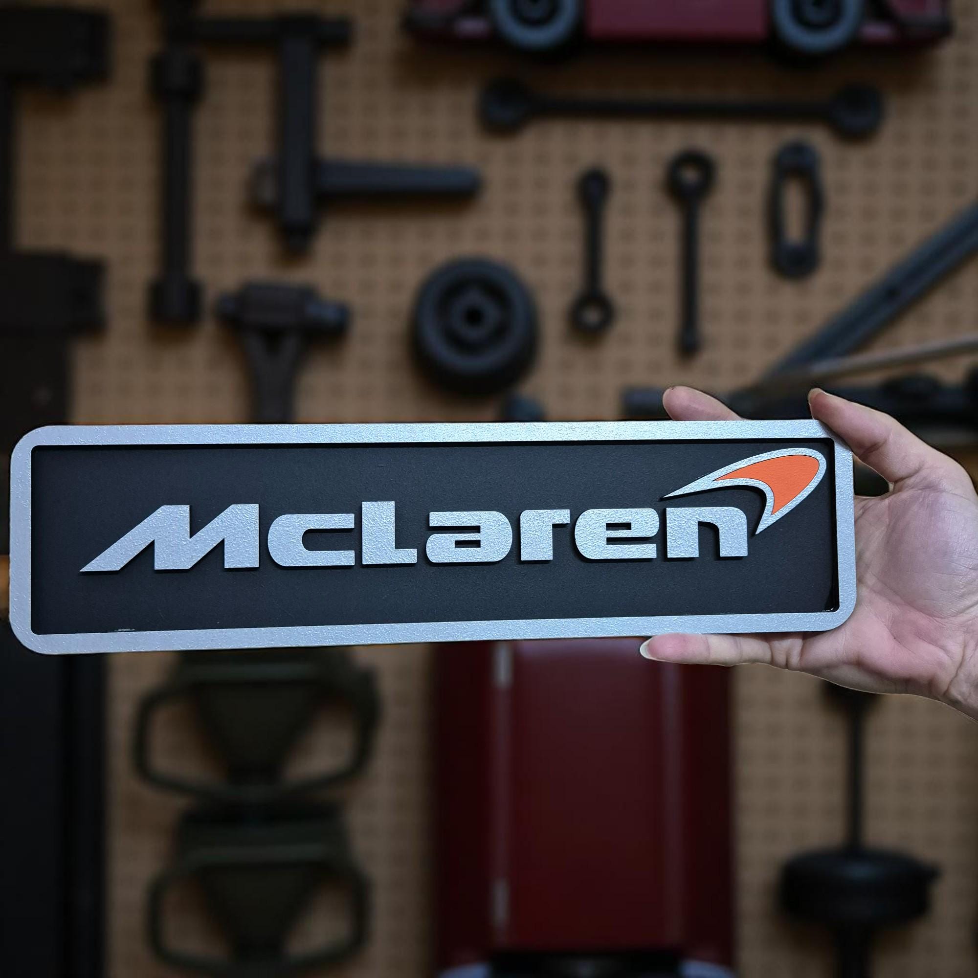 Handmade McLaren Logo Wooden Wall Art: Luxury Garage Decor