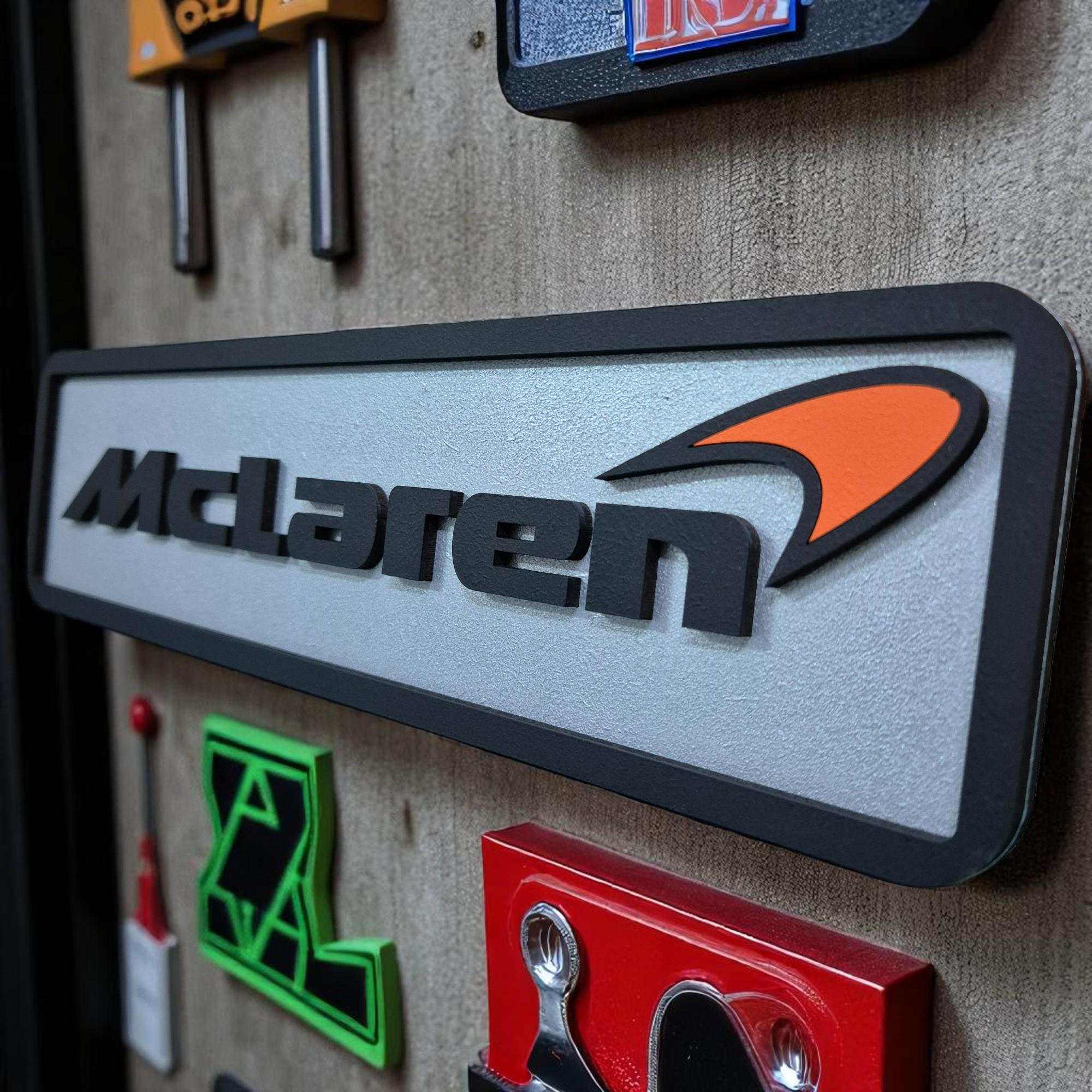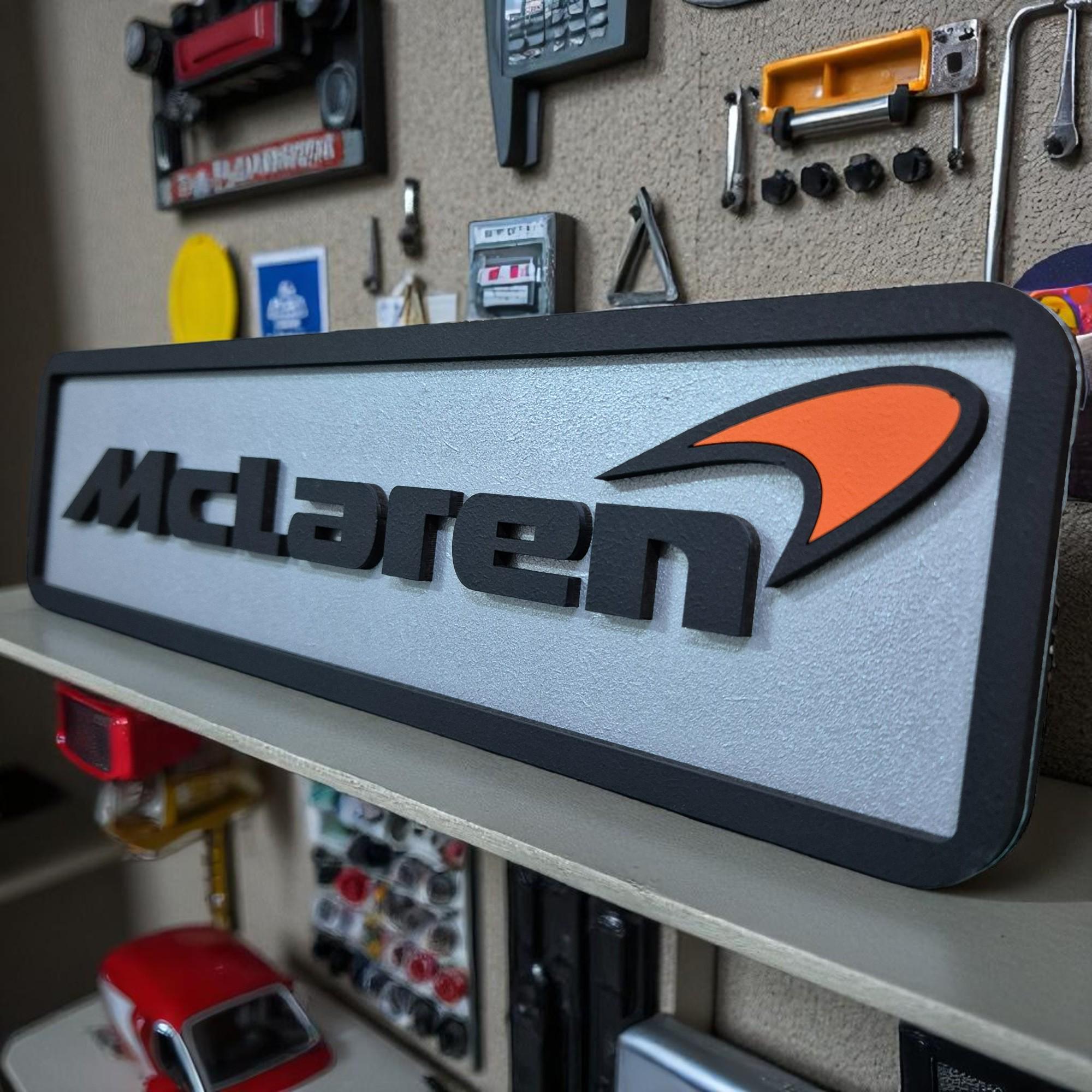 Handmade McLaren Logo Wooden Wall Art: Luxury Garage Decor