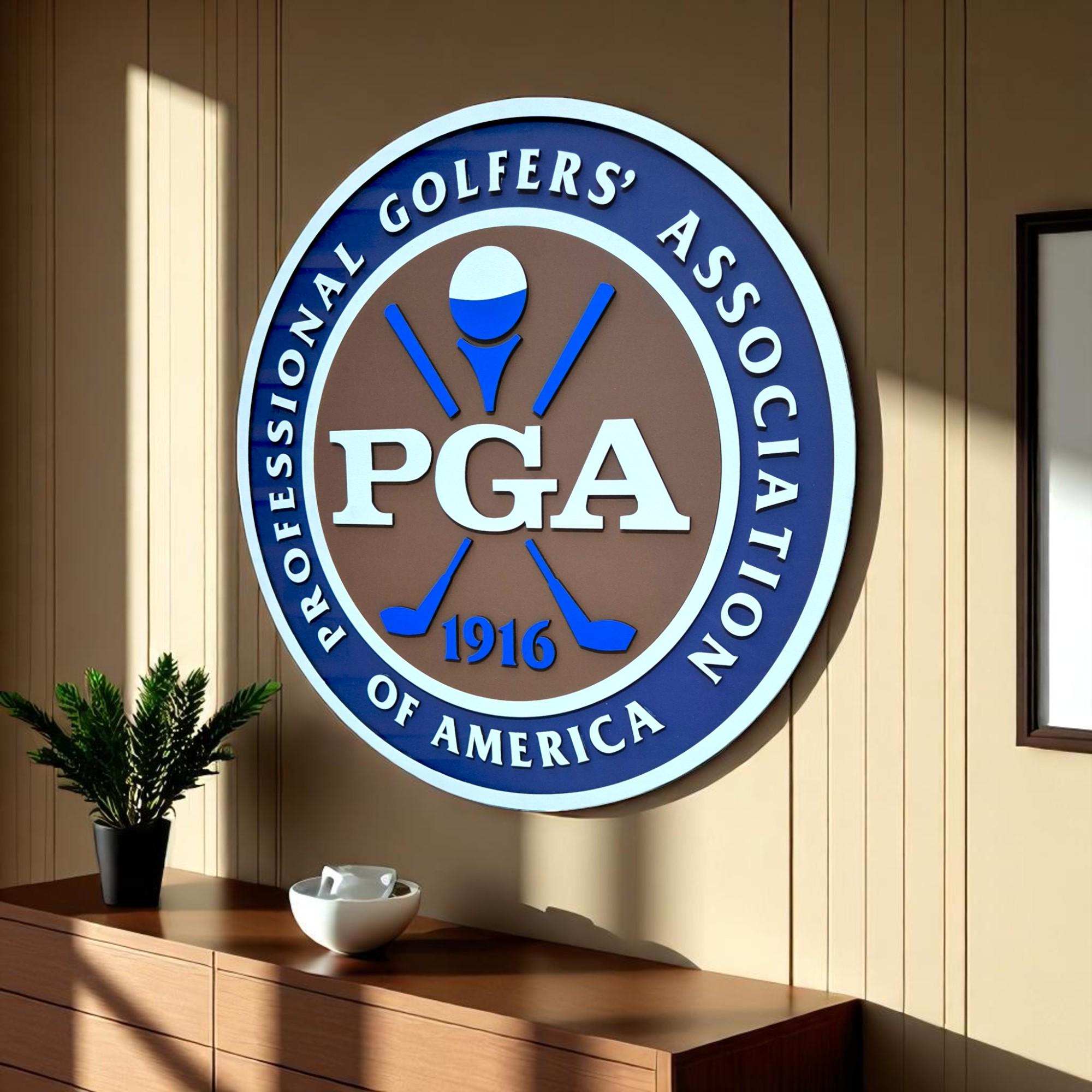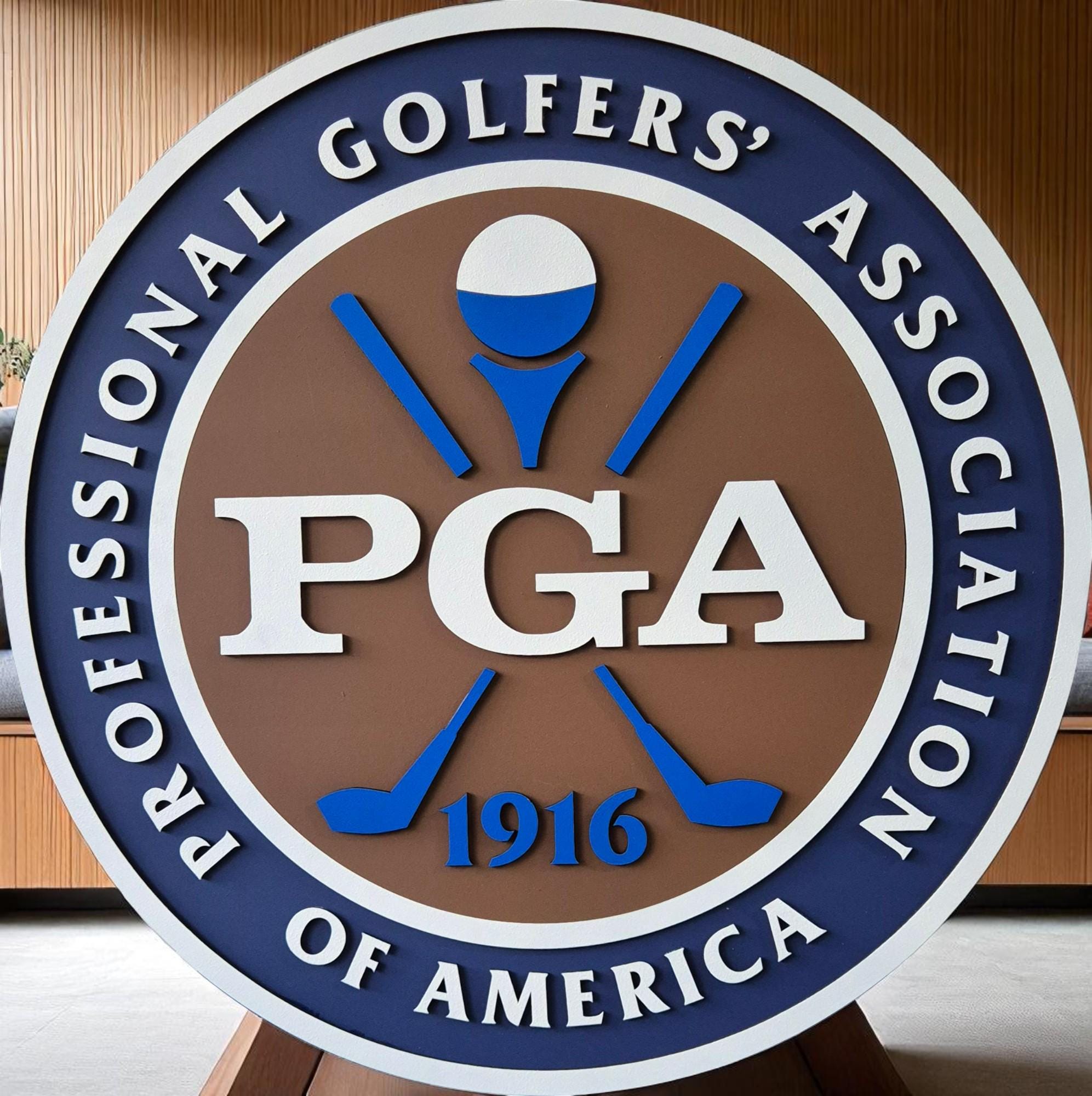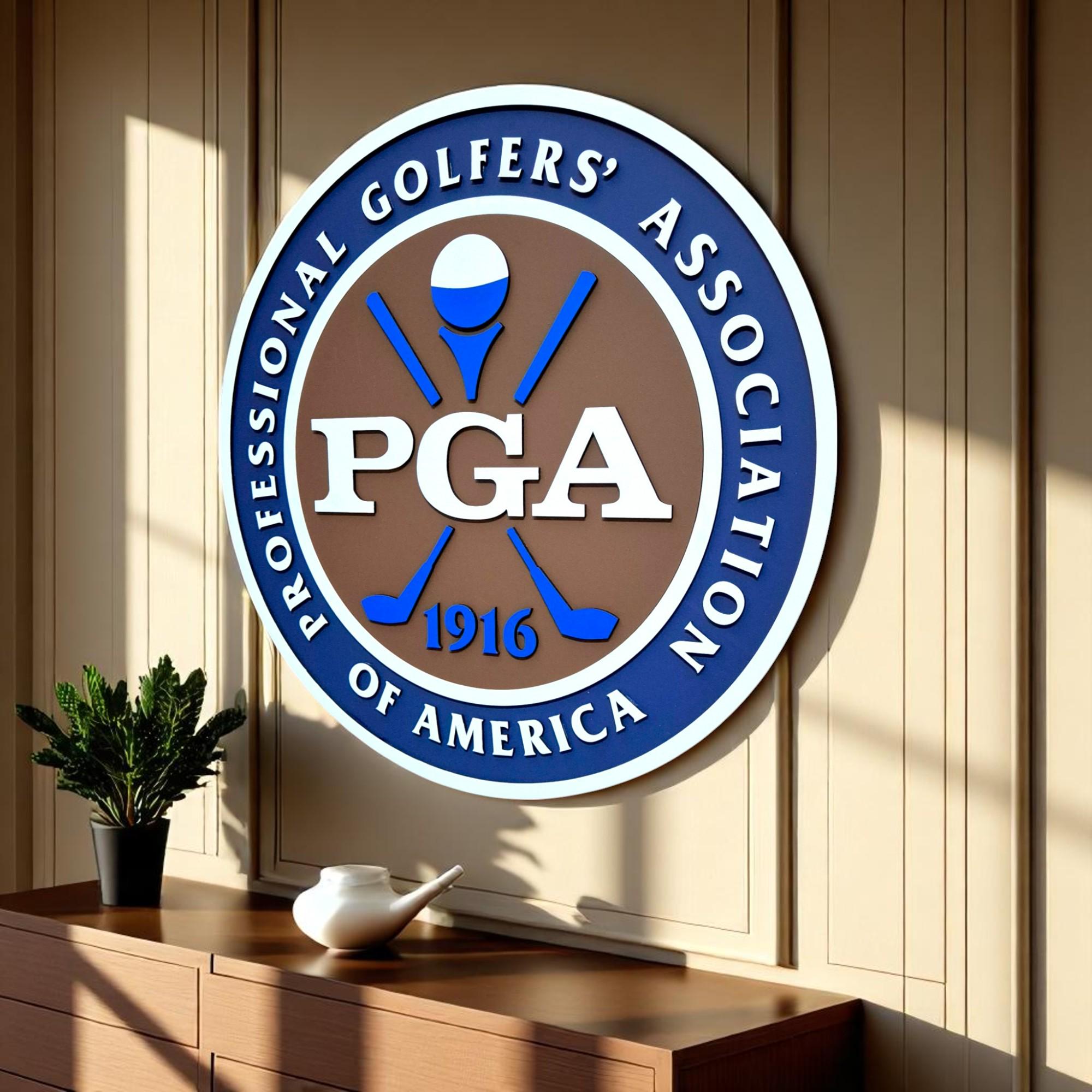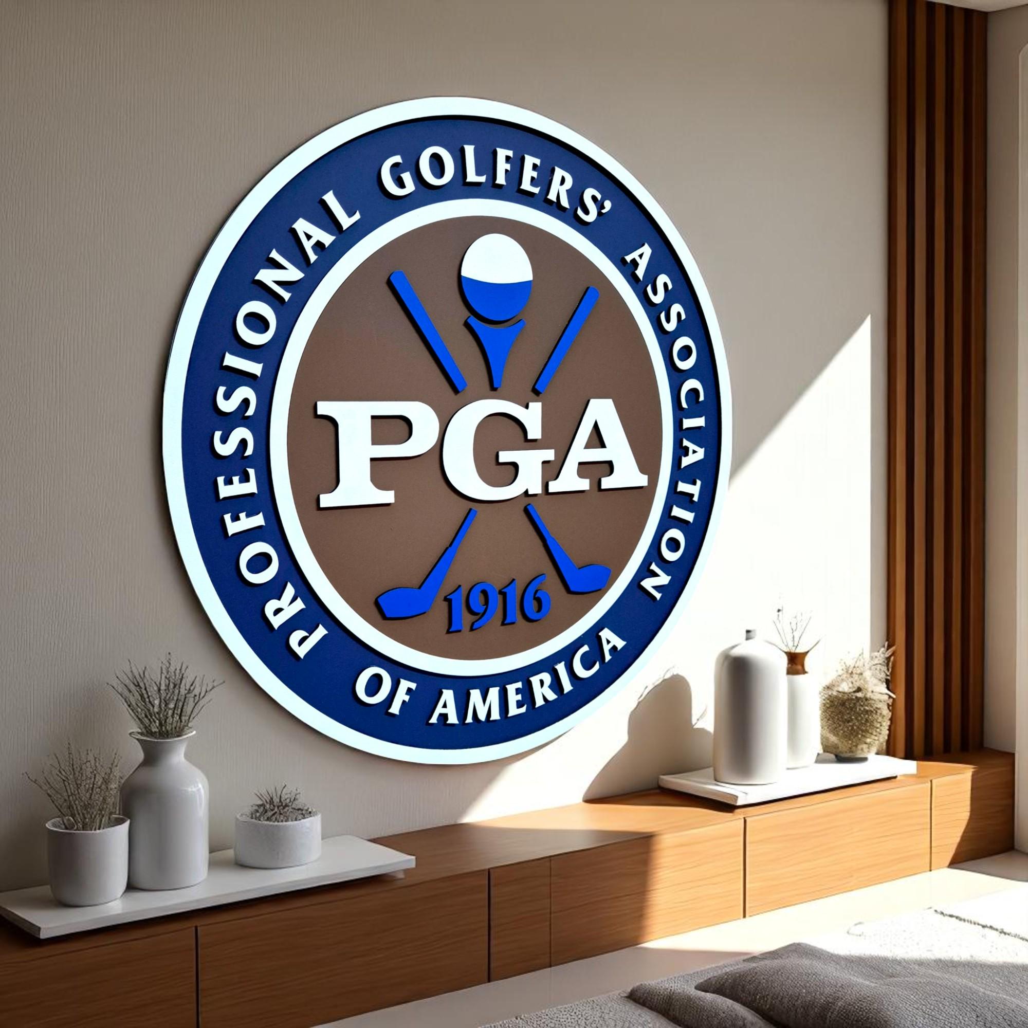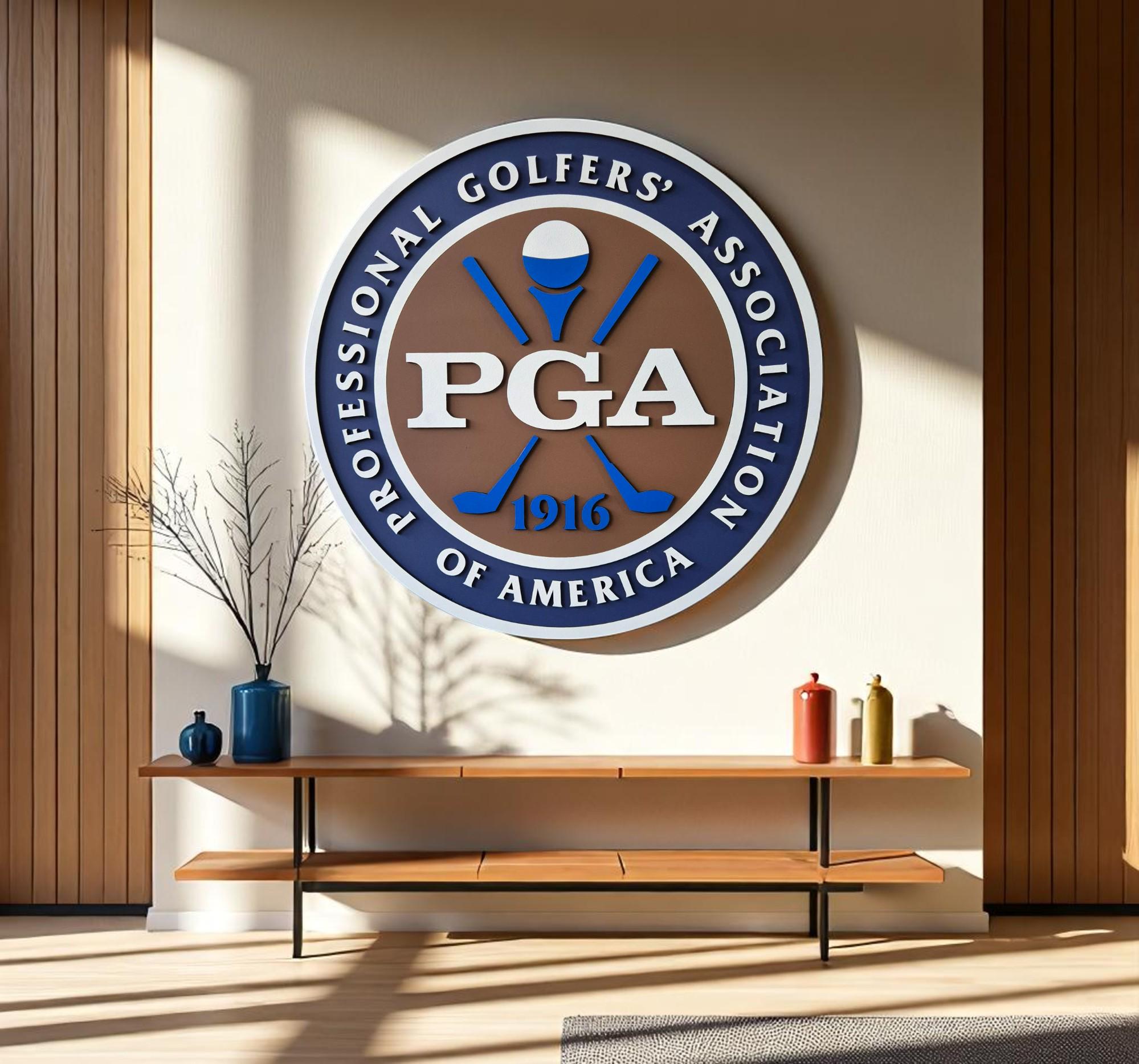 PGA of America, Golf Logo Wall Art, Pro Golfer Decor, Wooden Golf Sign, Golf Office Wall Hanging, Man Cave Golf Art, Golf Instructor Gift, Classic Golf Emblem, Golf Room Decor, Handmade Sports Sign, MDF Golf Plaque, Custom Golf Art, PGA Professional Gift, Golf Academy Wall Art