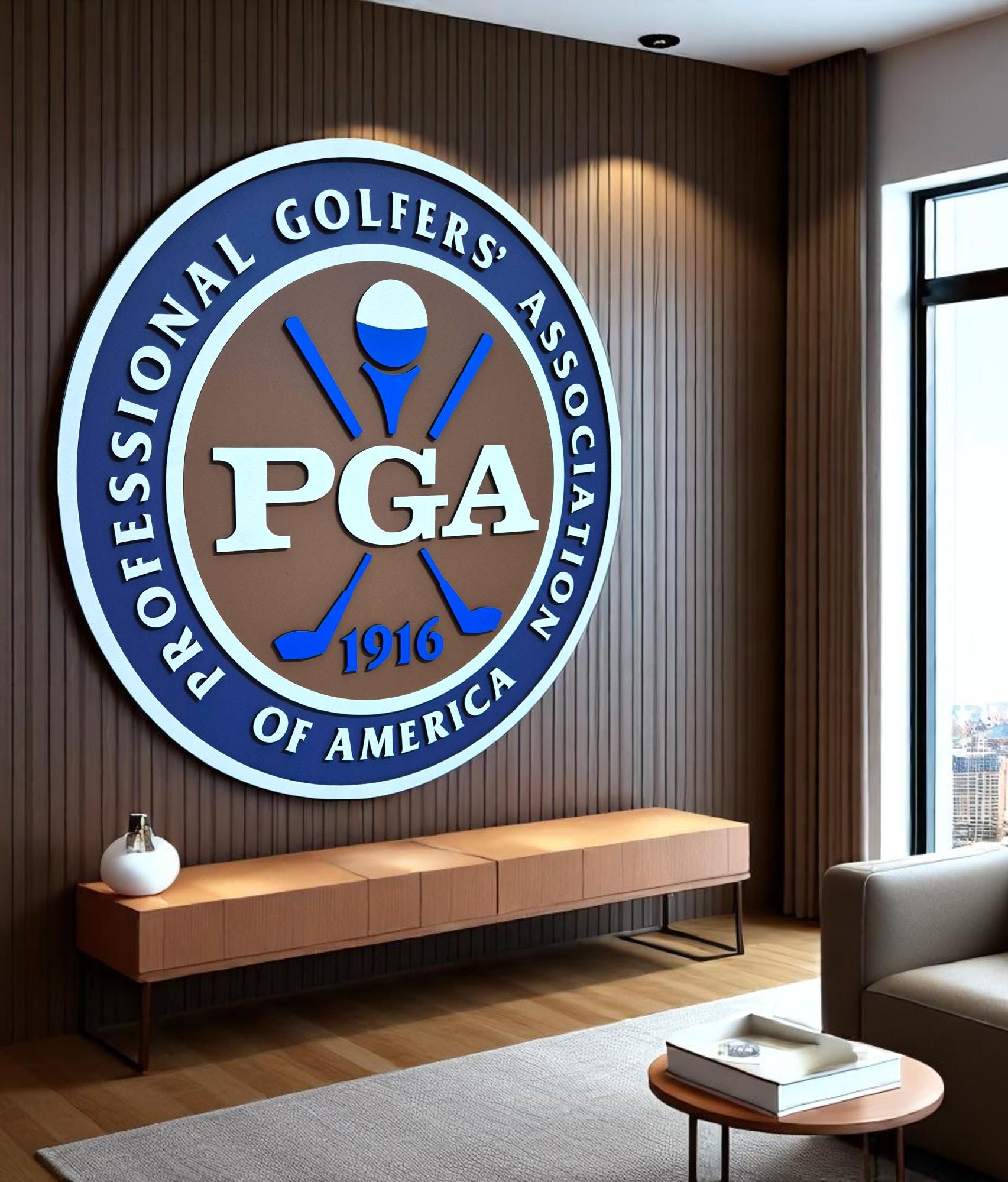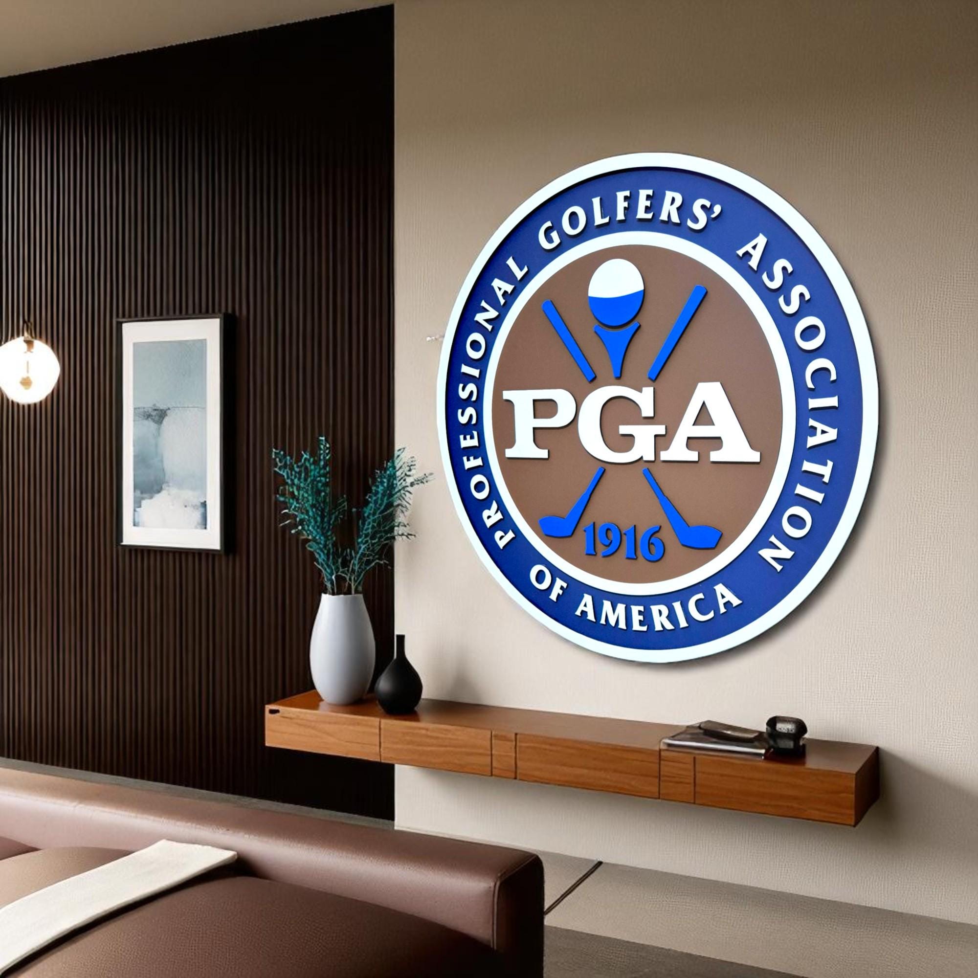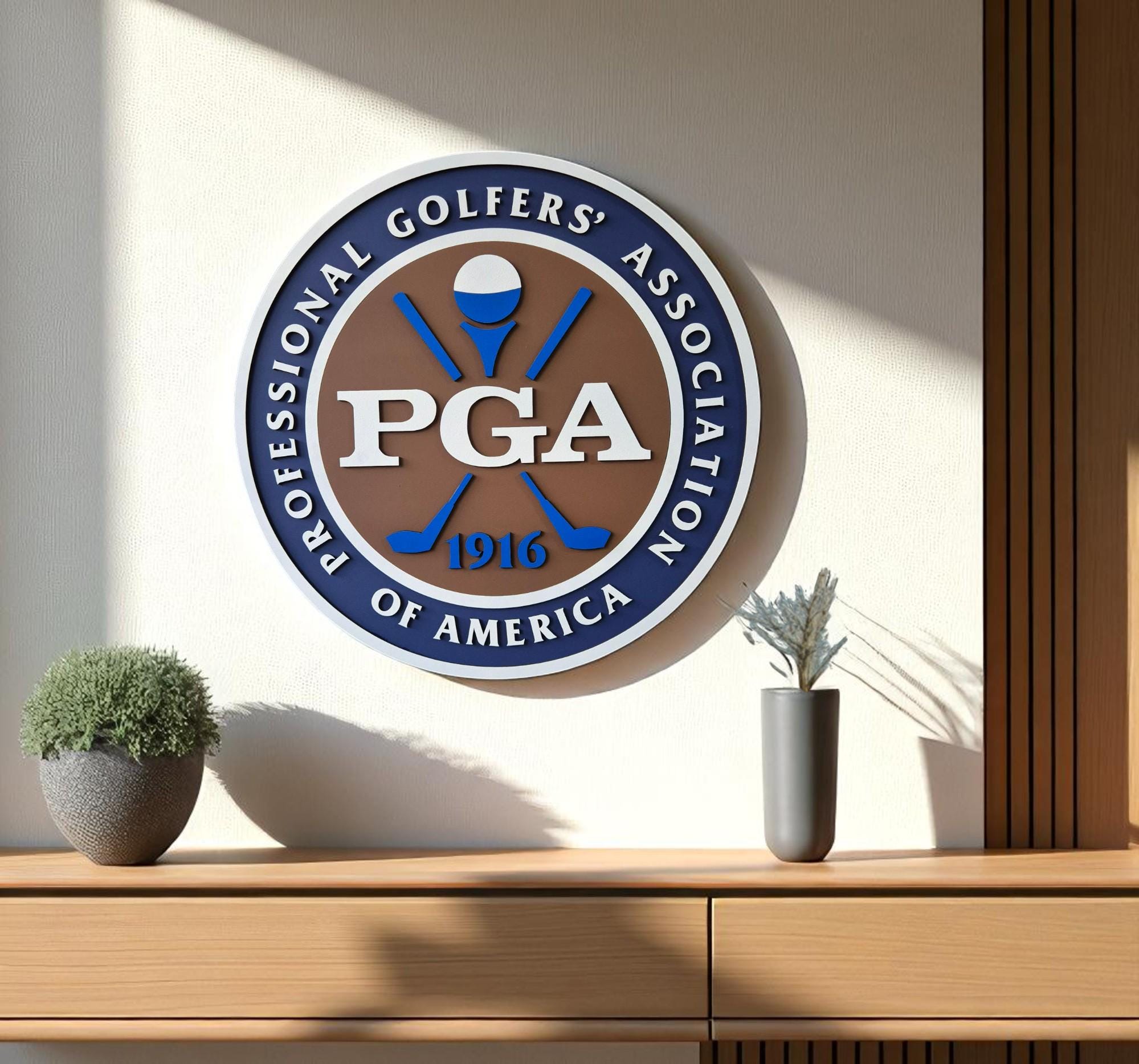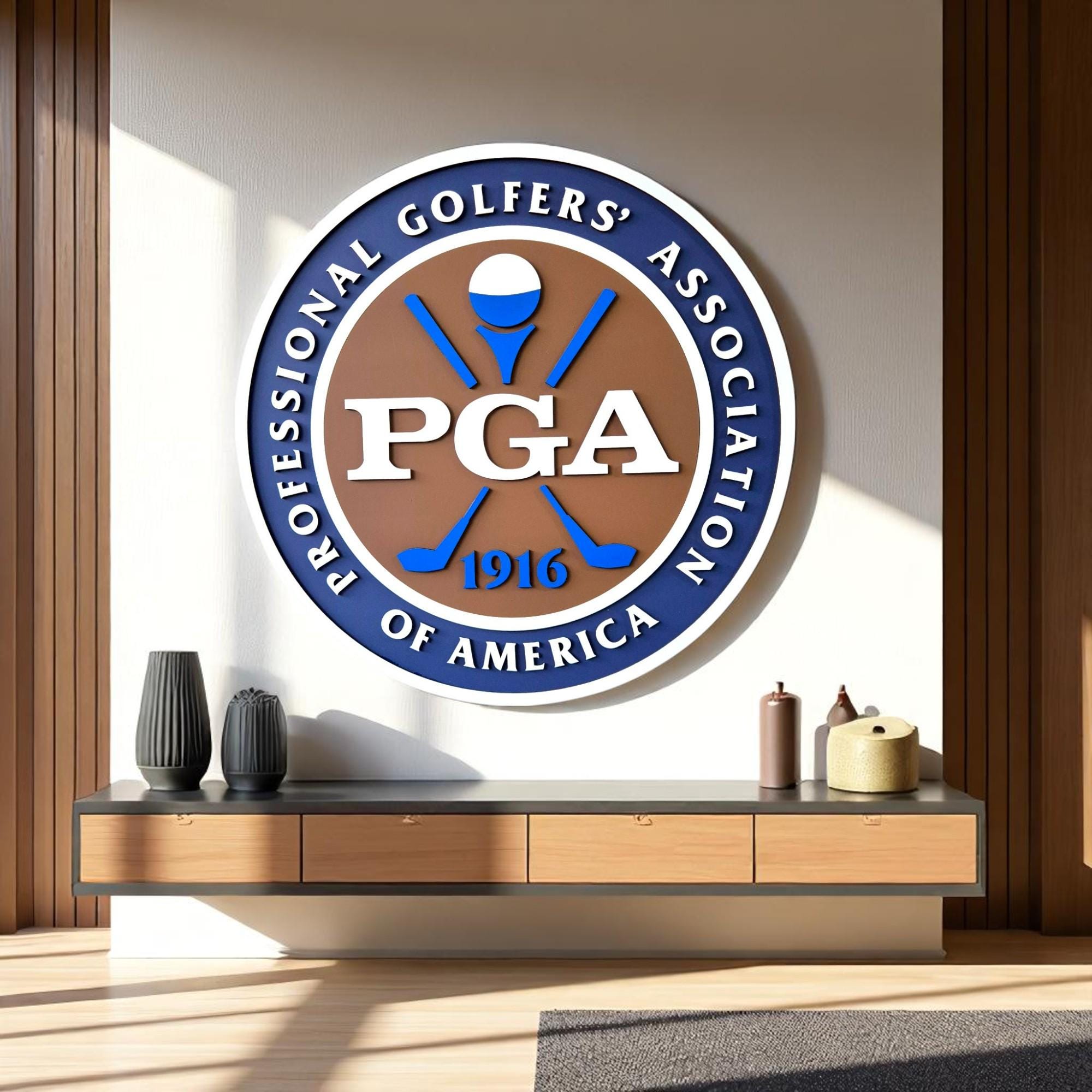 PGA of America Wooden Wall Art | Classic Golf Logo Sign | Gift for Golf Lovers | Office or Man Cave Decor | Pro Golfer Wall Display