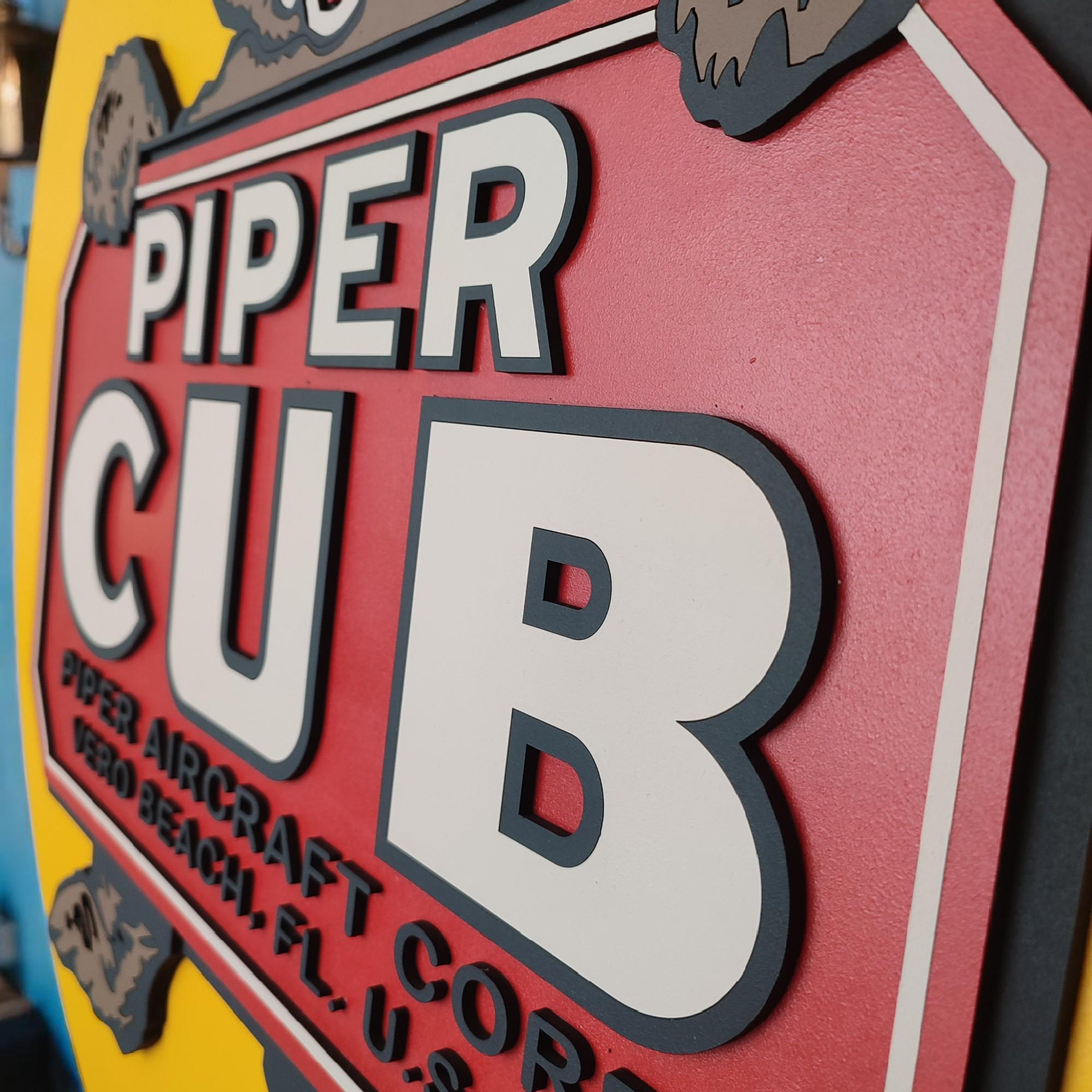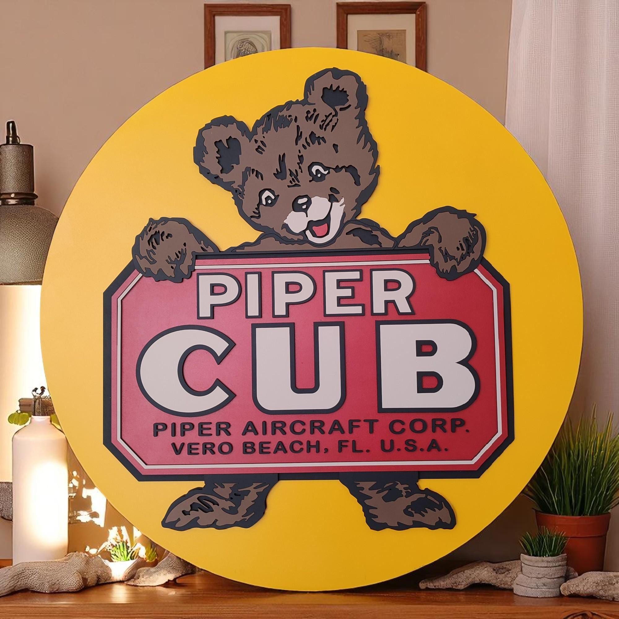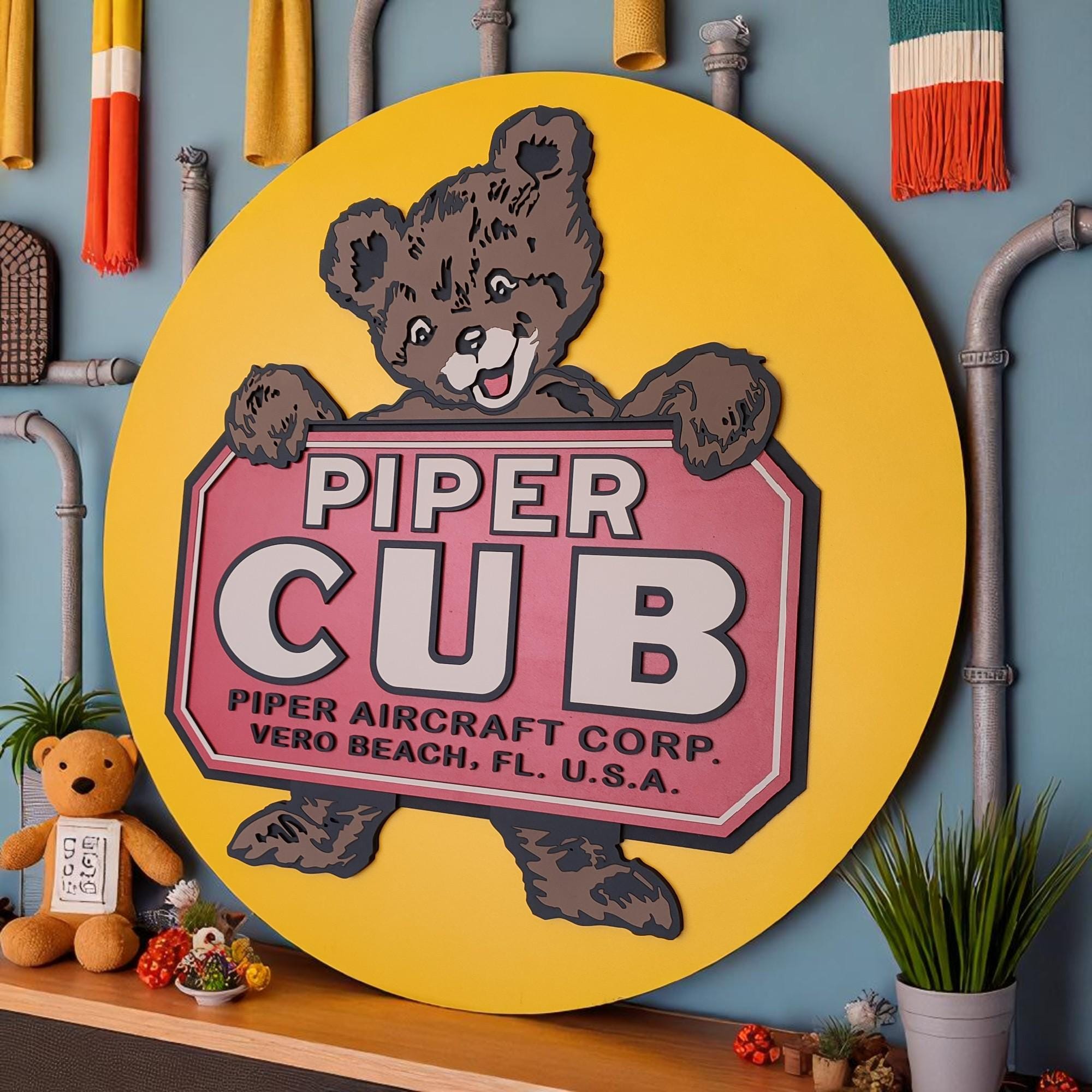 Piper Cub Ahşap Logo Duvar Sanatı | Vintage Uçak İşareti | Klasik Uçak Dekoru | Pilot Hediyesi | Ofis İçin Havacılık Duvar Süsü