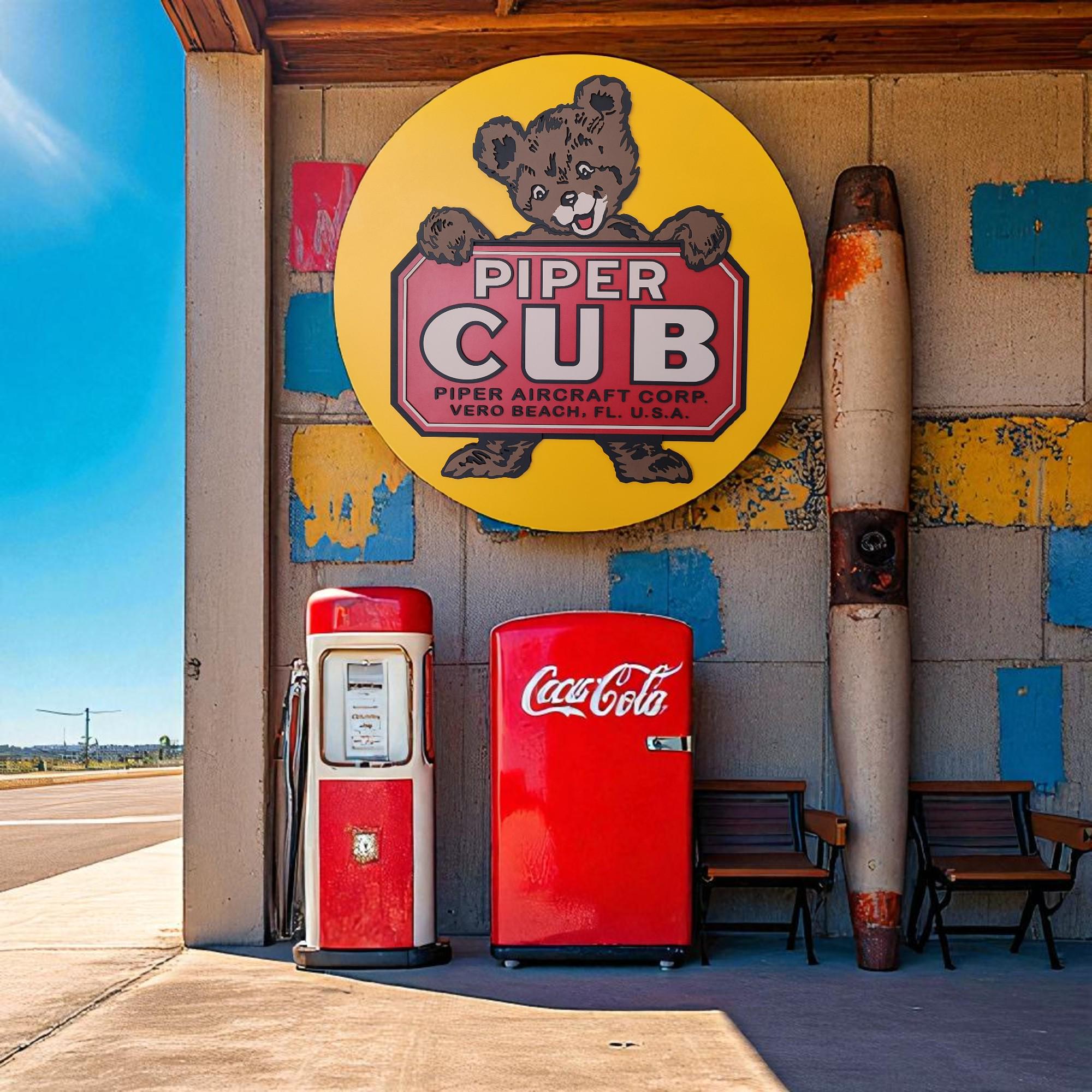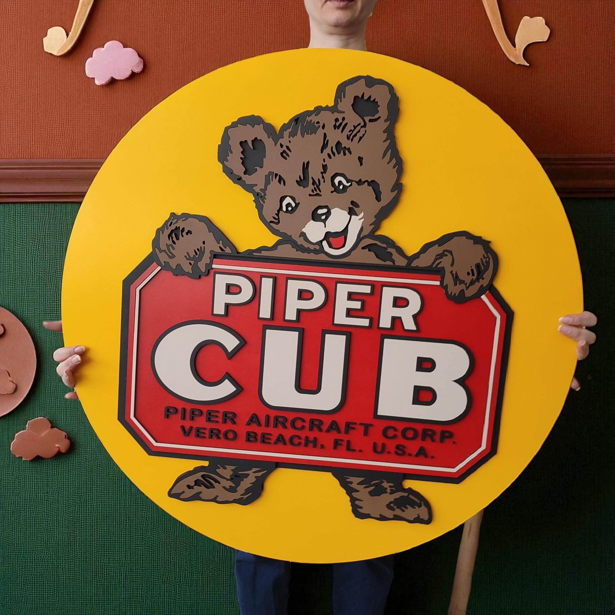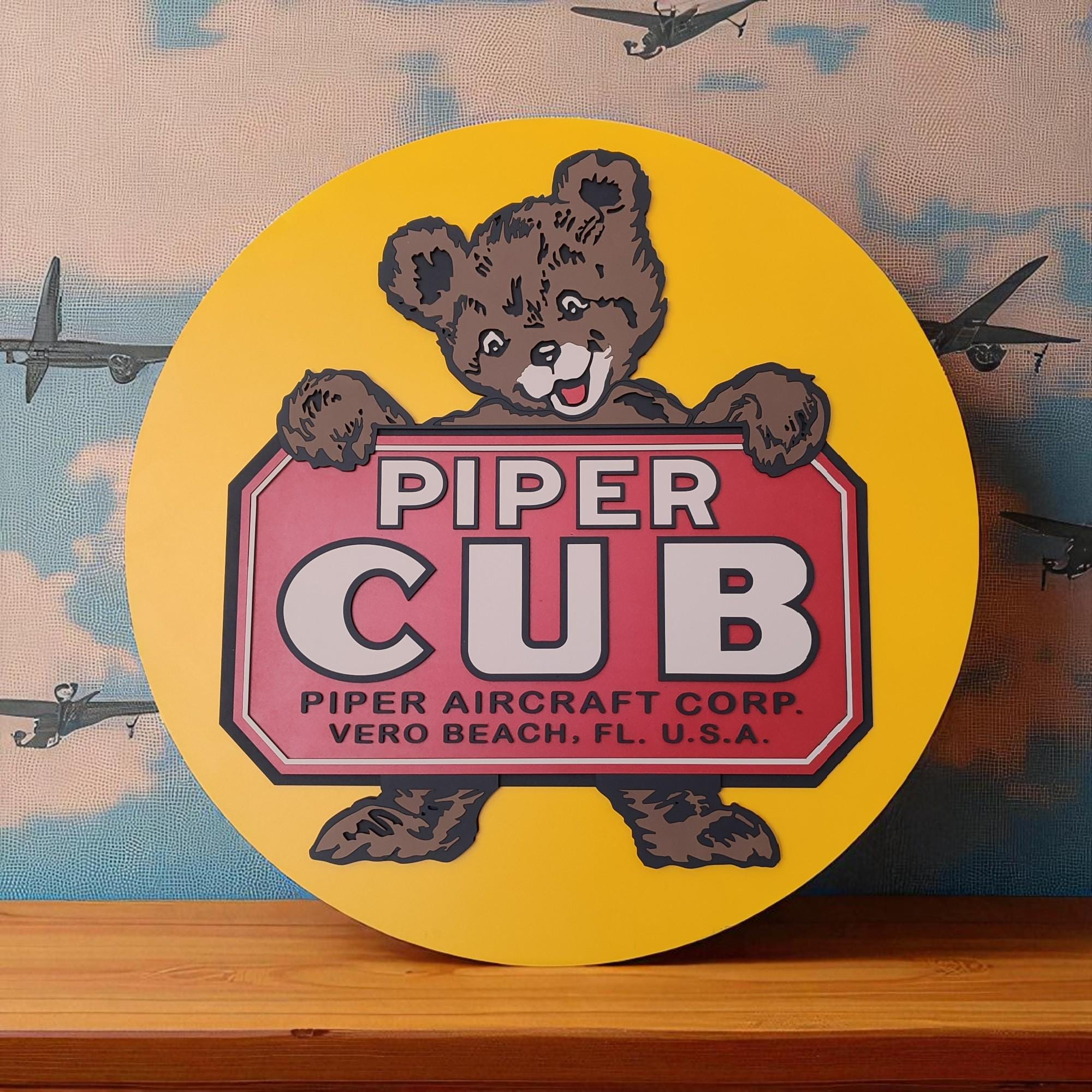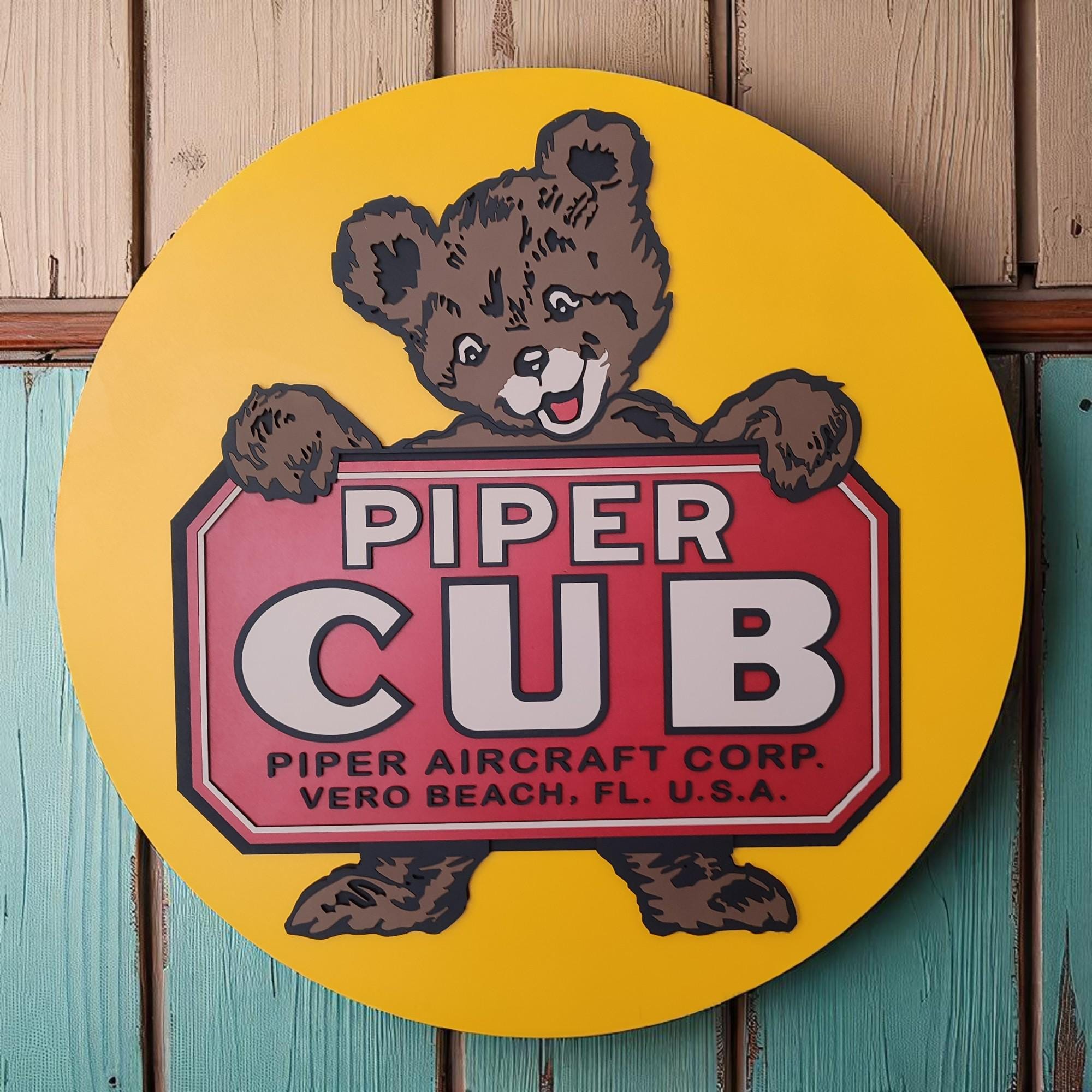 Piper Cub Ahşap Logo Duvar Sanatı | Vintage Uçak İşareti | Klasik Uçak Dekoru | Pilot Hediyesi | Ofis İçin Havacılık Duvar Süsü