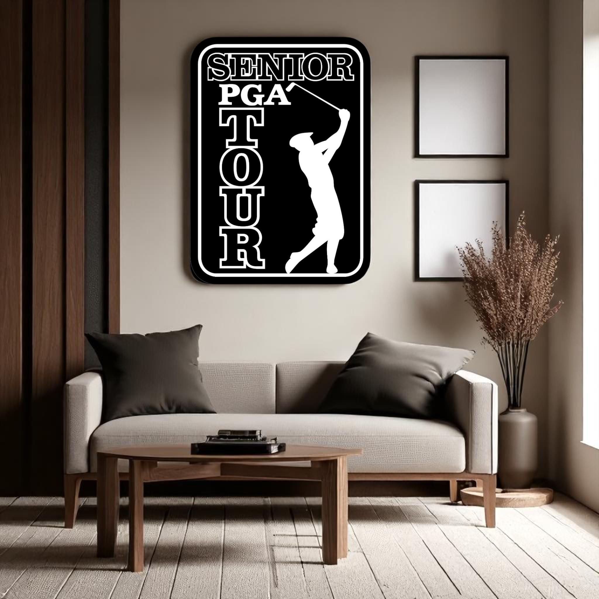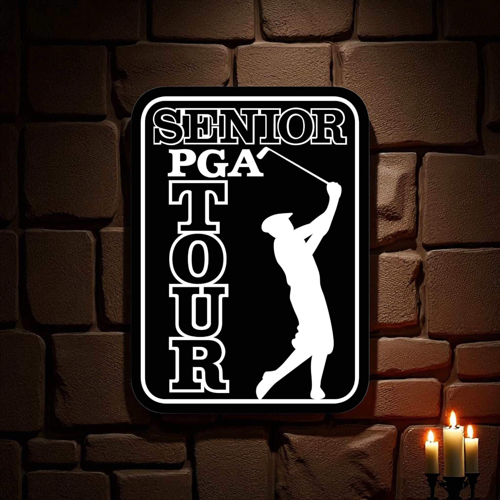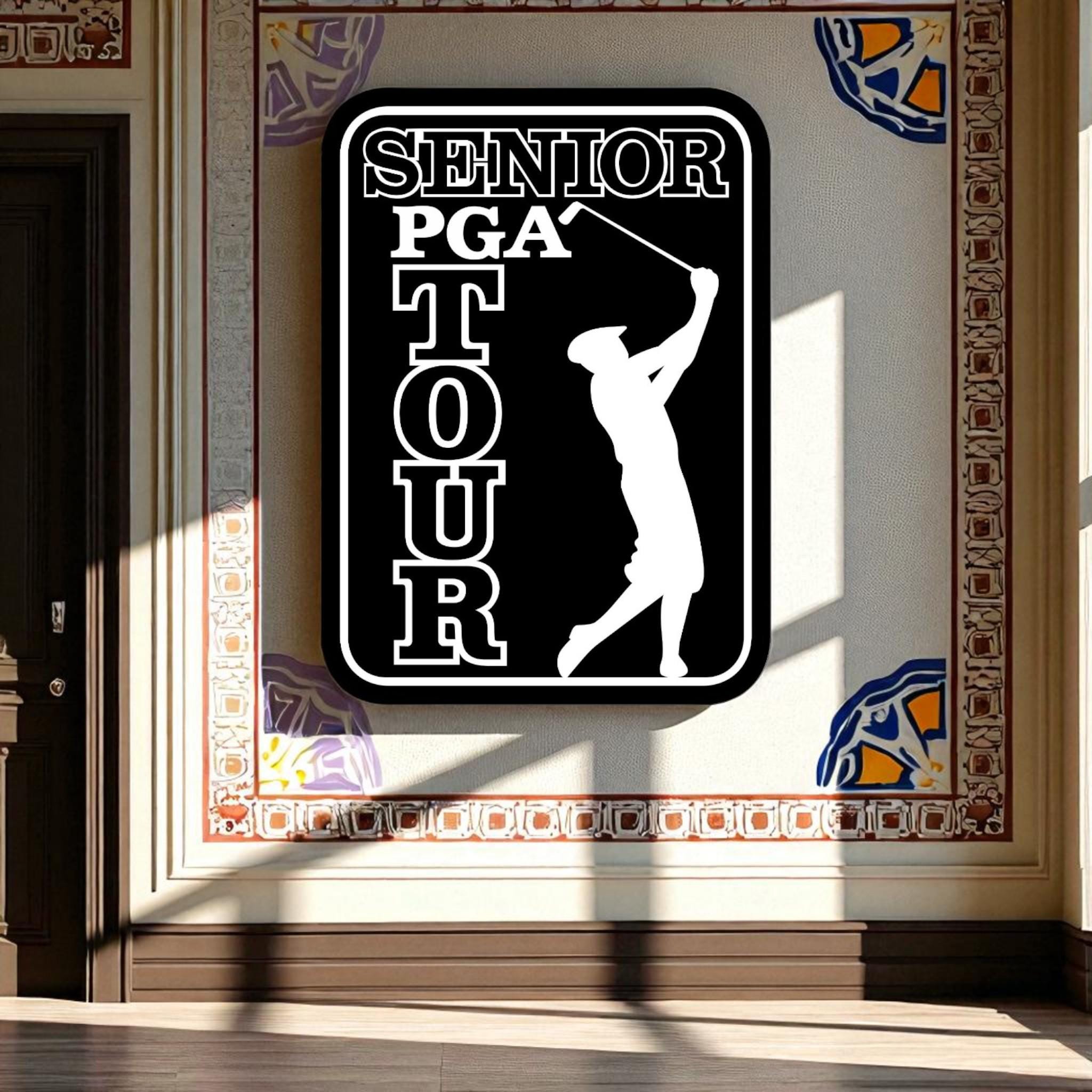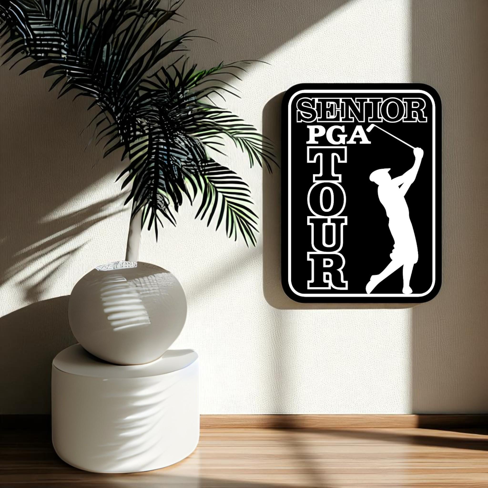 Senior PGA Tour, Golf Legends Wall Art, Wooden Golf Sign, Retired Golfer Gift, Man Cave Golf Decor, Office Golf Artwork, Classic Golf Tour Logo, Handmade Sports Wall Art, Golf Enthusiast Gift, MDF Golf Plaque, Custom Golf Decor, Vintage Golf Sign, PGA Wall Hanging, Golf Retirement Gift