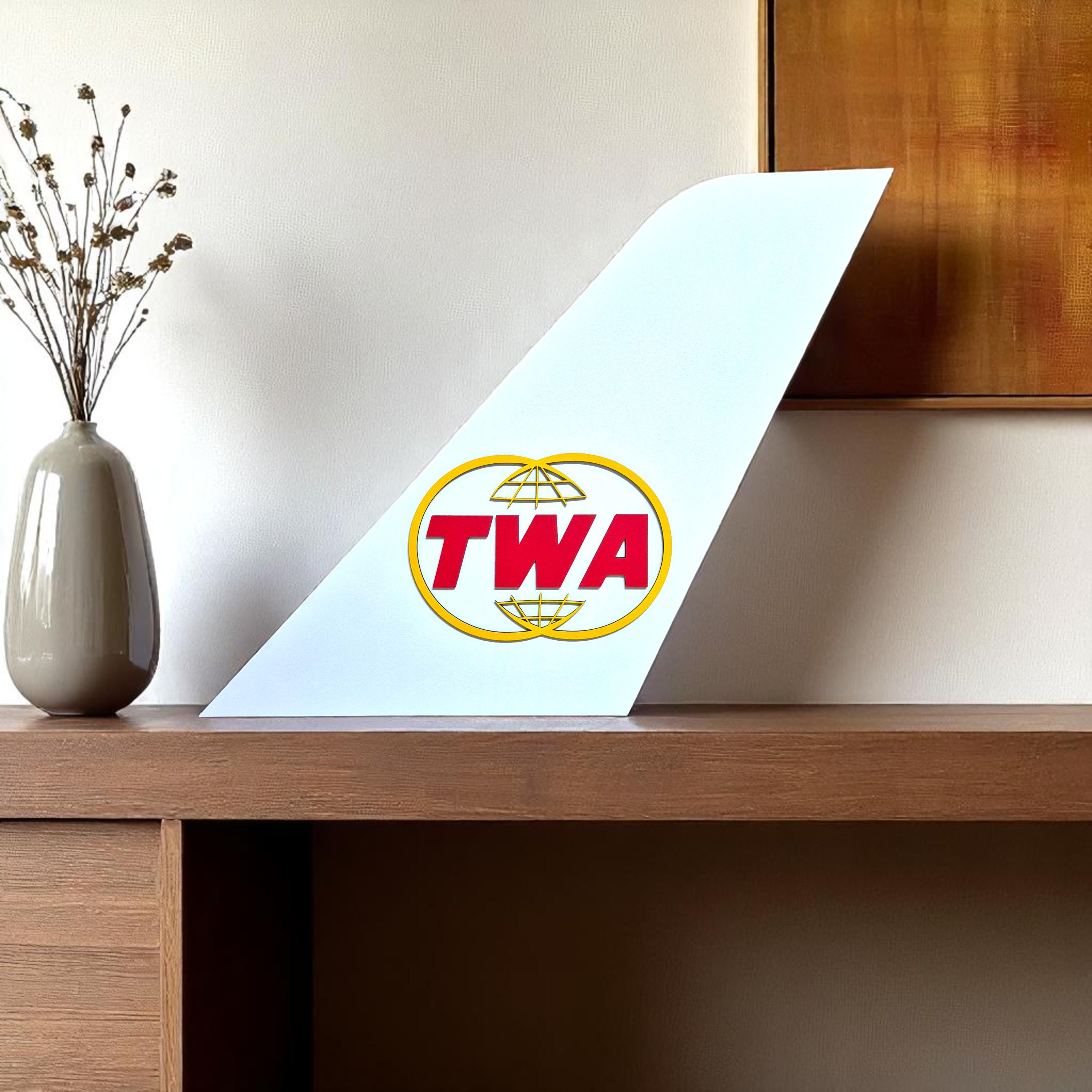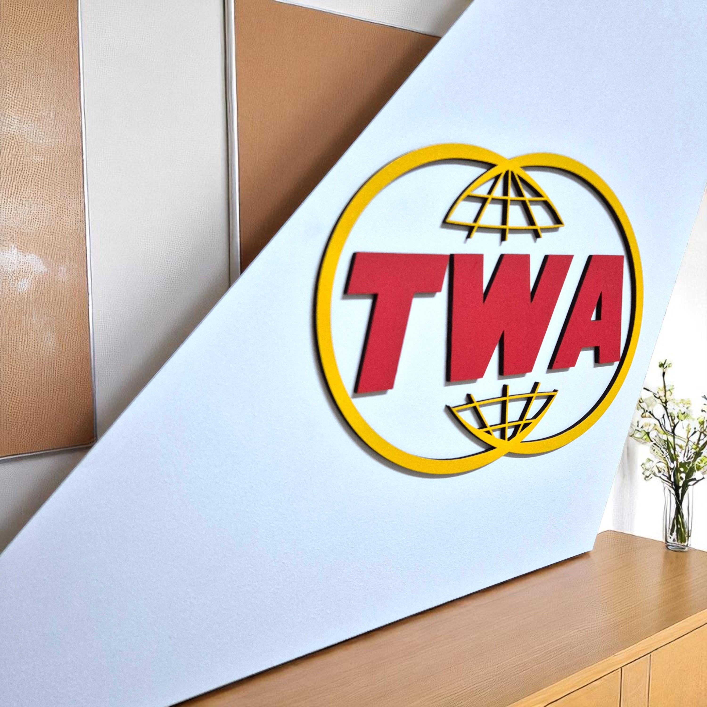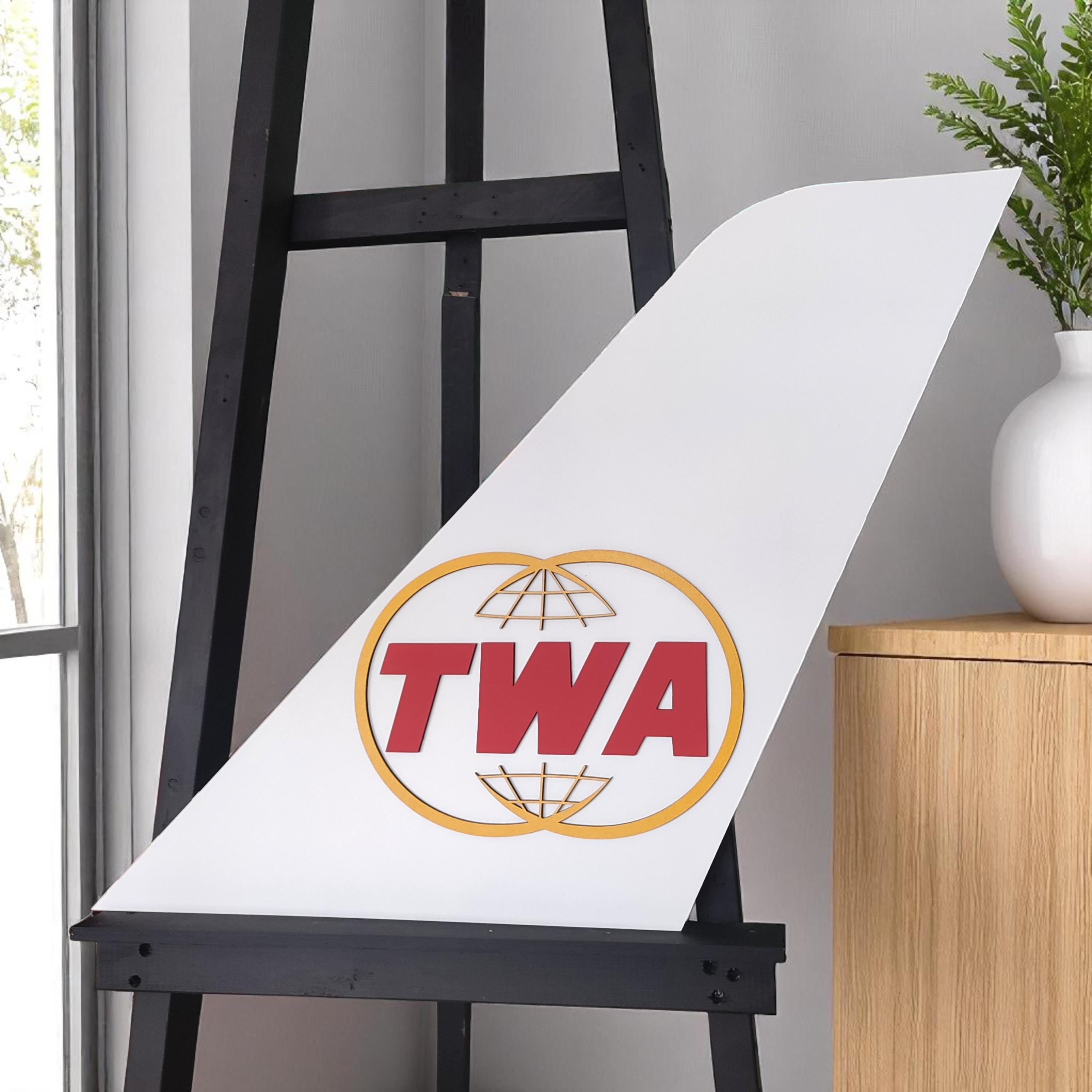 TWA tail art, vintage airline decor, retro airplane sign, pilot gift, Trans World Airlines, aviation wall art, airline memorabilia, wooden aircraft decor, aviation gift, flight history wall piece, handmade airplane sign, airline office wall art, nostalgic travel decor, custom aviation tail