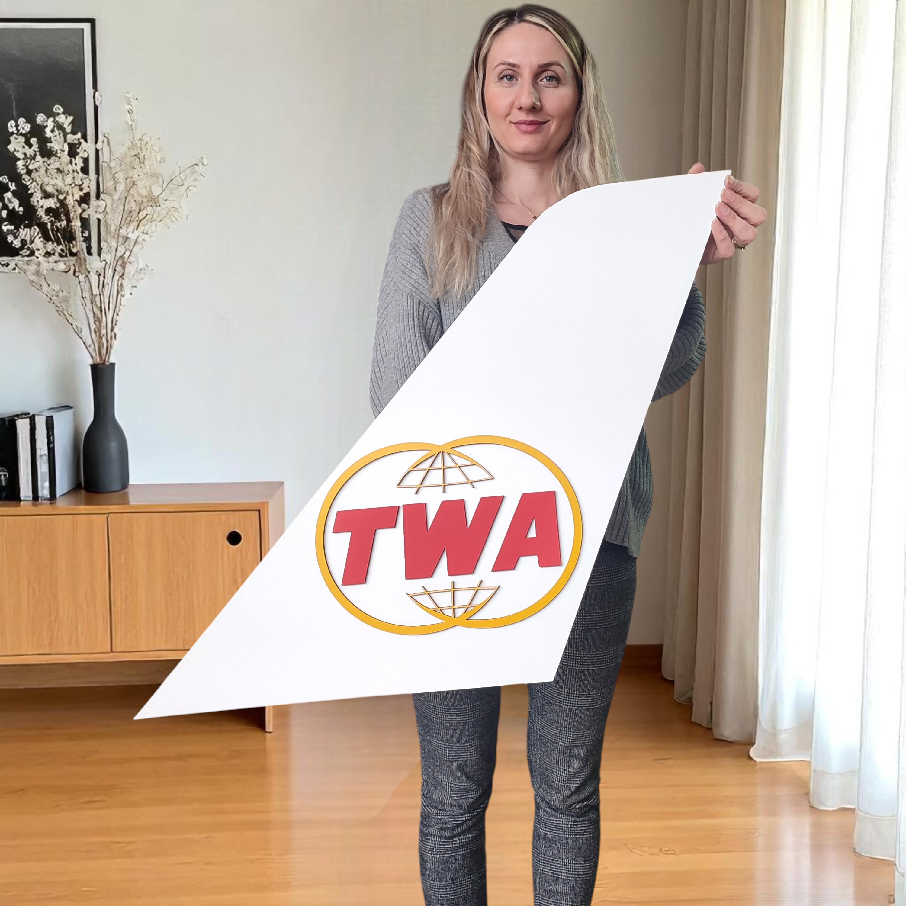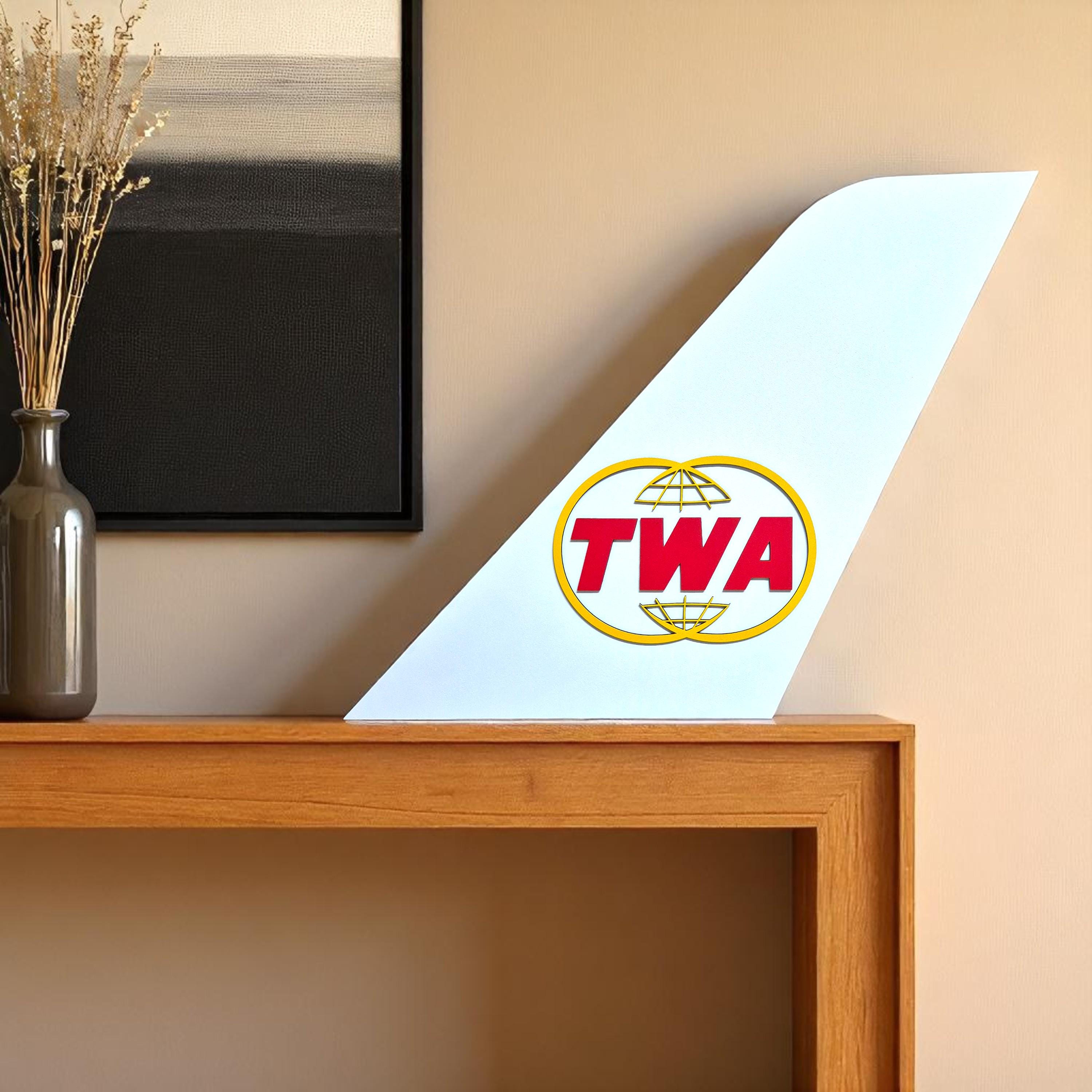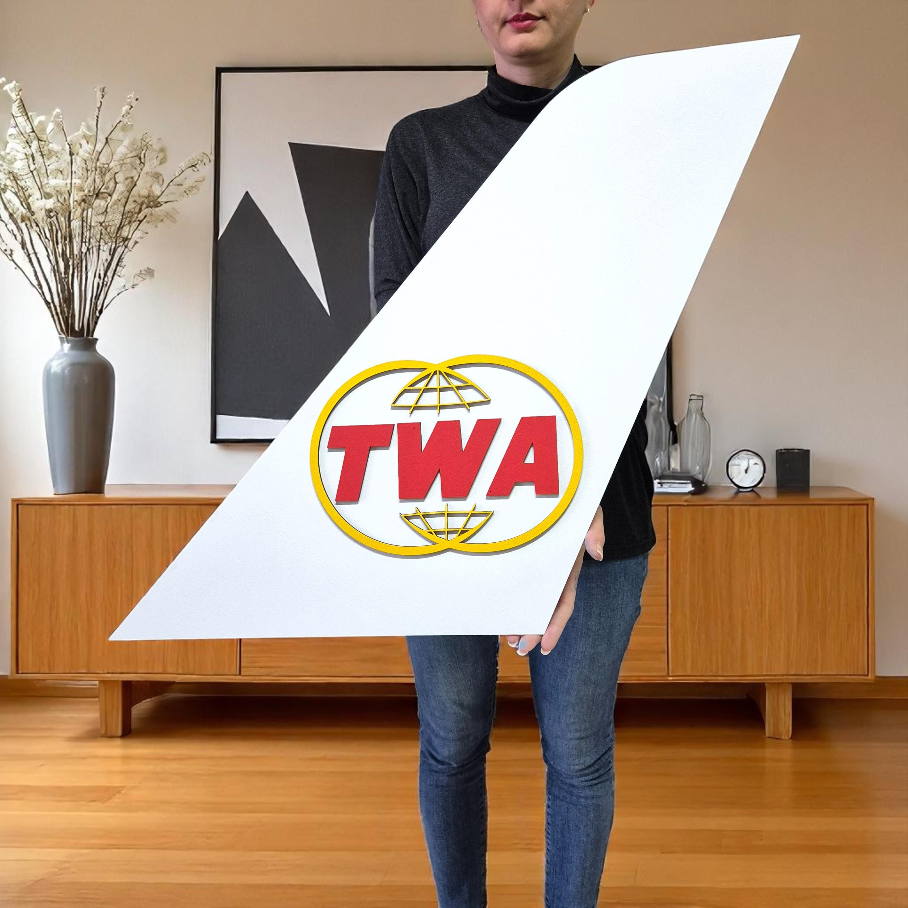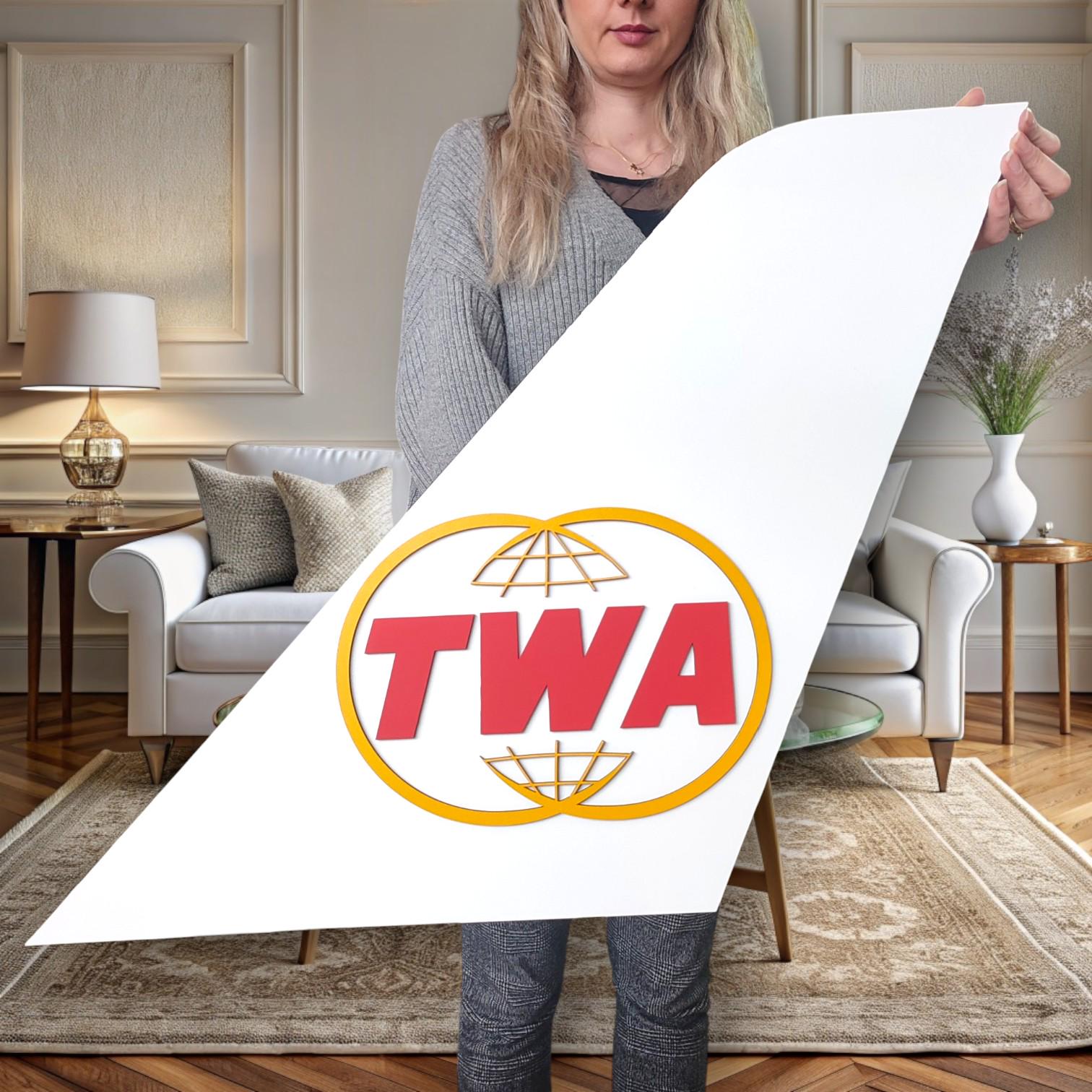 TWA tail art, vintage airline decor, retro airplane sign, pilot gift, Trans World Airlines, aviation wall art, airline memorabilia, wooden aircraft decor, aviation gift, flight history wall piece, handmade airplane sign, airline office wall art, nostalgic travel decor, custom aviation tail