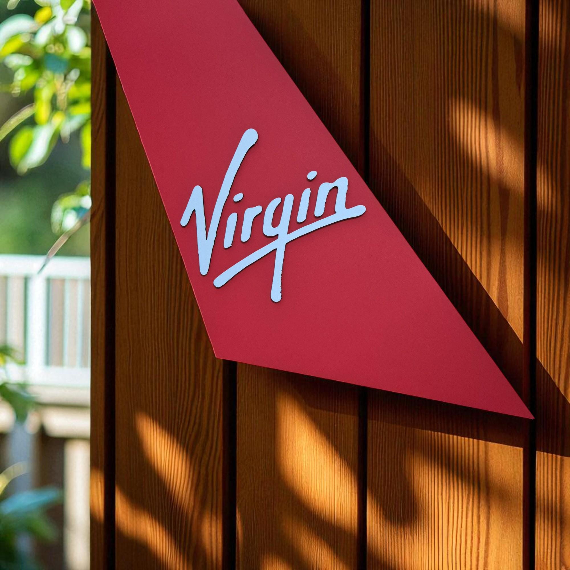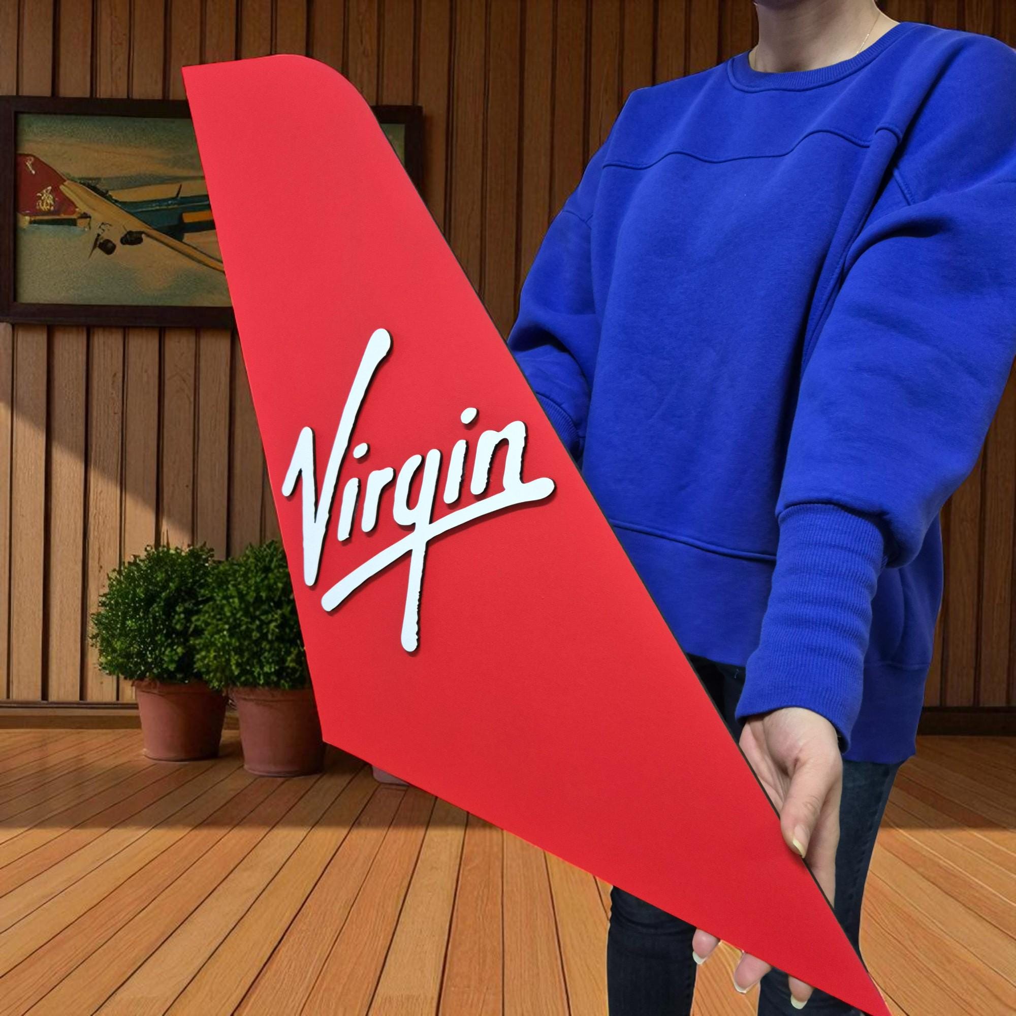 Handmade Virgin Atlantic Logo Wooden Wall Art: Aviation Decor