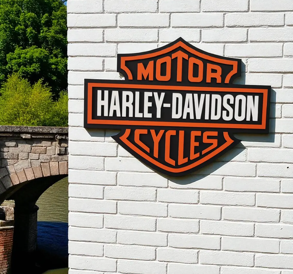 Harley Davidson Wooden Wall Art - 3D Logo Sign for Garage - Custom Biker Gift - Handcrafted Wood Office Decor - Motorcycle Wall Hanging