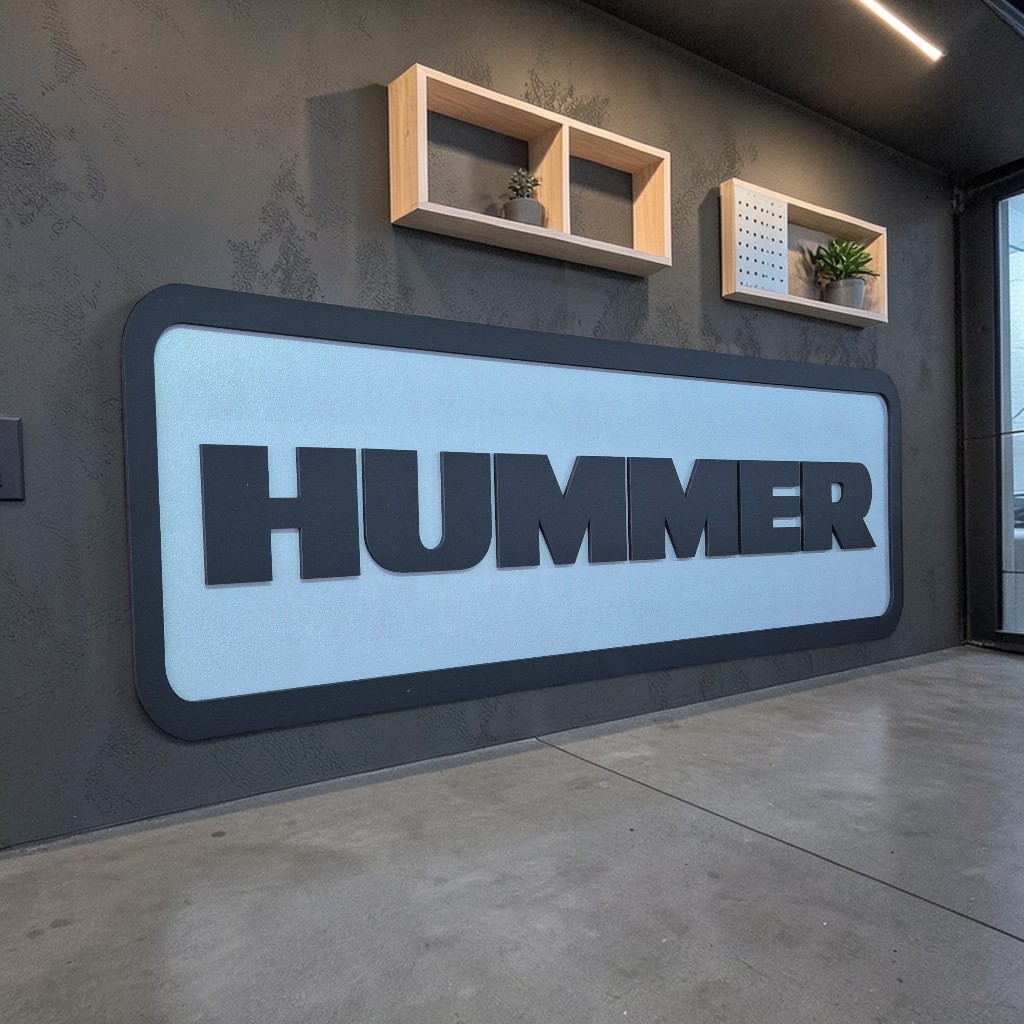 Hummer Wooden Wall Art - 3D Logo Sign for Garage - Custom Off-Road Lover Gift - Handcrafted Wood Office Decor - H1 H2 H3 Wall Hanging