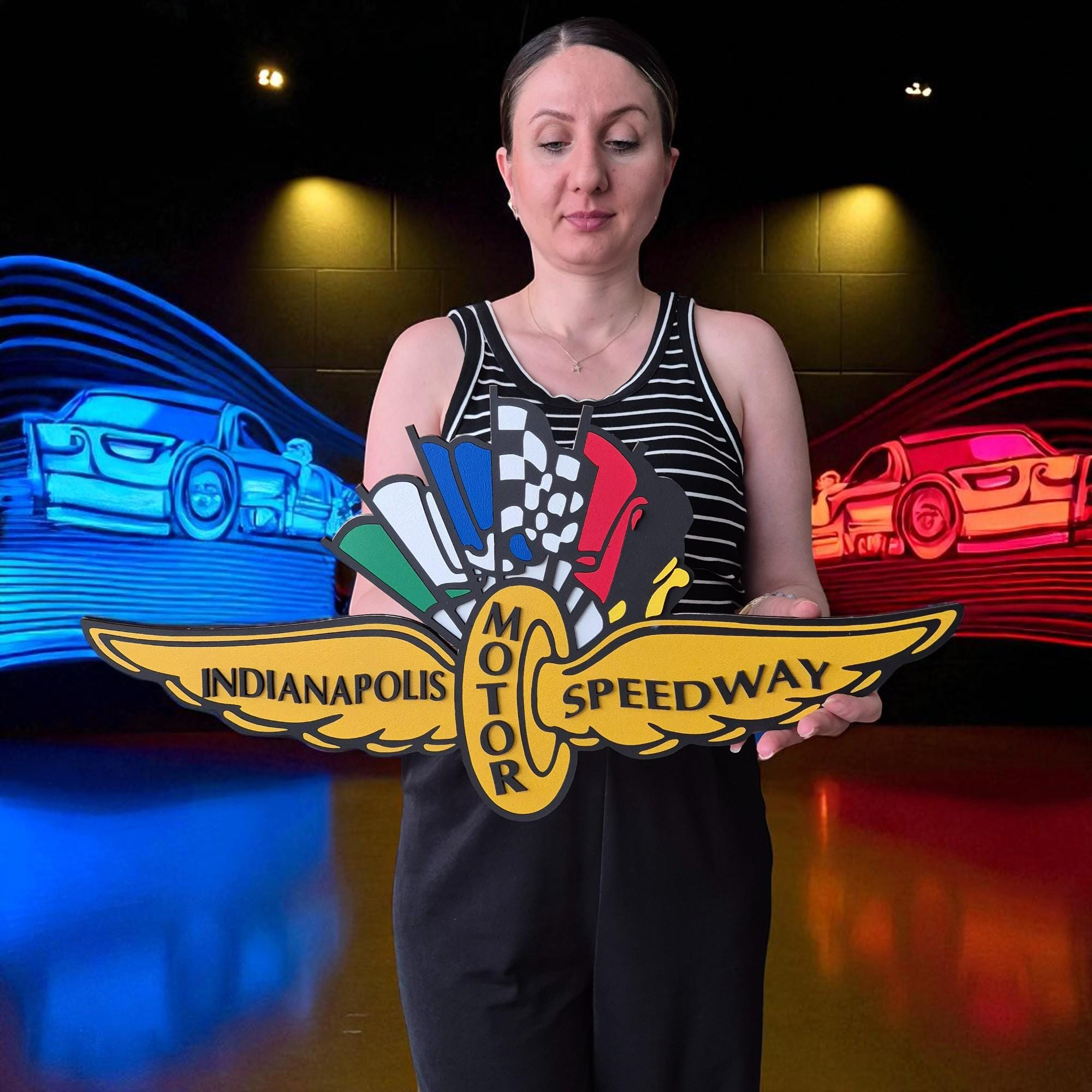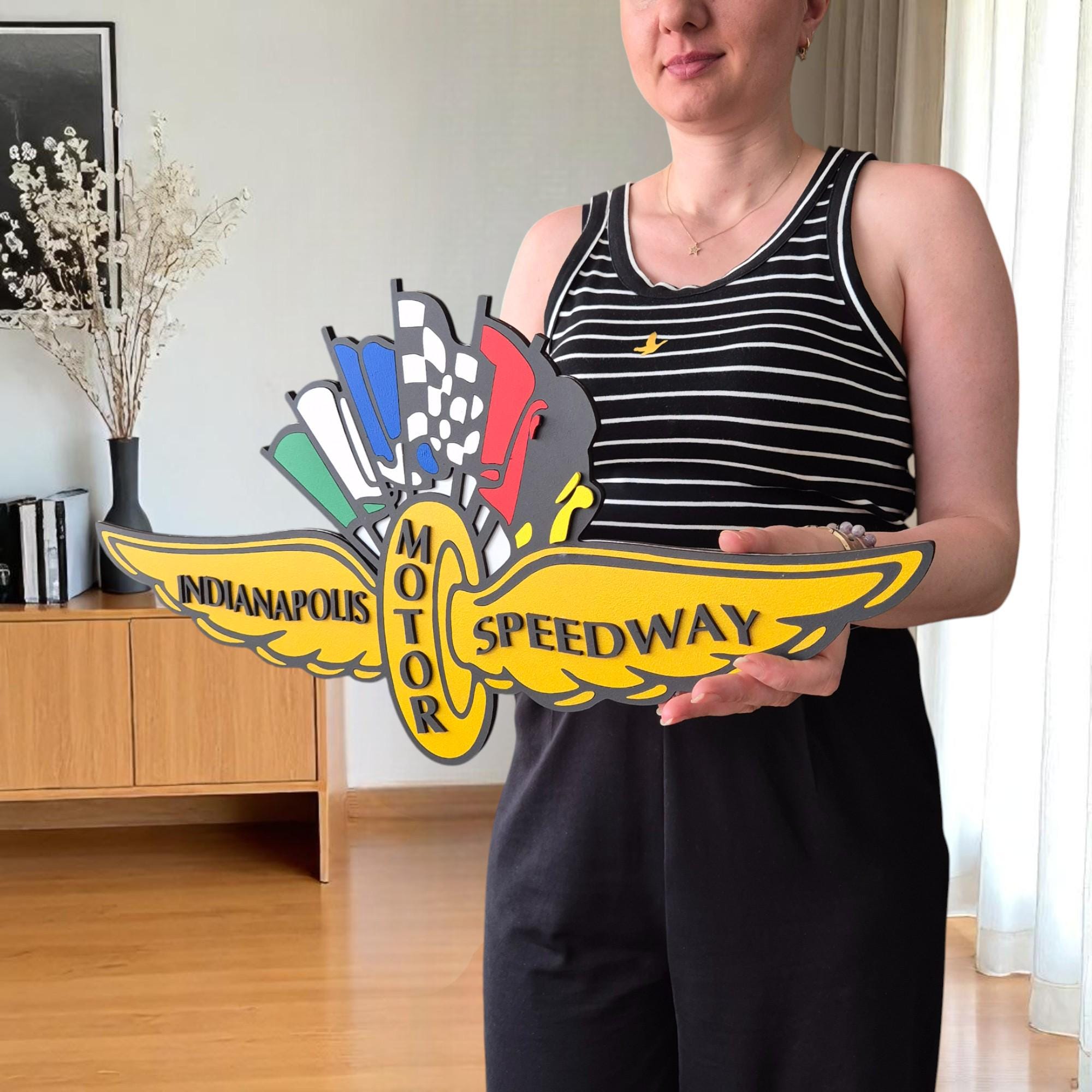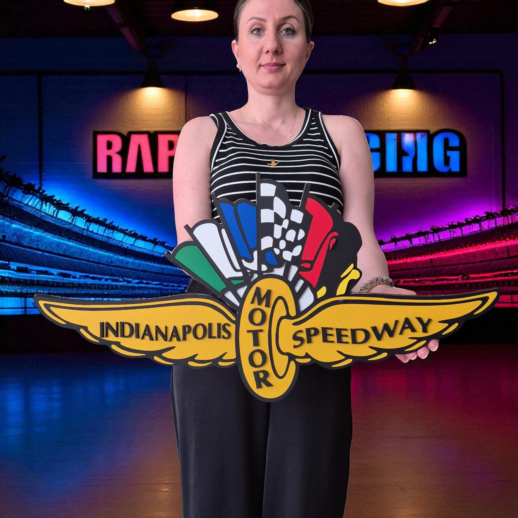 Indianapolis Motor Speedway Wooden Wall Art | Racing Track Logo Sign | Man Cave or Garage Decor | Gift for Motorsport Fans