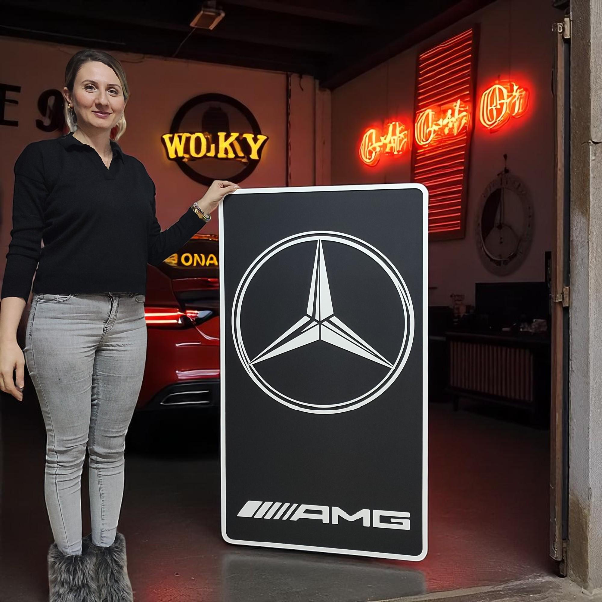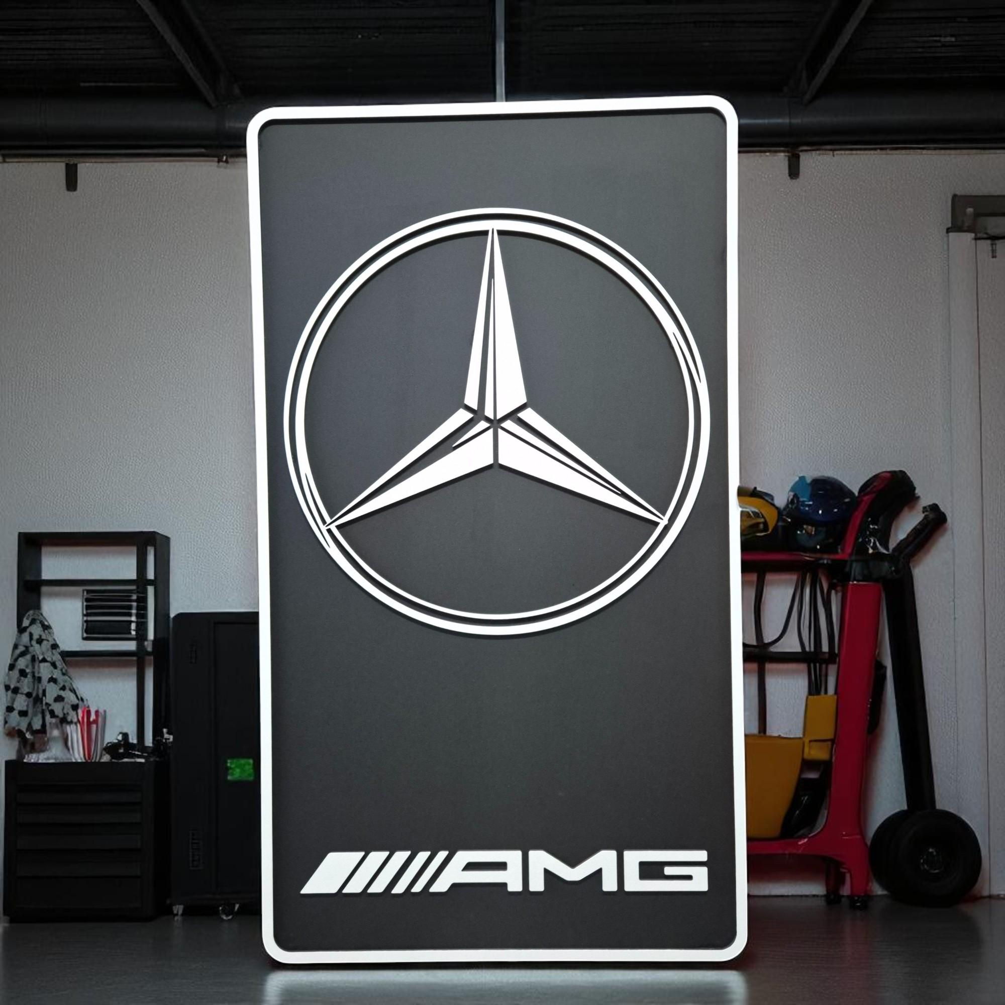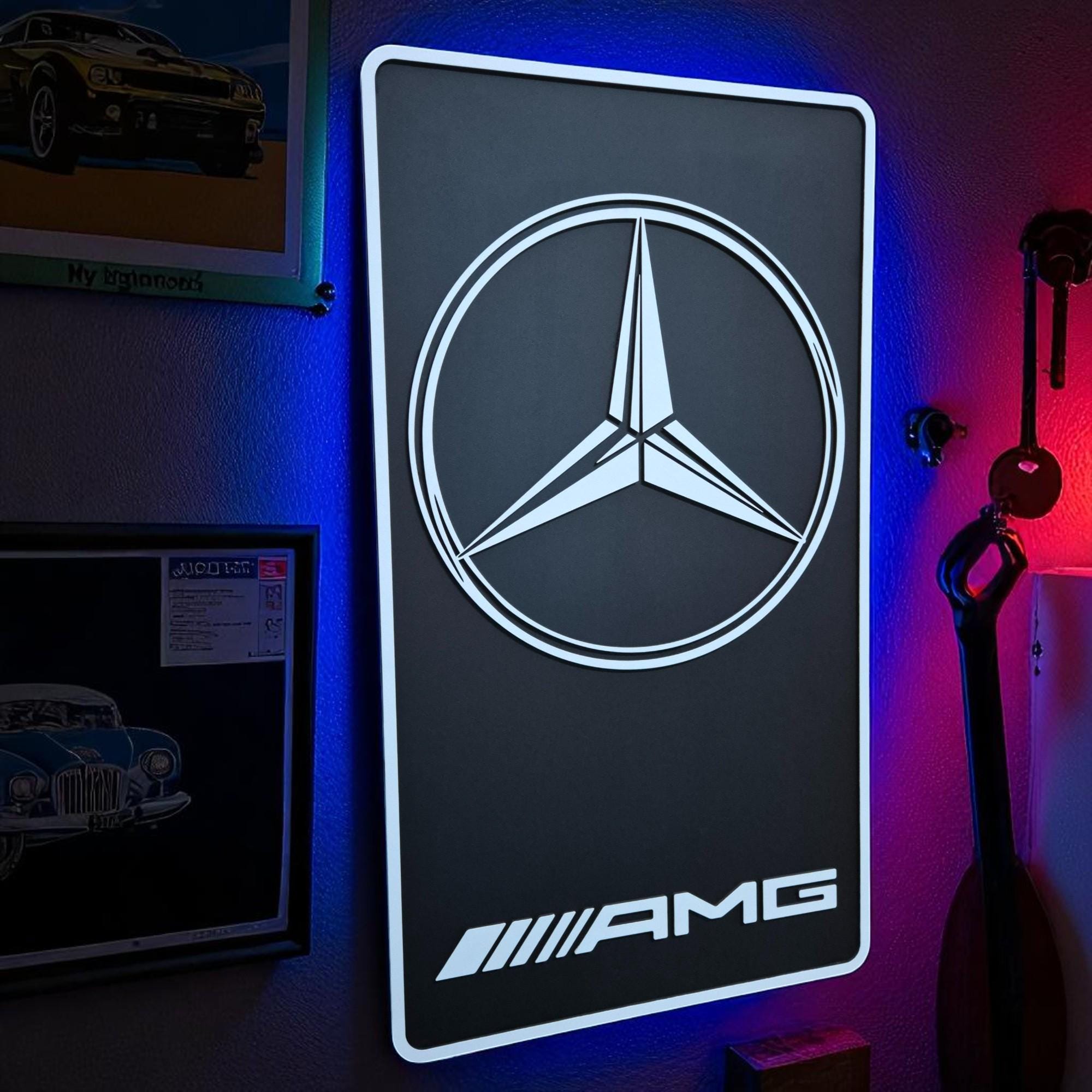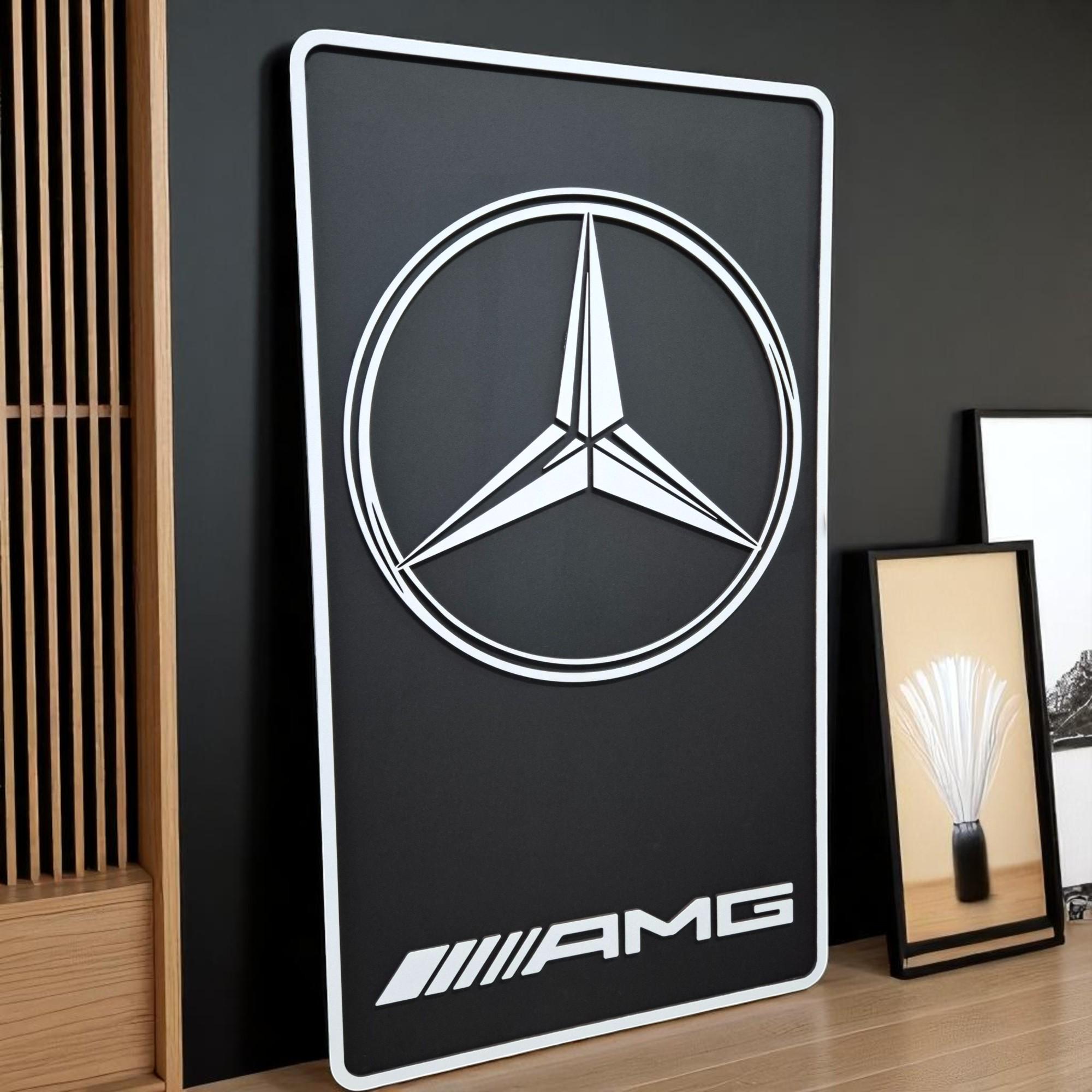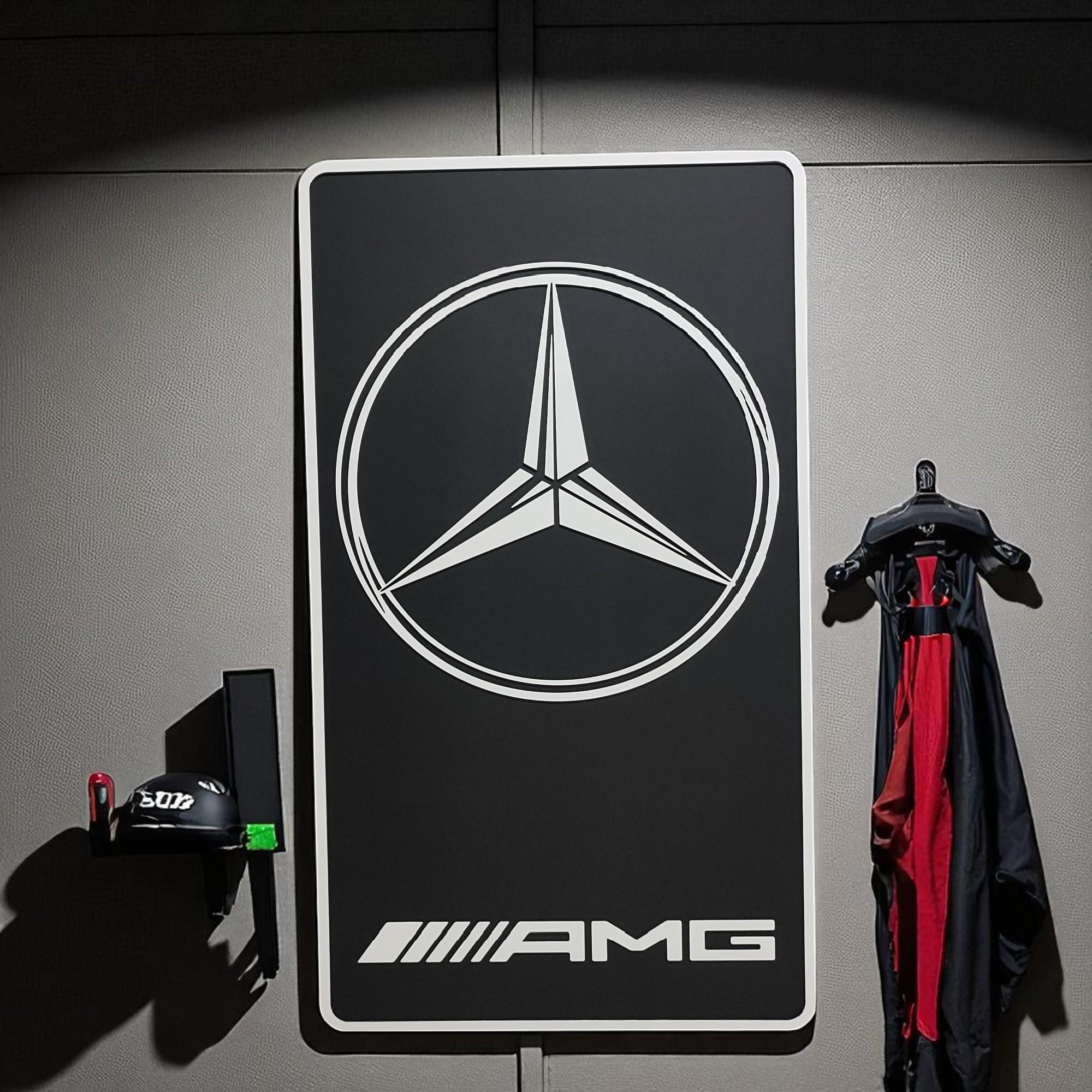Mercedes AMG Wood Wall Art: Handmade Car Logo, Garage Decor