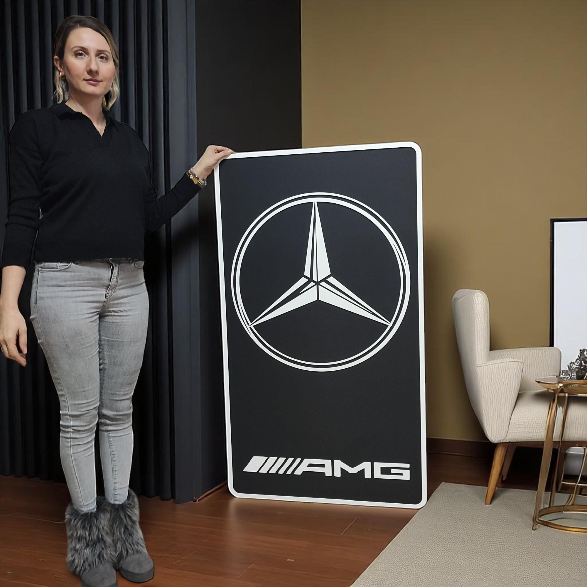 Celebrate precision, power, and performance with this handcrafted Mercedes AMG wooden wall art sign. Showcasing the iconic AMG logo, this piece brings the spirit of German engineering into your garage, man cave, showroom, or home office with bold style and craftsmanship.