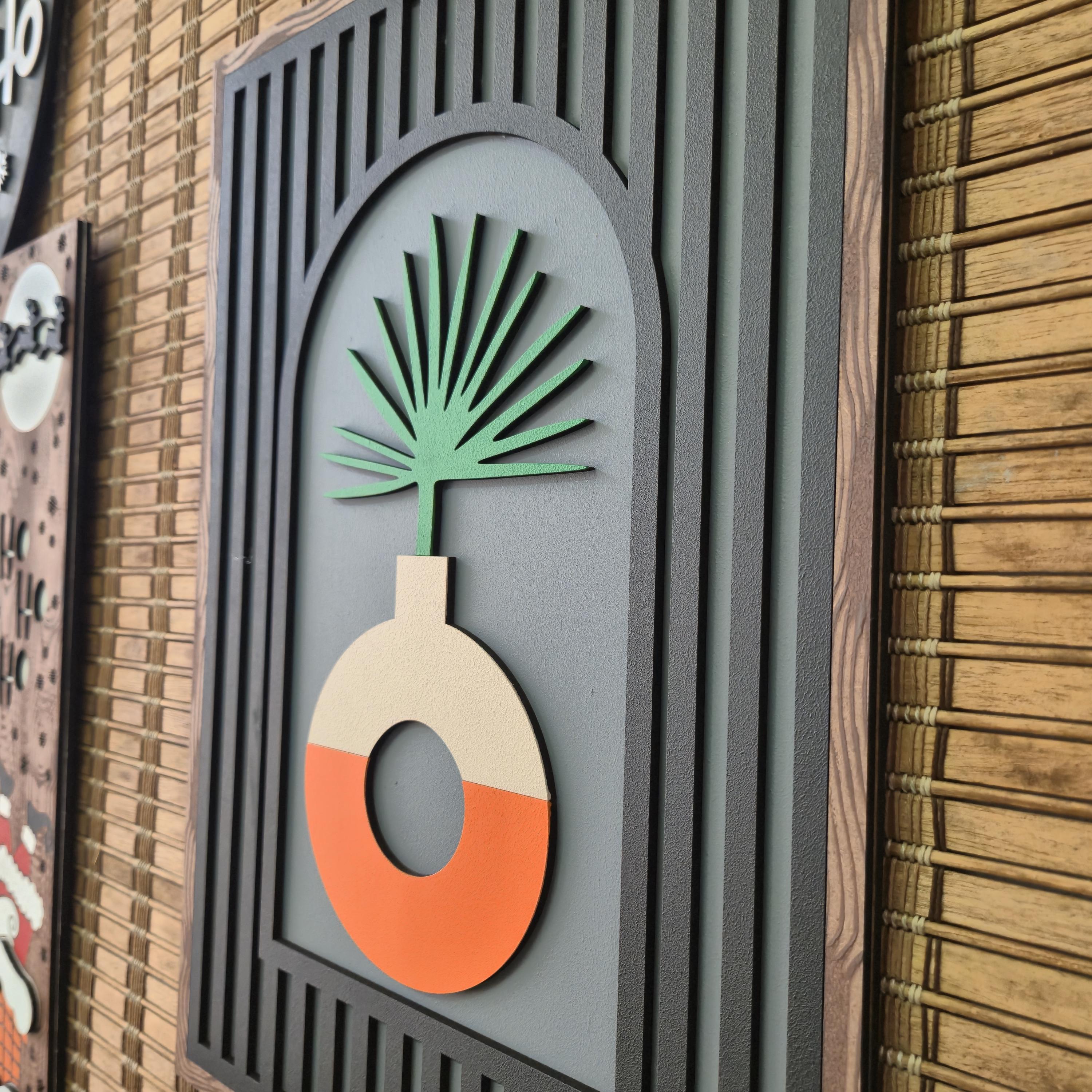 Modern Vase and Leaf Wall Art | DIY Wooden Decorative Panel | Minimalist Home Decor | Stylish Nature-Inspired Wall Hanging