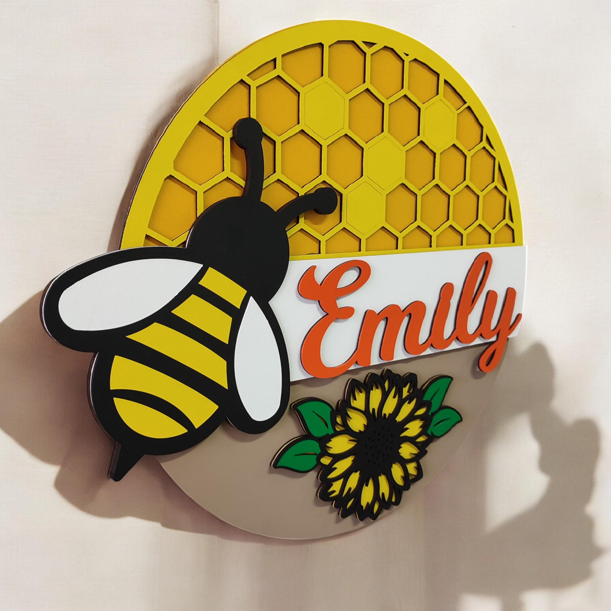 Personalized Bee Themed Kids Room Door or Wall Sign | Custom Nameplate | Personalized Honeycomb Door Sign | Nursery Wall Decor | Gift for Kids 📝 Please write the name you want in the personalization...