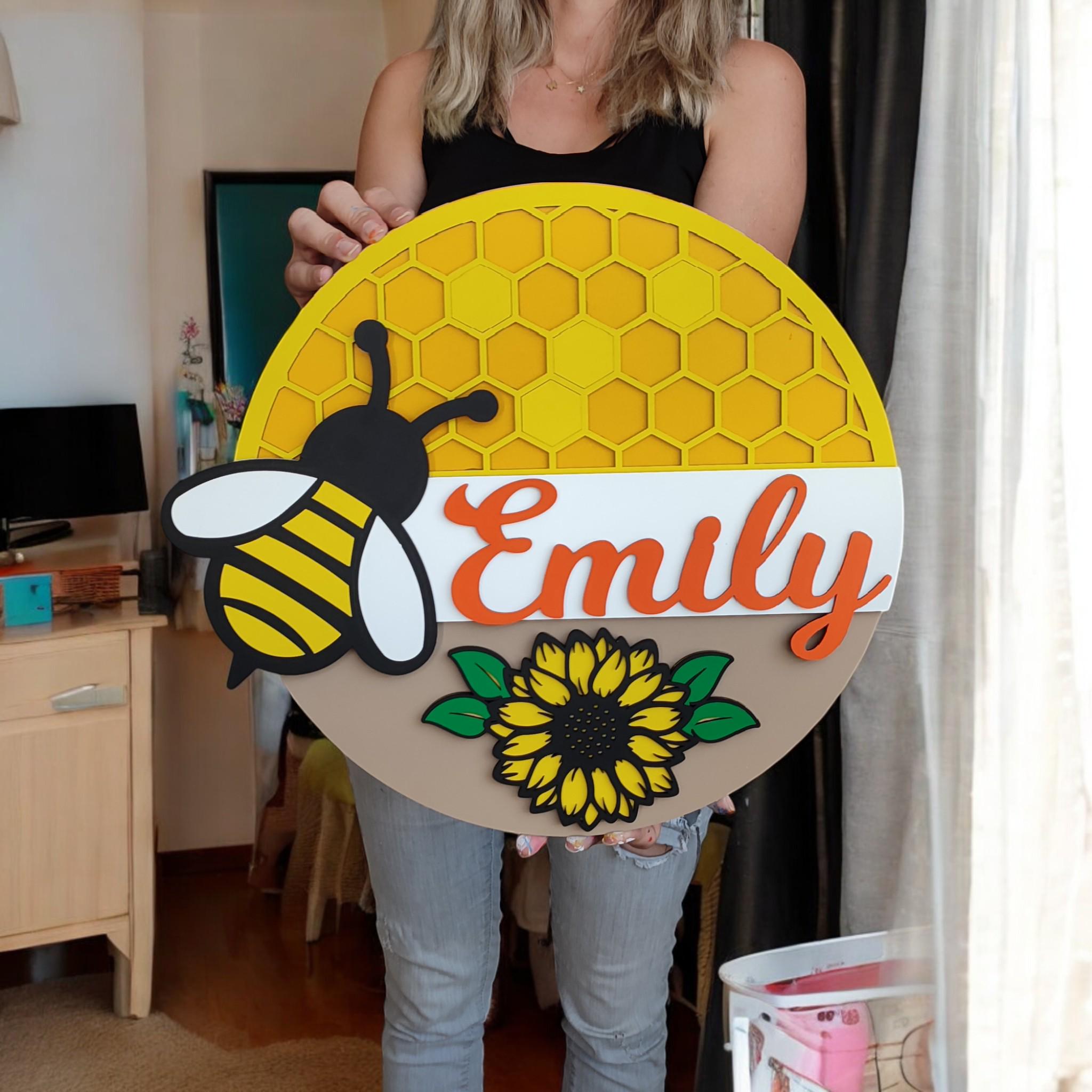 Make your child's room as sweet as honey with this adorable bee-themed name sign — a personalized keepsake full of joy and charm!