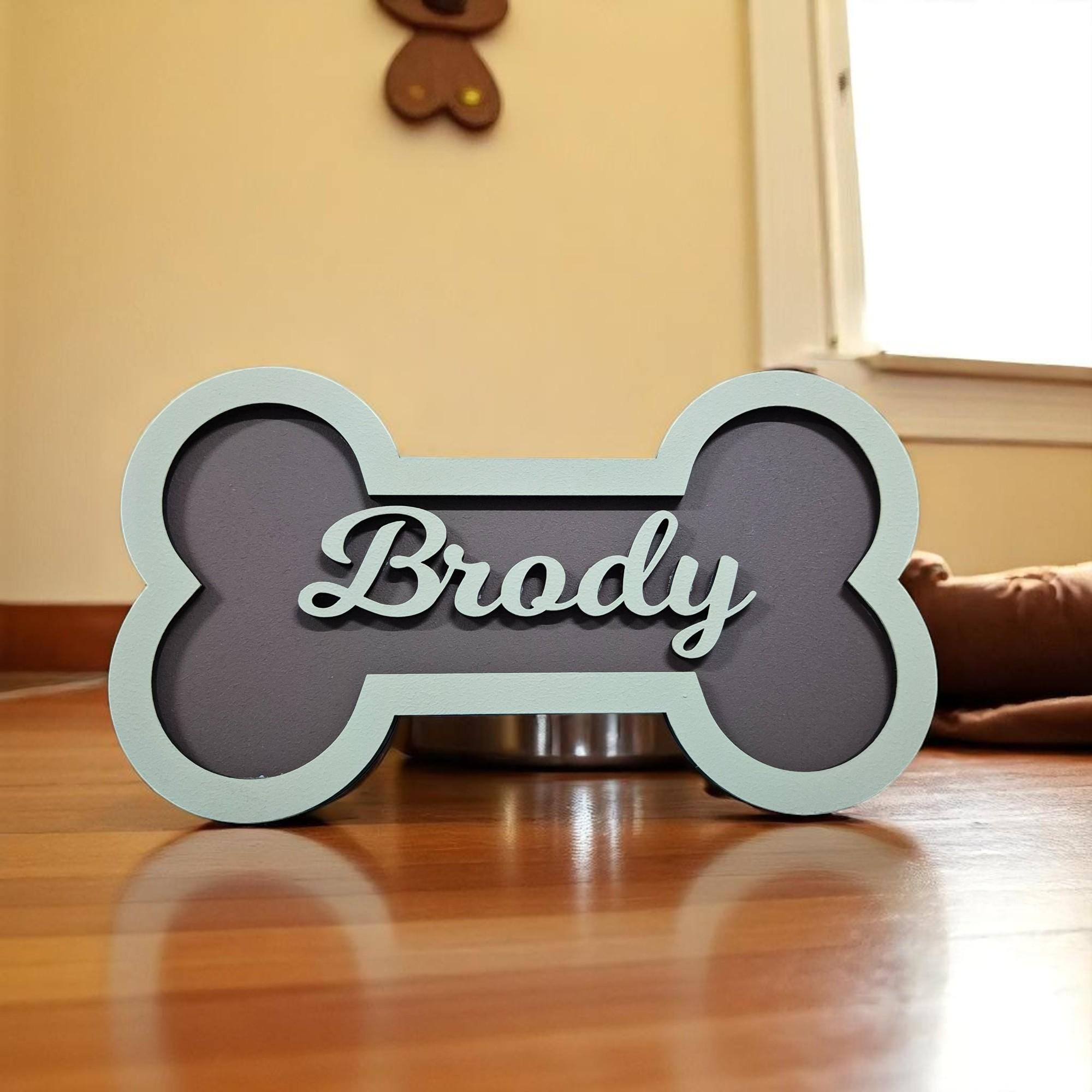 Personalized Dog Bone Name Sign: Hand-Painted Pet Wall Decor