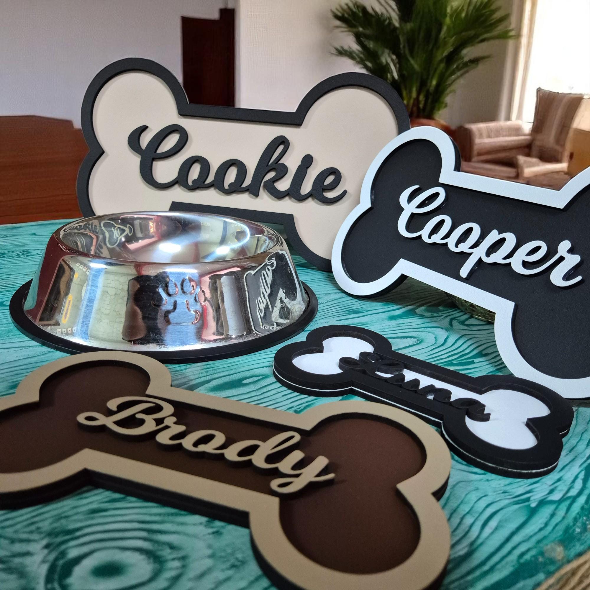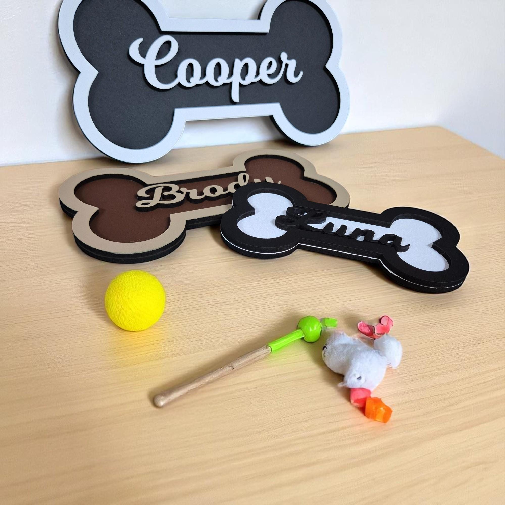 Custom Dog Name Plaque – Shaped like a classic dog bone and personalized with your dog’s name for a heartfelt, playful touch.