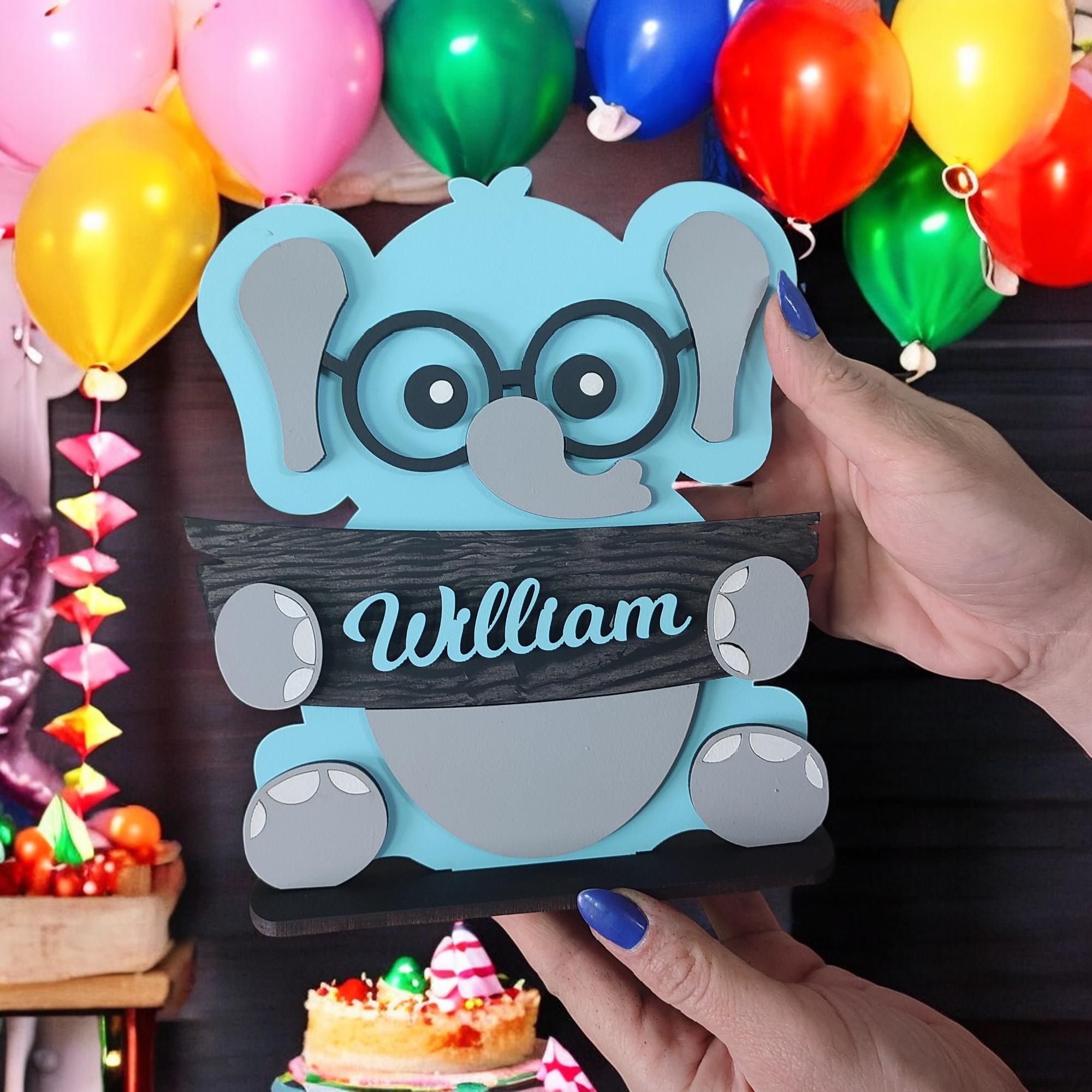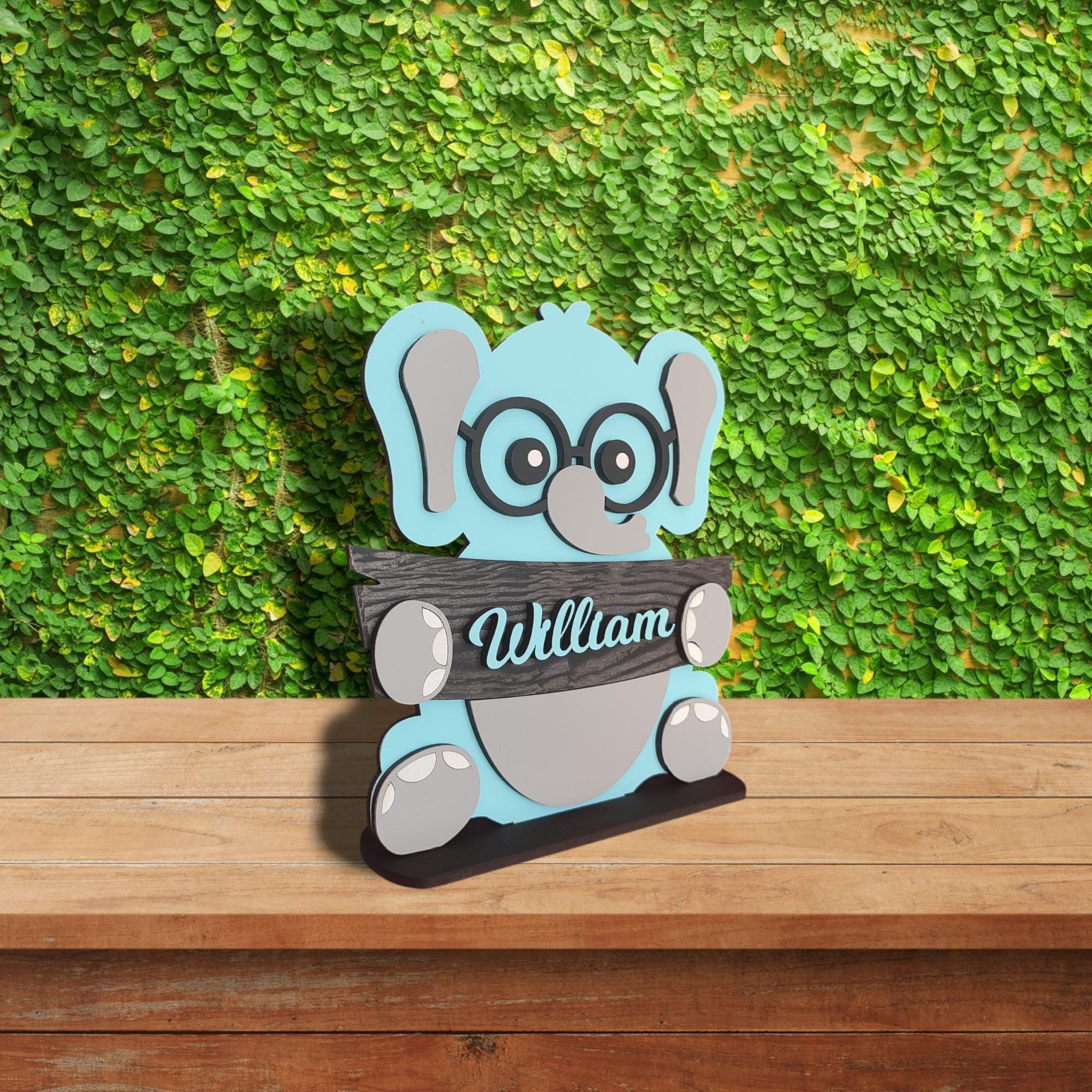 ersonalized Elephant Desk Stand for Kids Room | Custom Name Tabletop Decor | Hand-Painted MDF Nursery Animal Art | Baby Room Gift 📝 Please write the name you want in the personalization box. If no n...