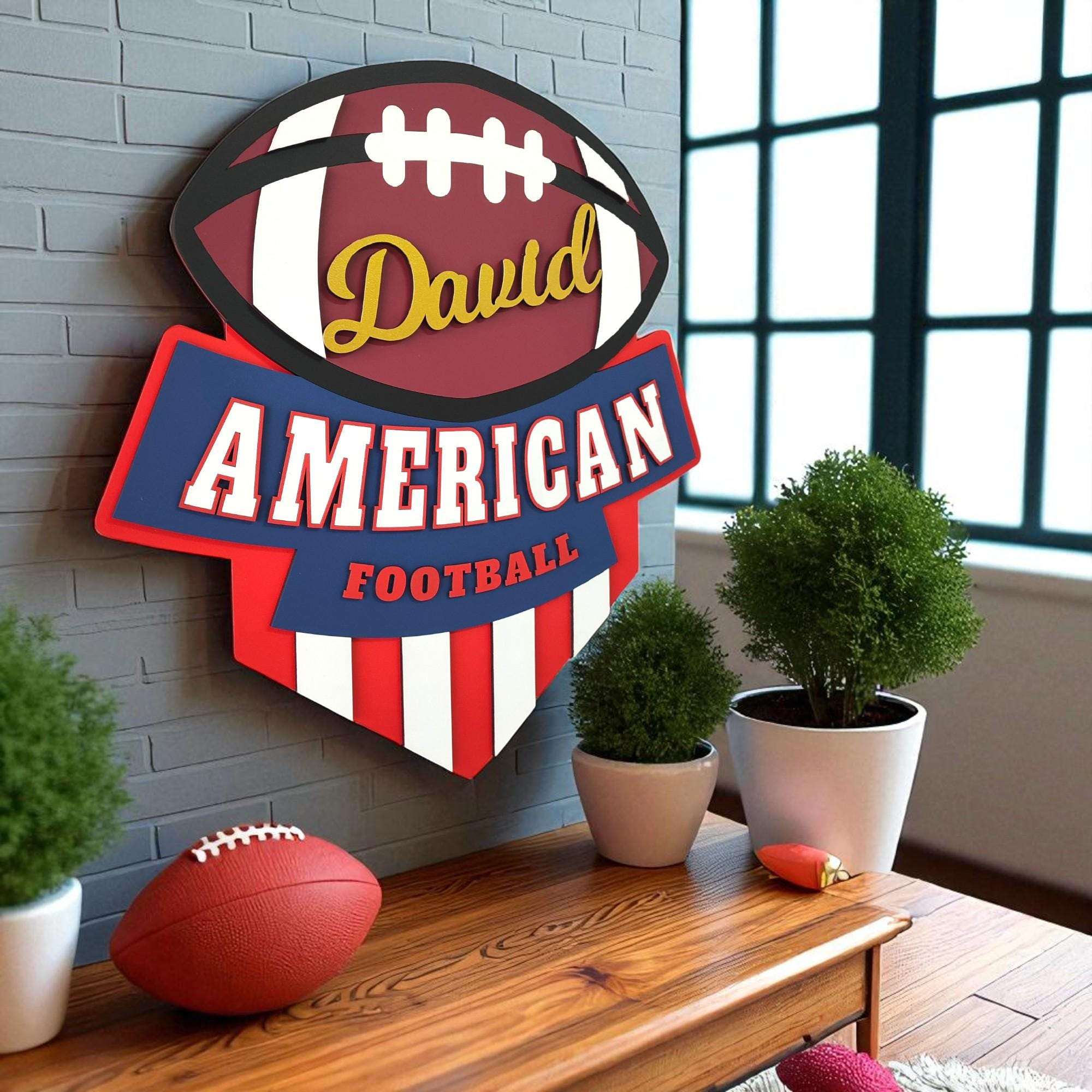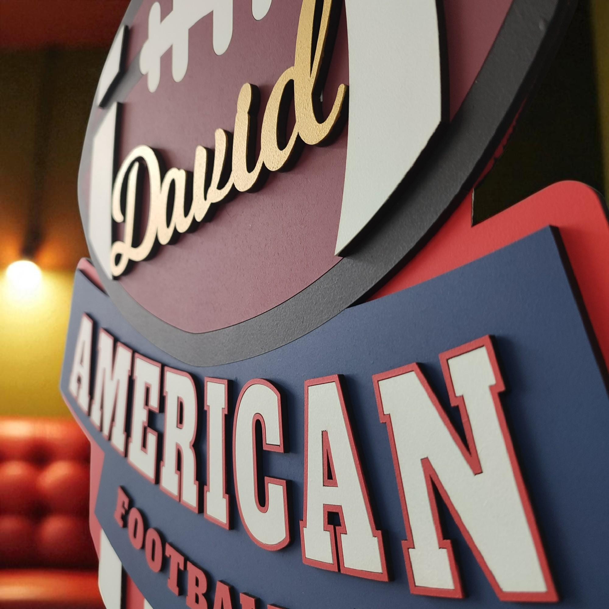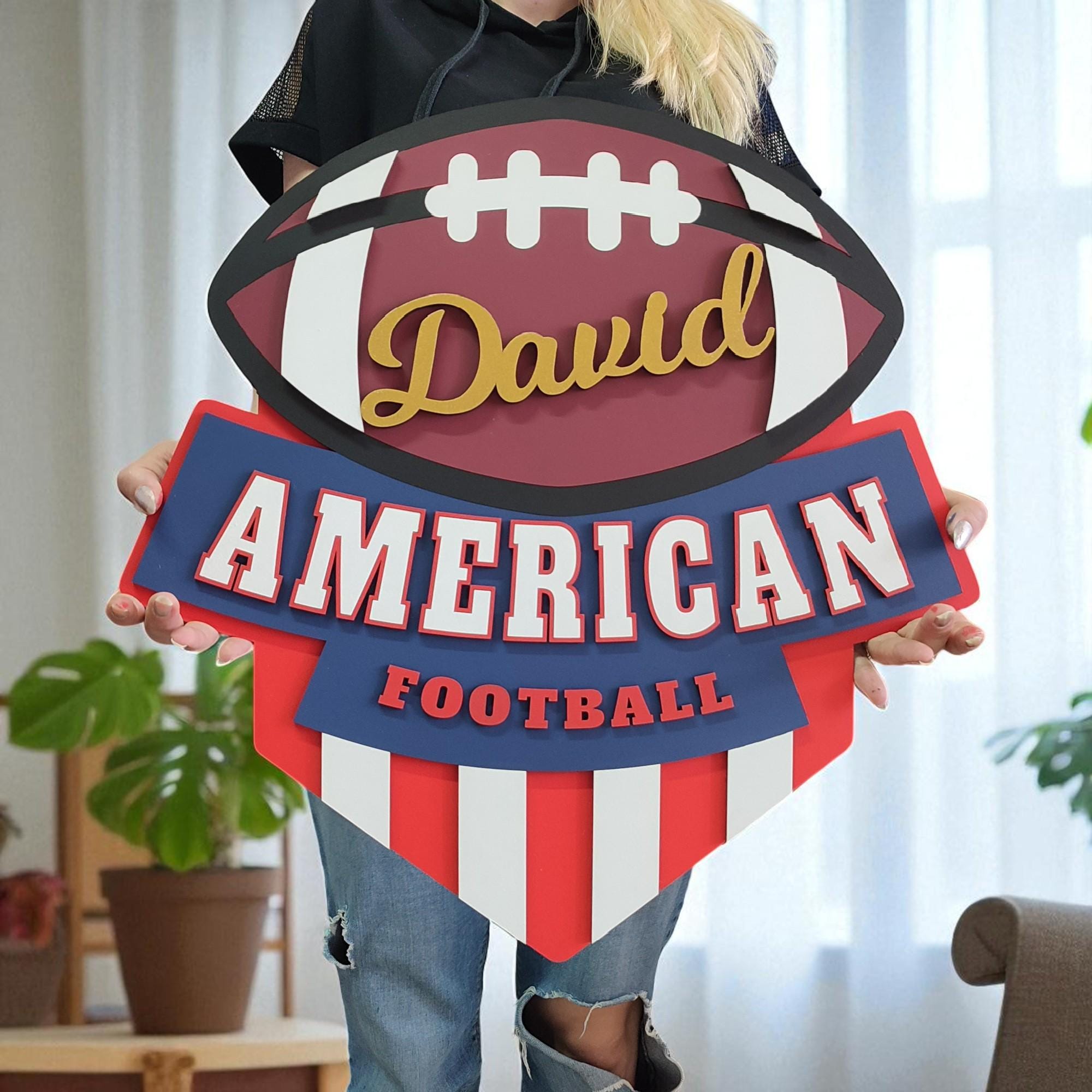 Personalized Football Wall Art, Personalized NFL Style Sign, American Football Logo Decor, Man Cave Sports Sign, MDF Football Artwork, Teen Room Wall Decor, Coach Gift, Custom Team Logo Sign, Football Name Wall Art, Handmade Sports Decor, Personalized Sports Room Gift, Player Number Sign, Locker Room Wall Art
