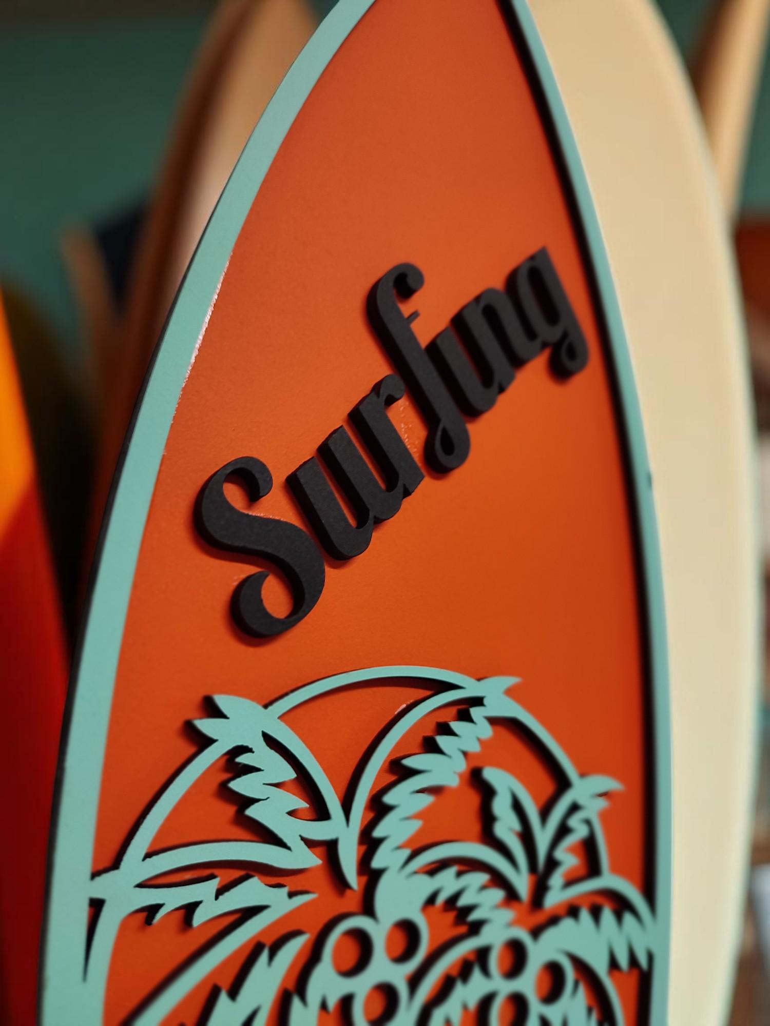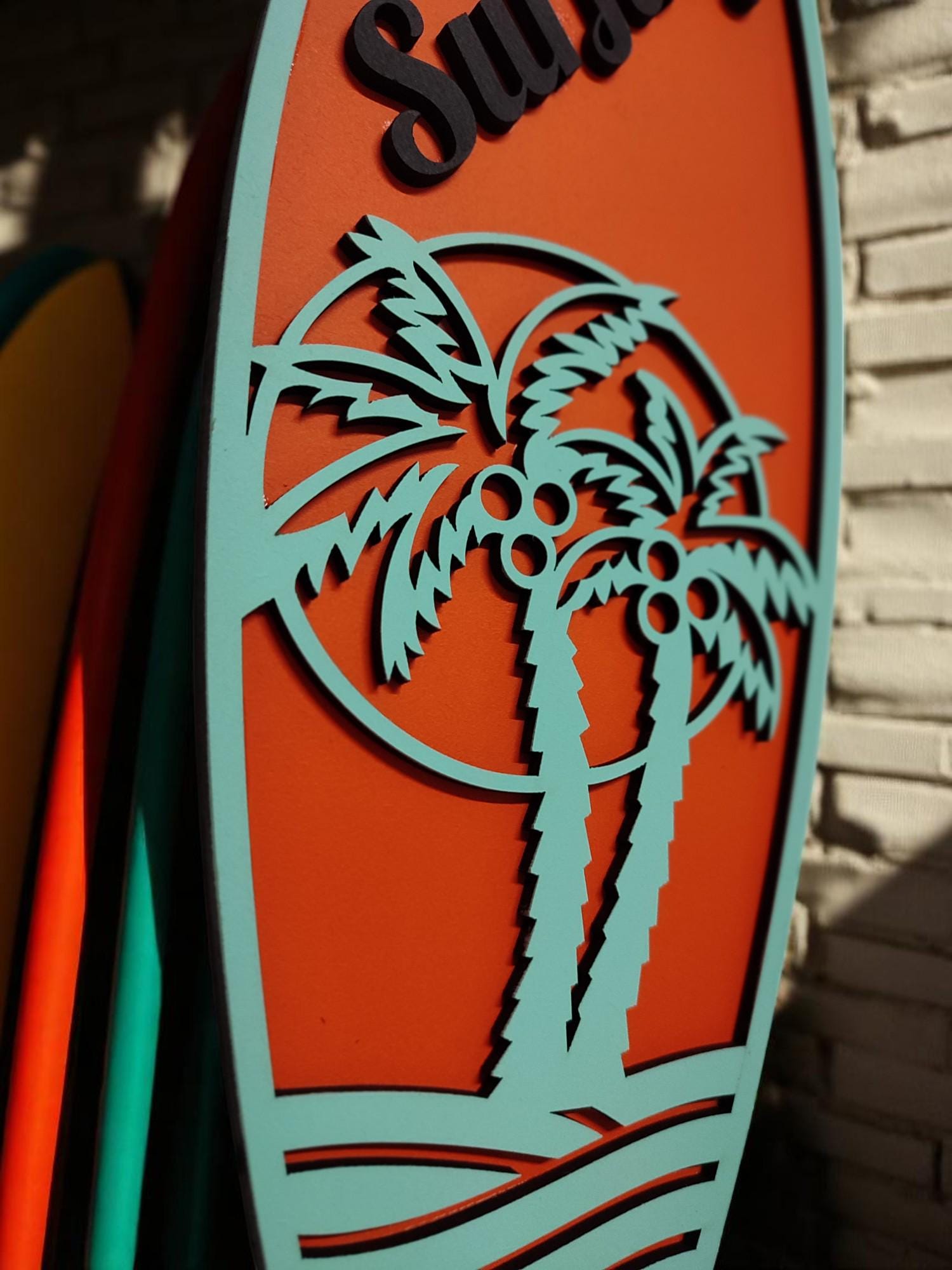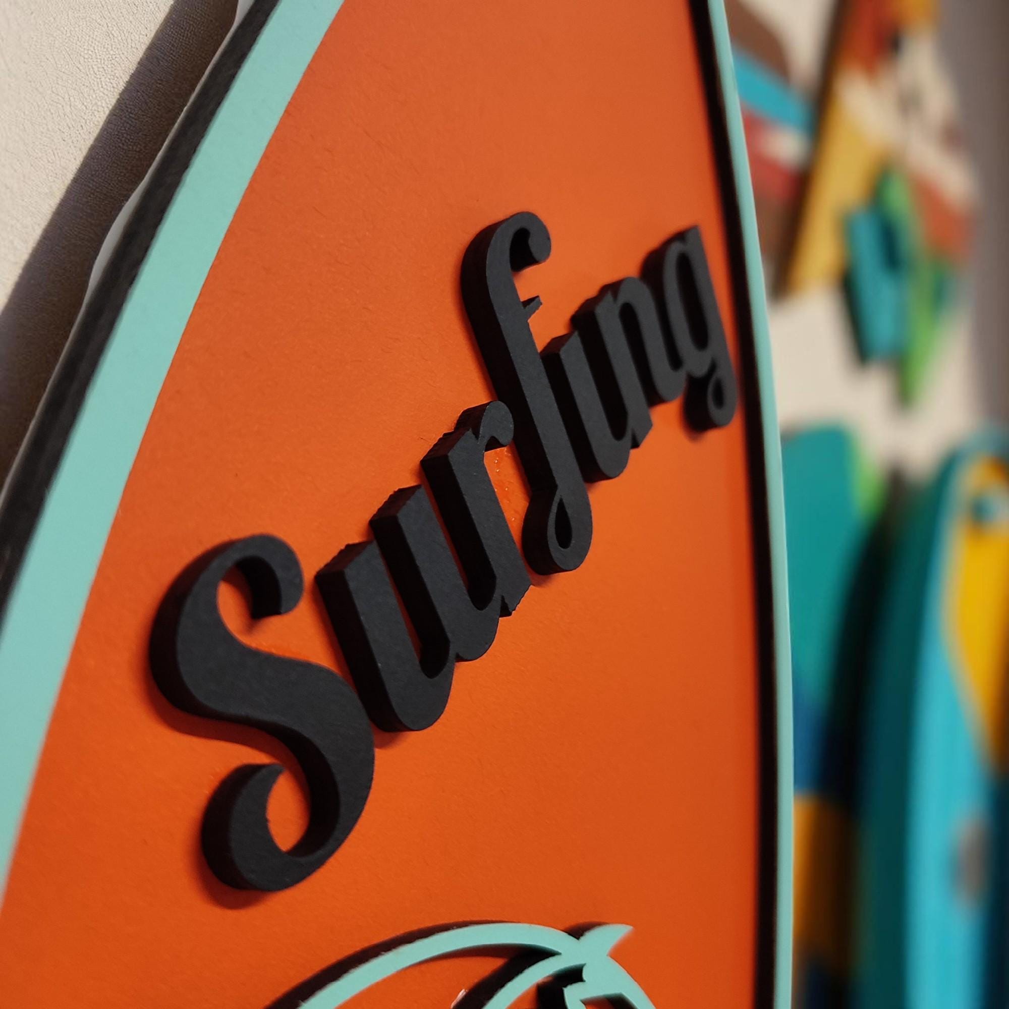 Made from durable MDF wood and carefully hand-painted with eco-friendly acrylics, each surfboard features multi-dimensional layers that create depth and texture. Whether you want to celebrate a family name, a beach house address, or a favorite surf spot, this custom wall hanging makes a standout statement.