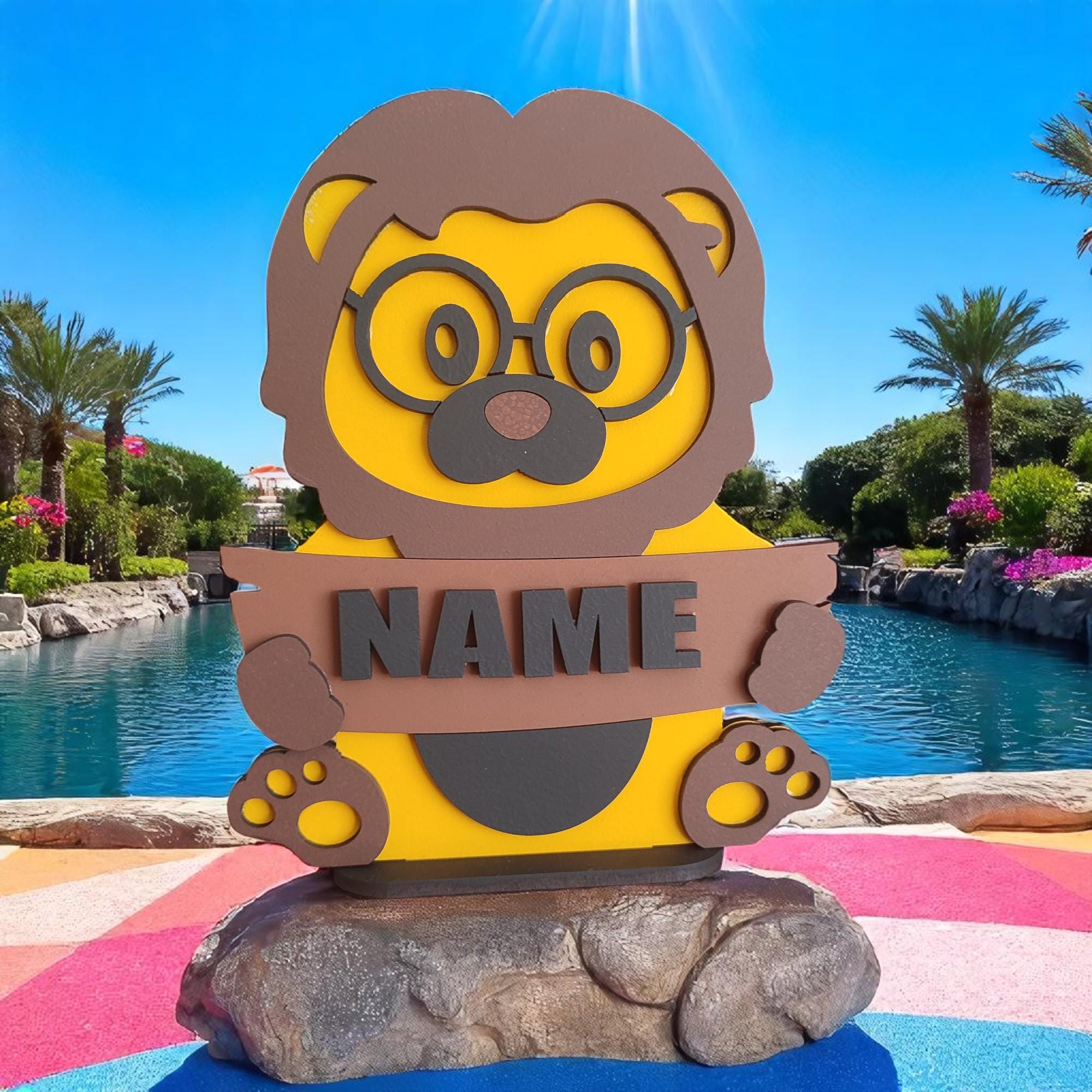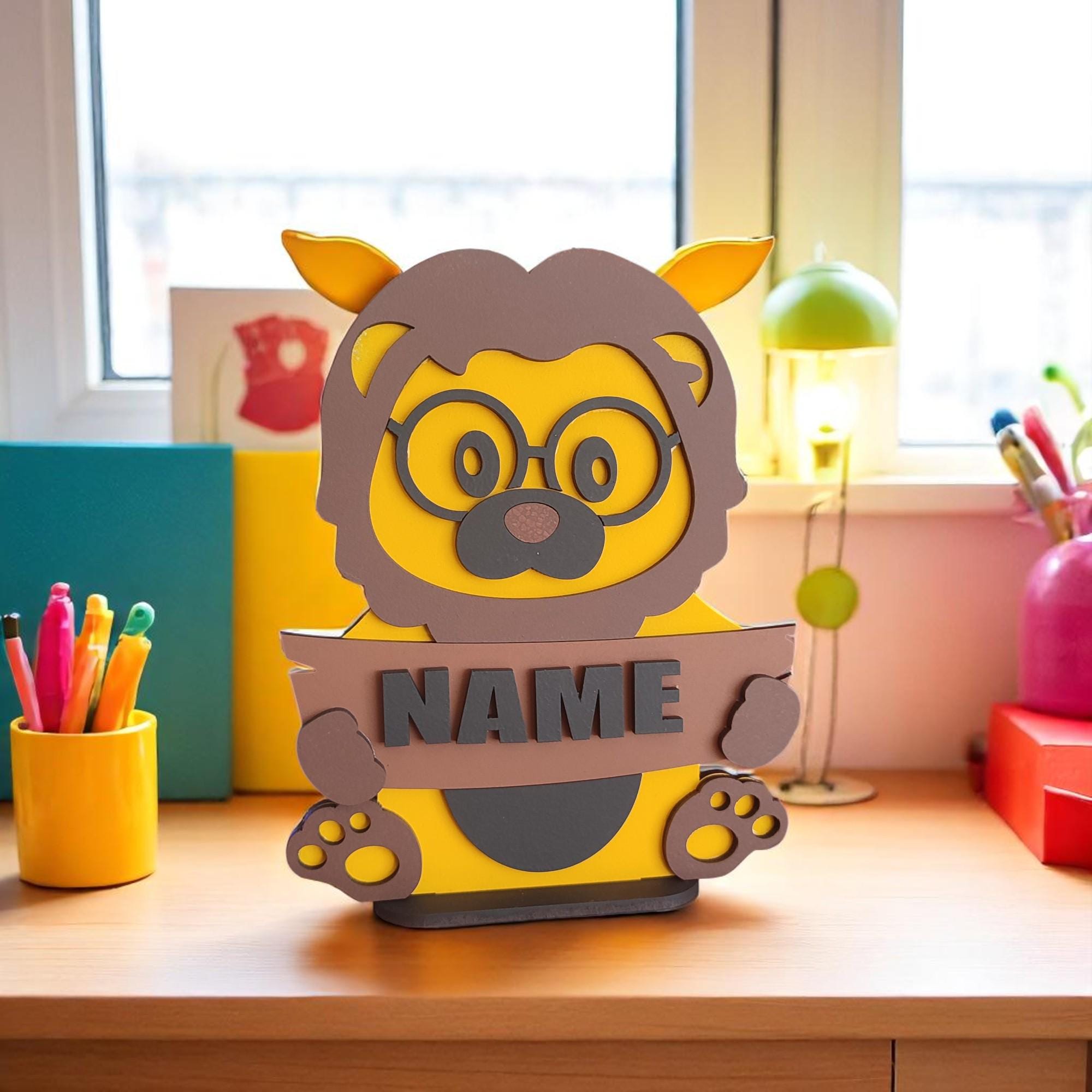 Personalized Lion Desk Stand for Kids Room | Custom Name Tabletop Decor | Hand-Painted MDF Nursery Animal Art | Baby Room Gift