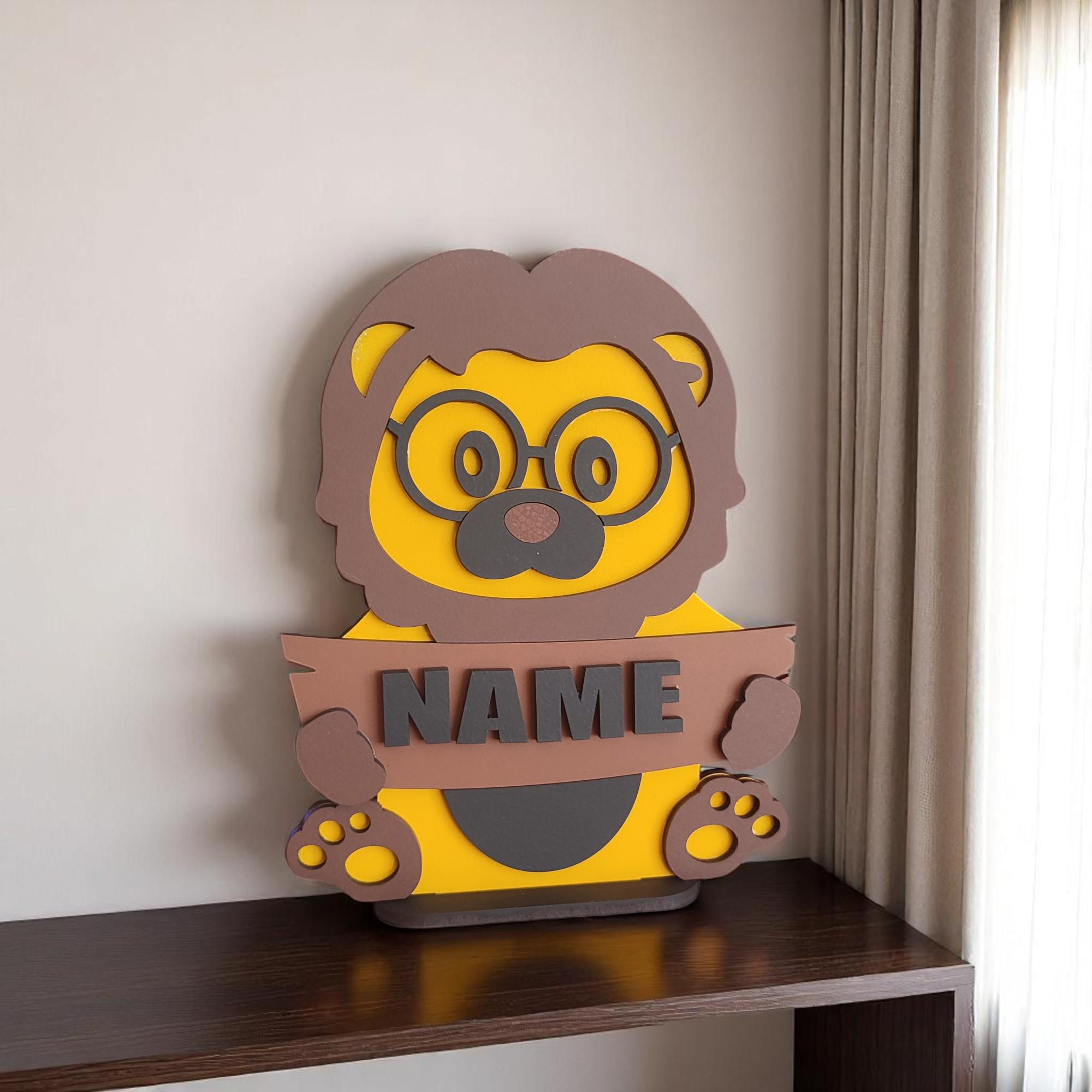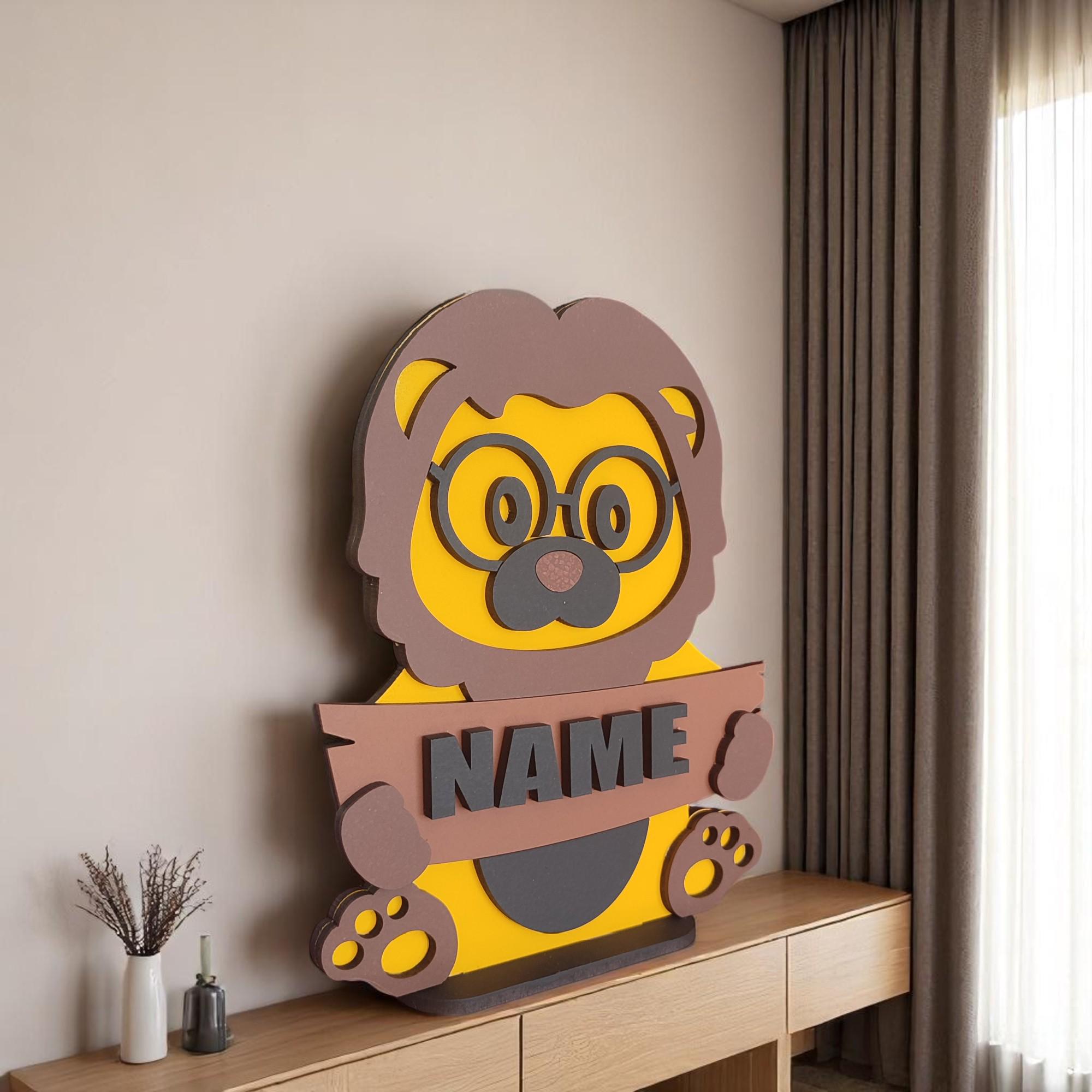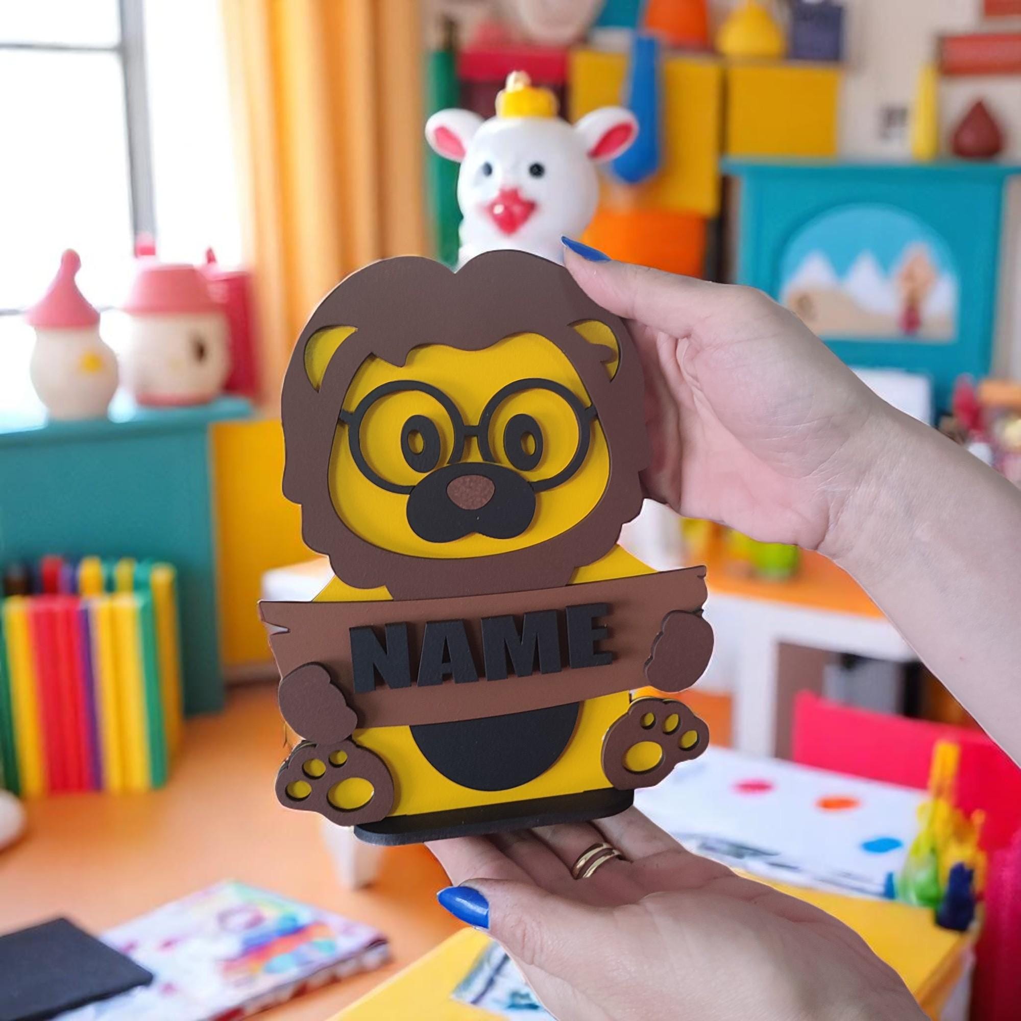 Personalized Lion Desk Stand for Kids Room | Custom Name Tabletop Decor | Hand-Painted MDF Nursery Animal Art | Baby Room Gift š Please write the name you want in the personalization box. If no name...