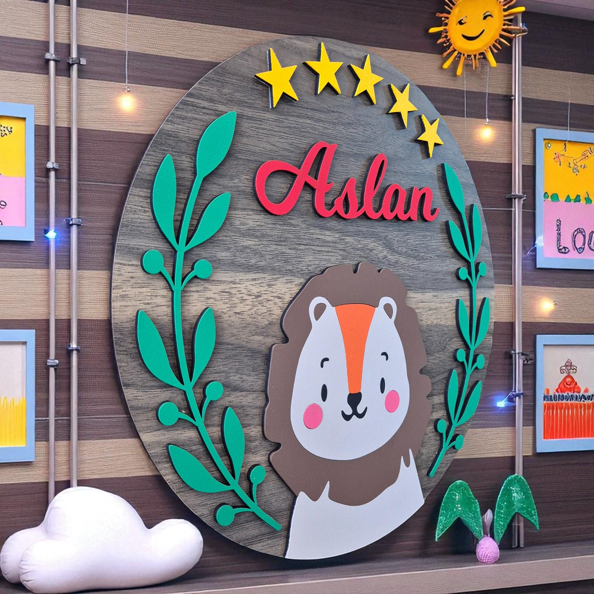 Add a bold, playful touch to your child’s room with our Personalized Lion Wall Decor — a custom name sign perfect for jungle-themed nurseries, safari-style baby rooms, or as a thoughtful gift for little explorers. This friendly lion design brings warmth, color, and a personalized charm to any wall or door.