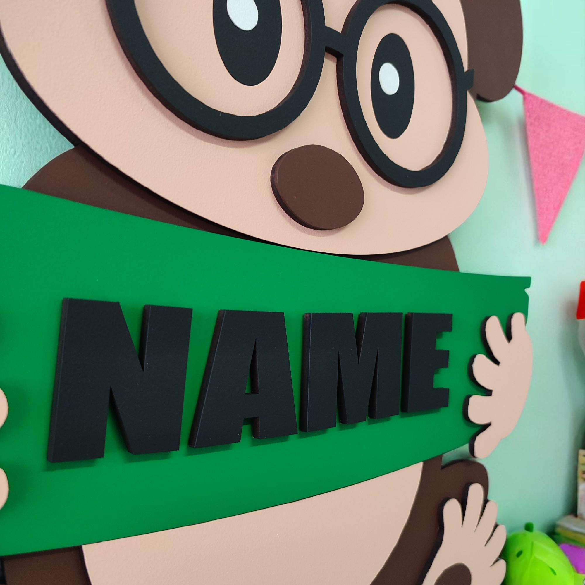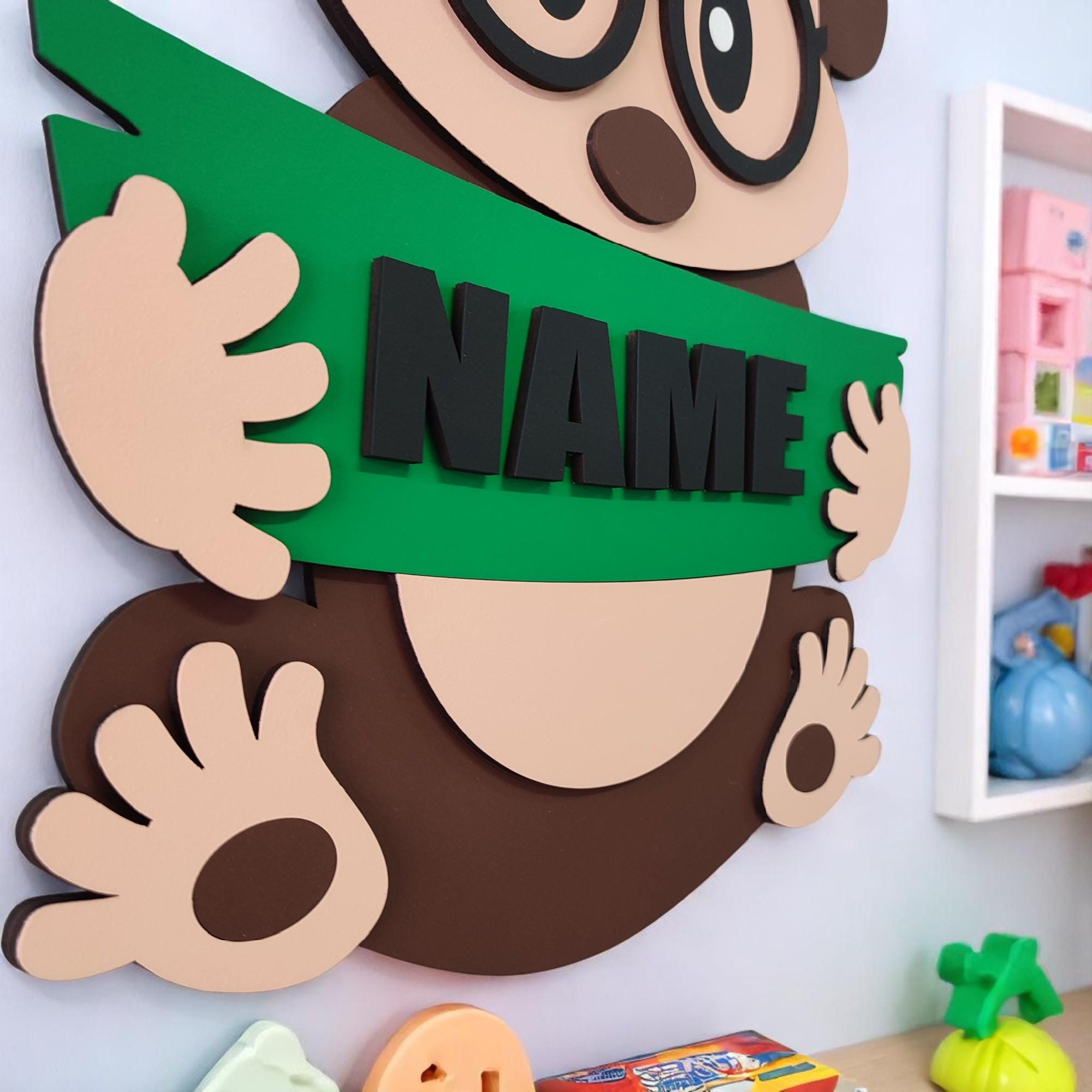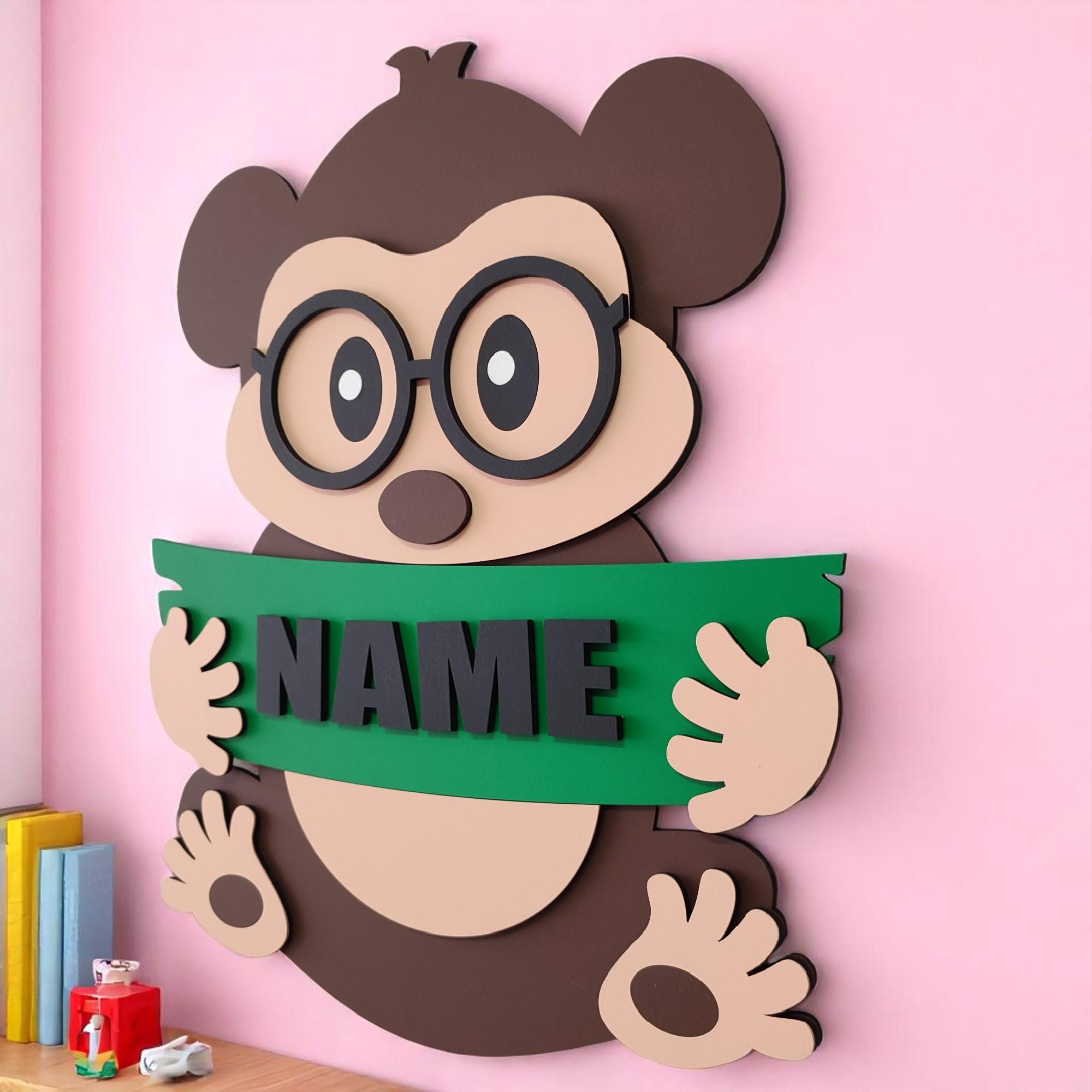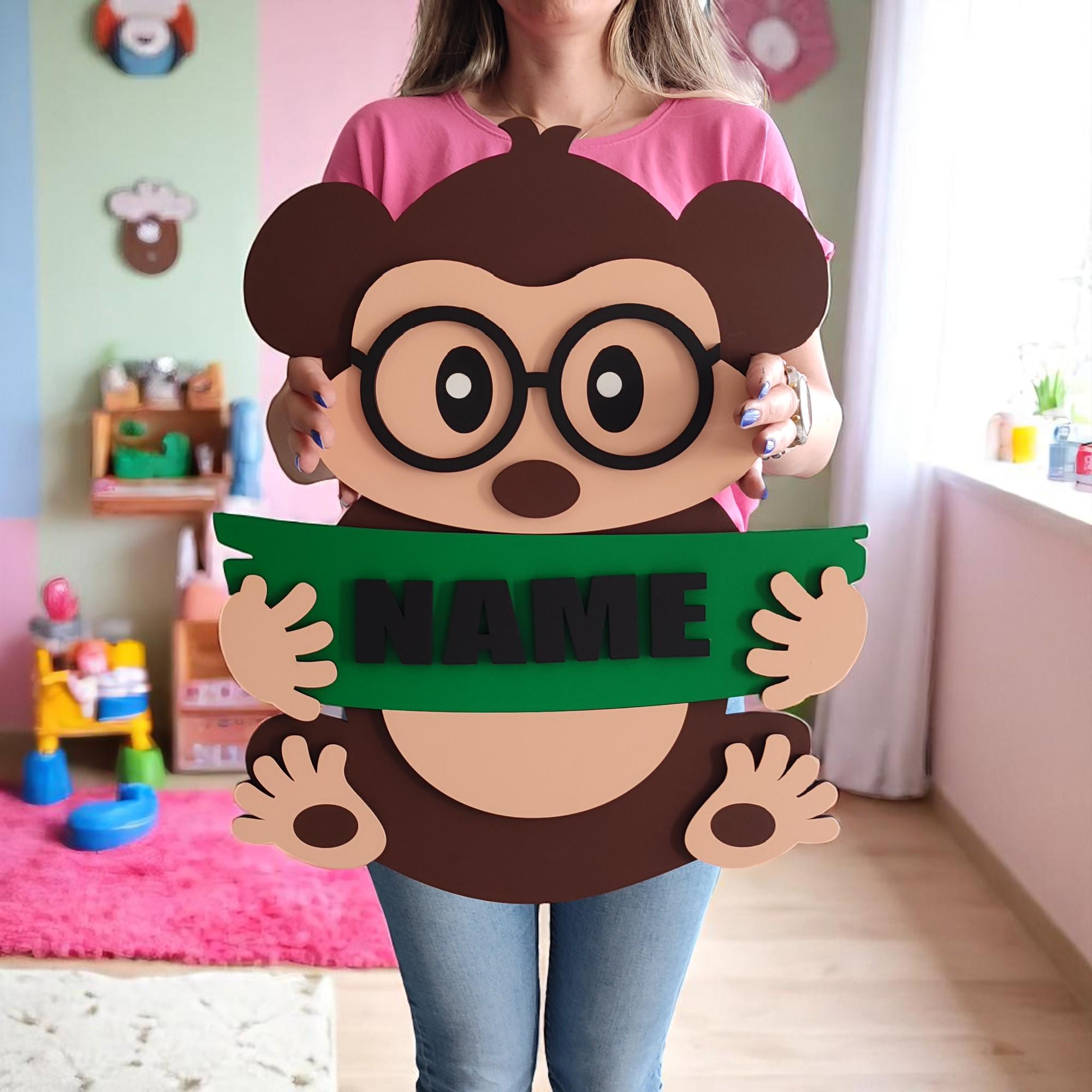 Personalized Monkey Wall Decor with Name | Standing Nursery Door Sign | Hand-Painted MDF Kids Room Art | Custom Baby Room Decoration 📝 Please write the name you want in the personalization box. If n...