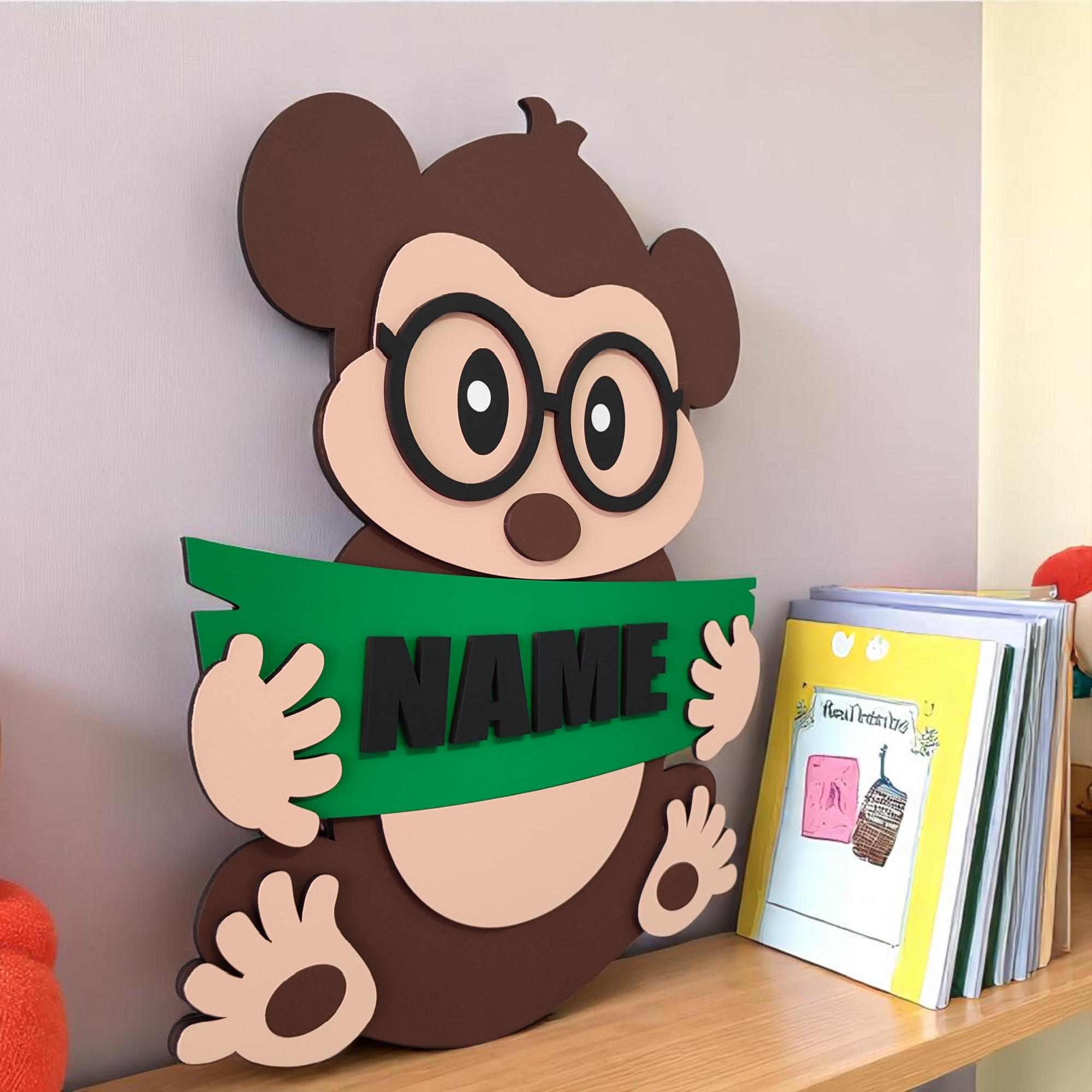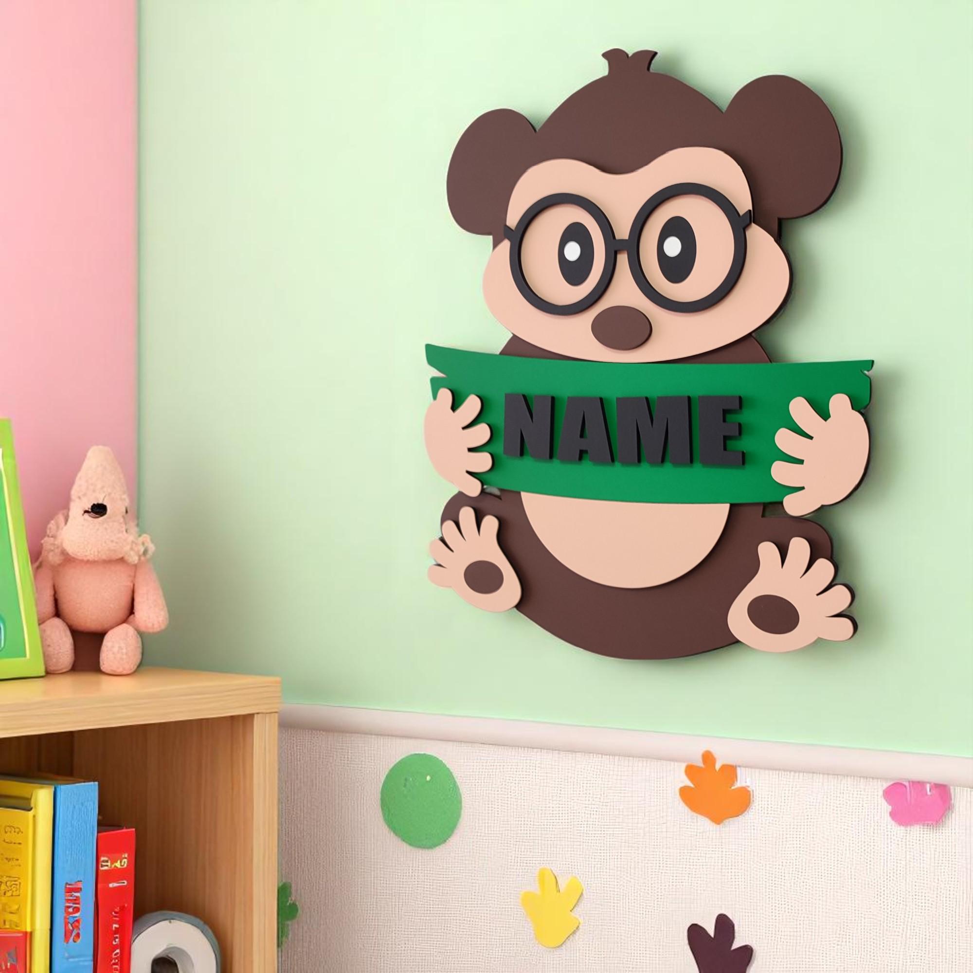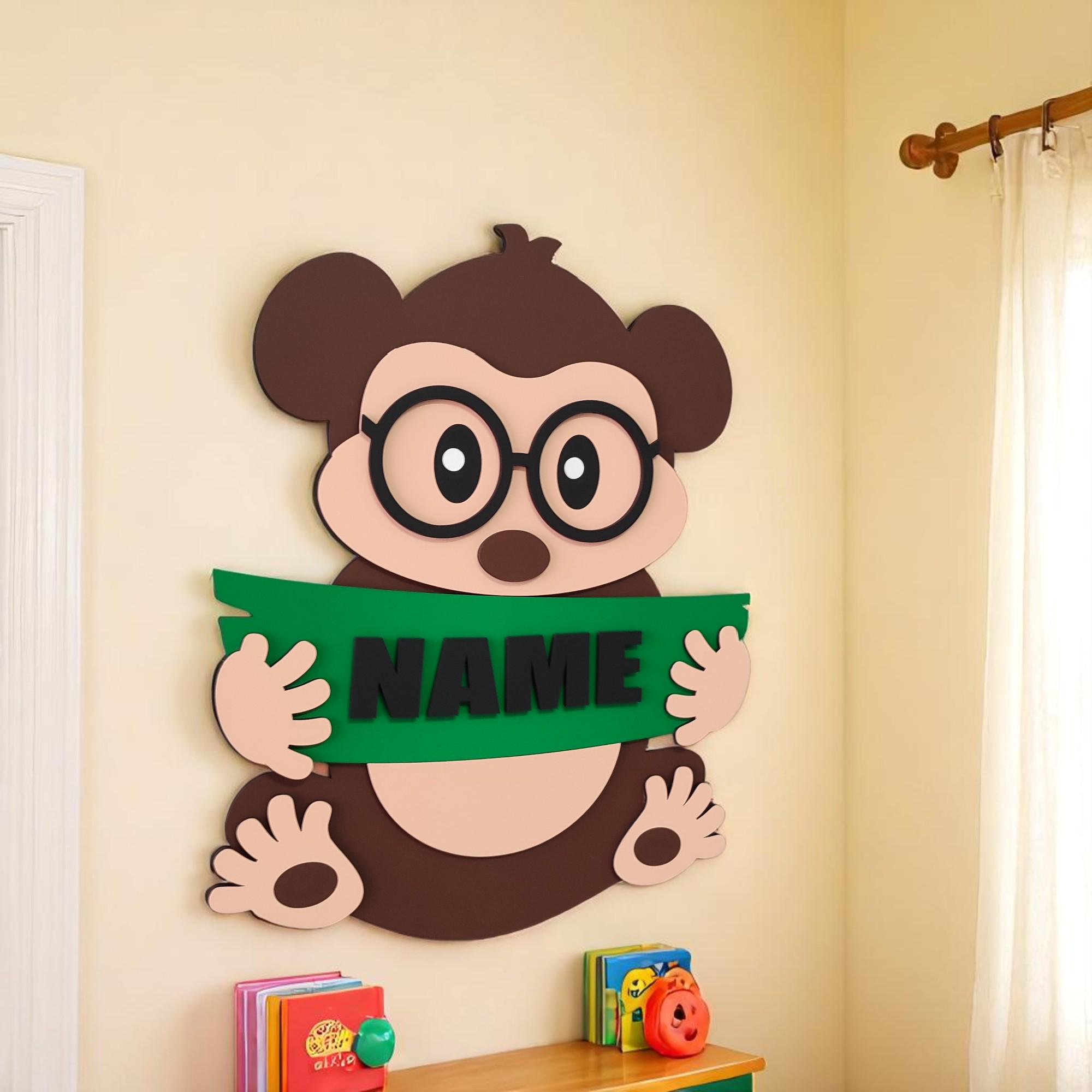 Personalized Monkey Wall Decor with Name | Standing Nursery Door Sign | Hand-Painted MDF Kids Room Art | Custom Baby Room Decoration