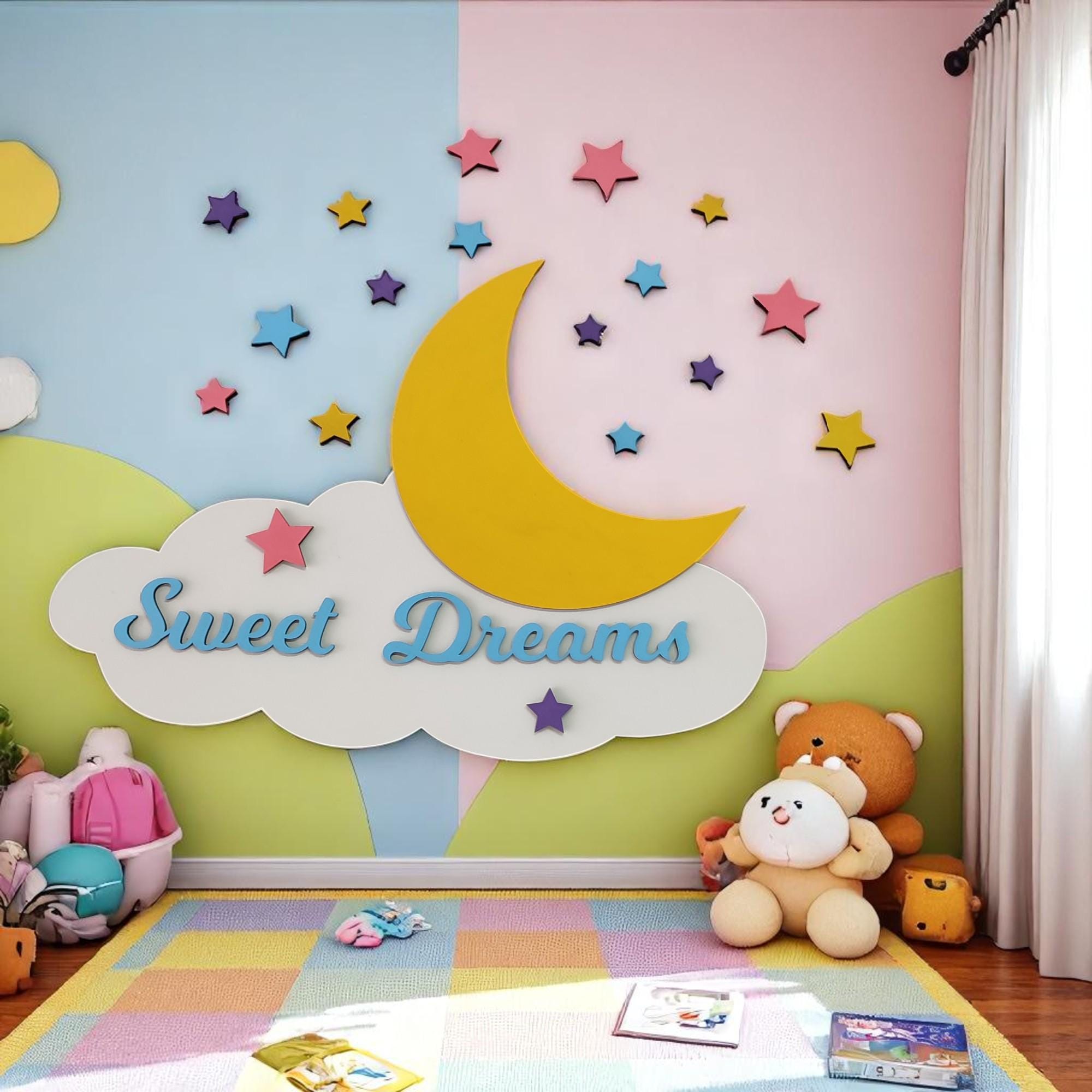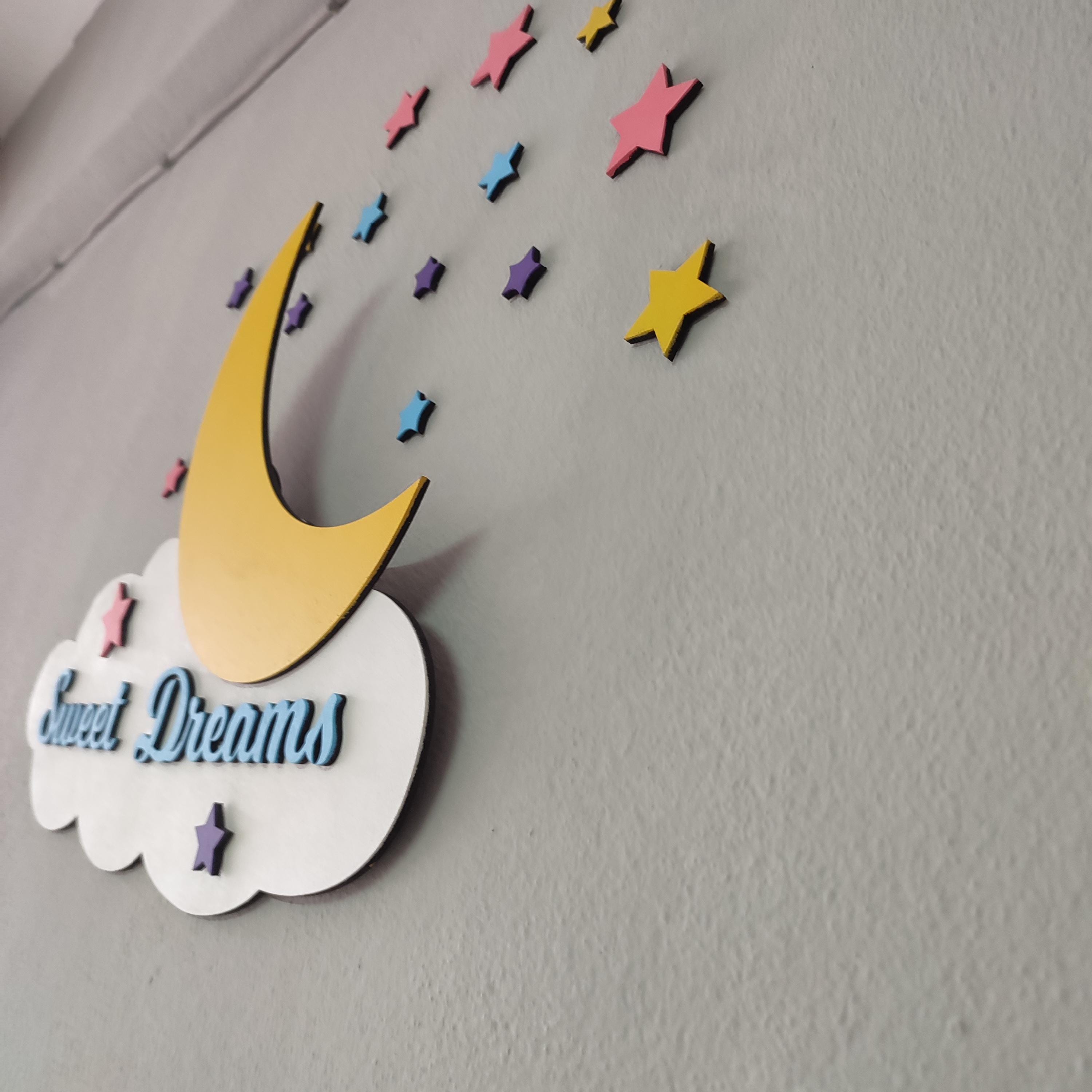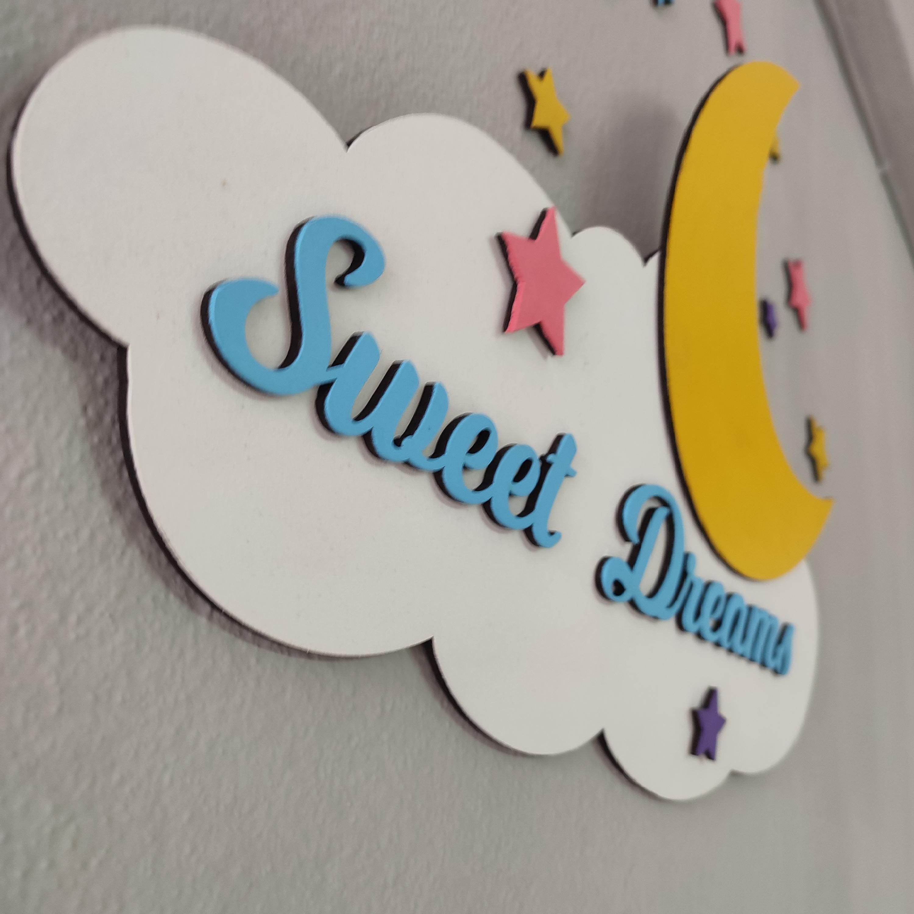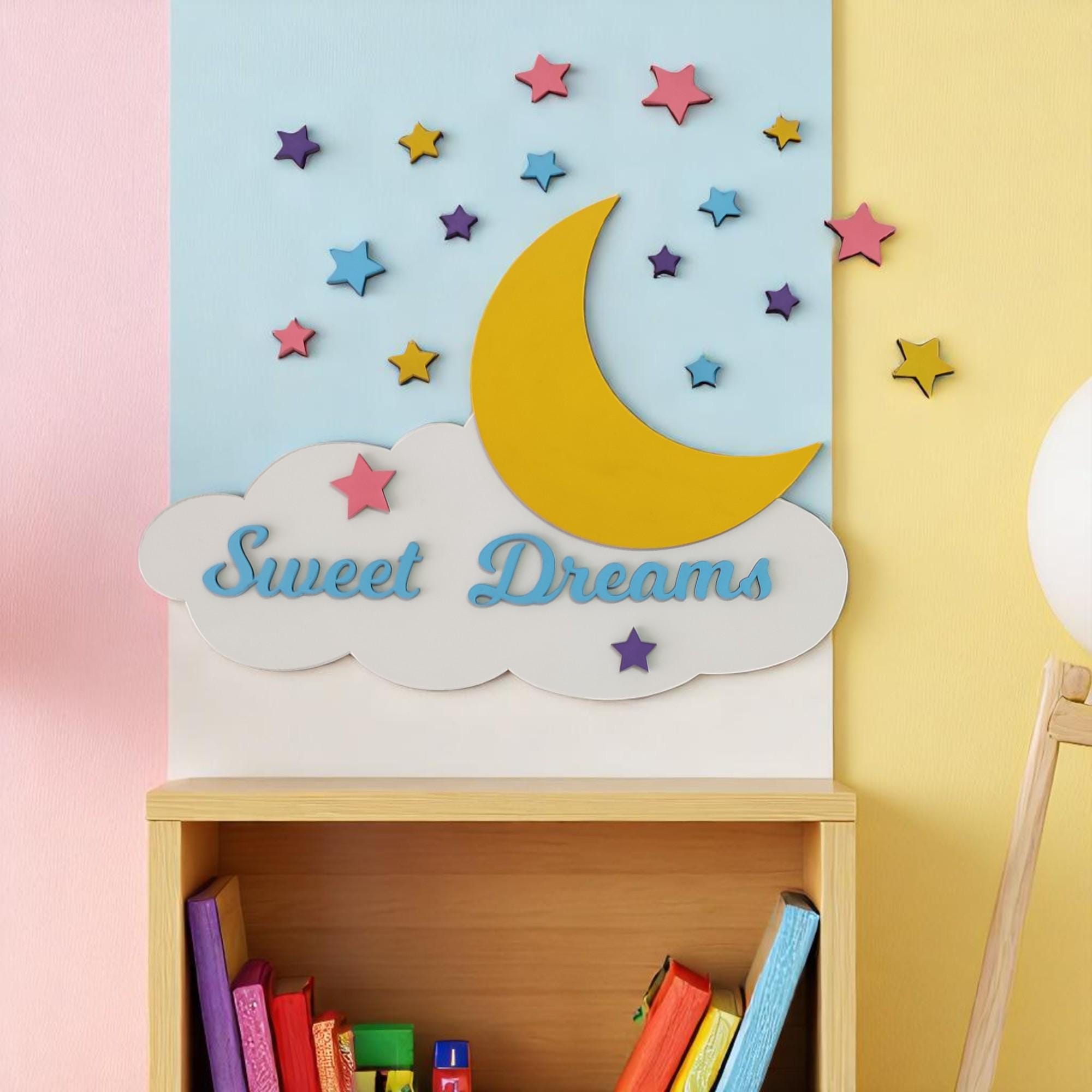 Personalized Sweet Dreams Moon Star and Cloud Themed Kids Room Decor | Custom Name Nursery Wall Hanging | Hand-Painted MDF Baby Room Sign