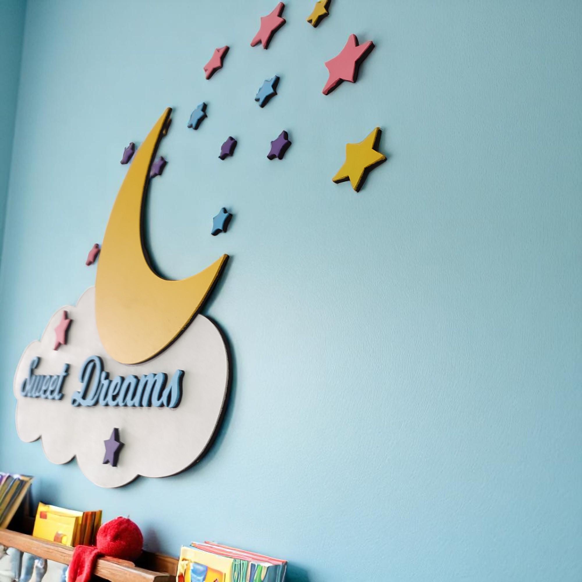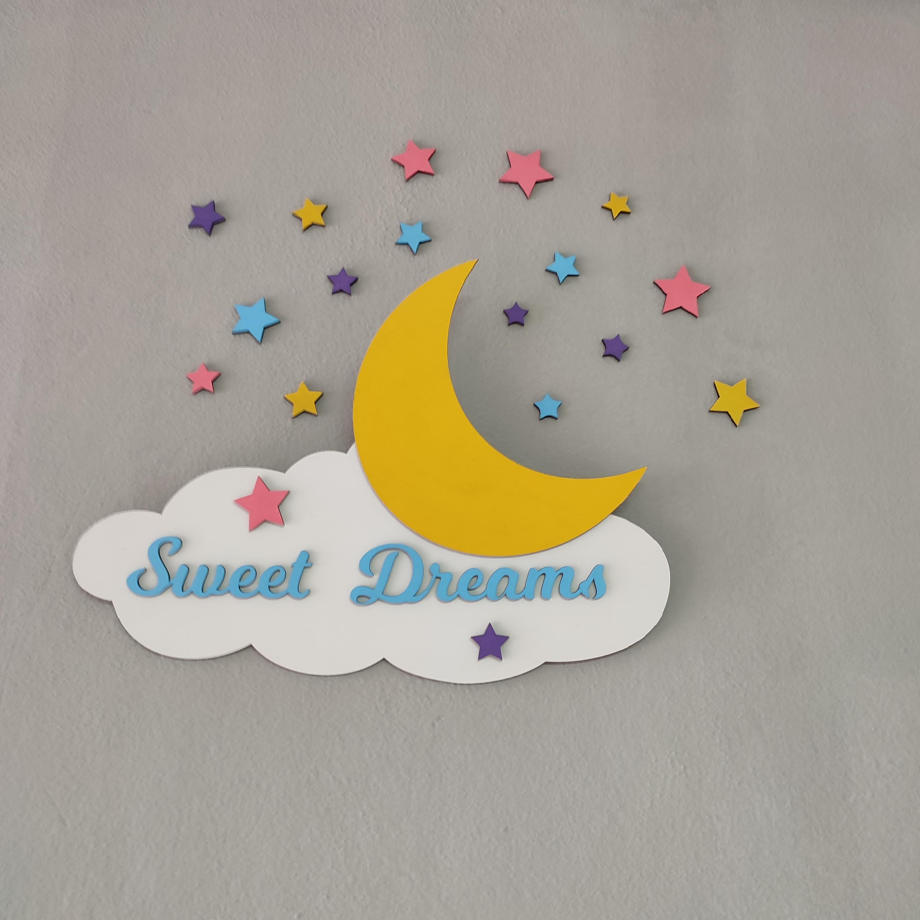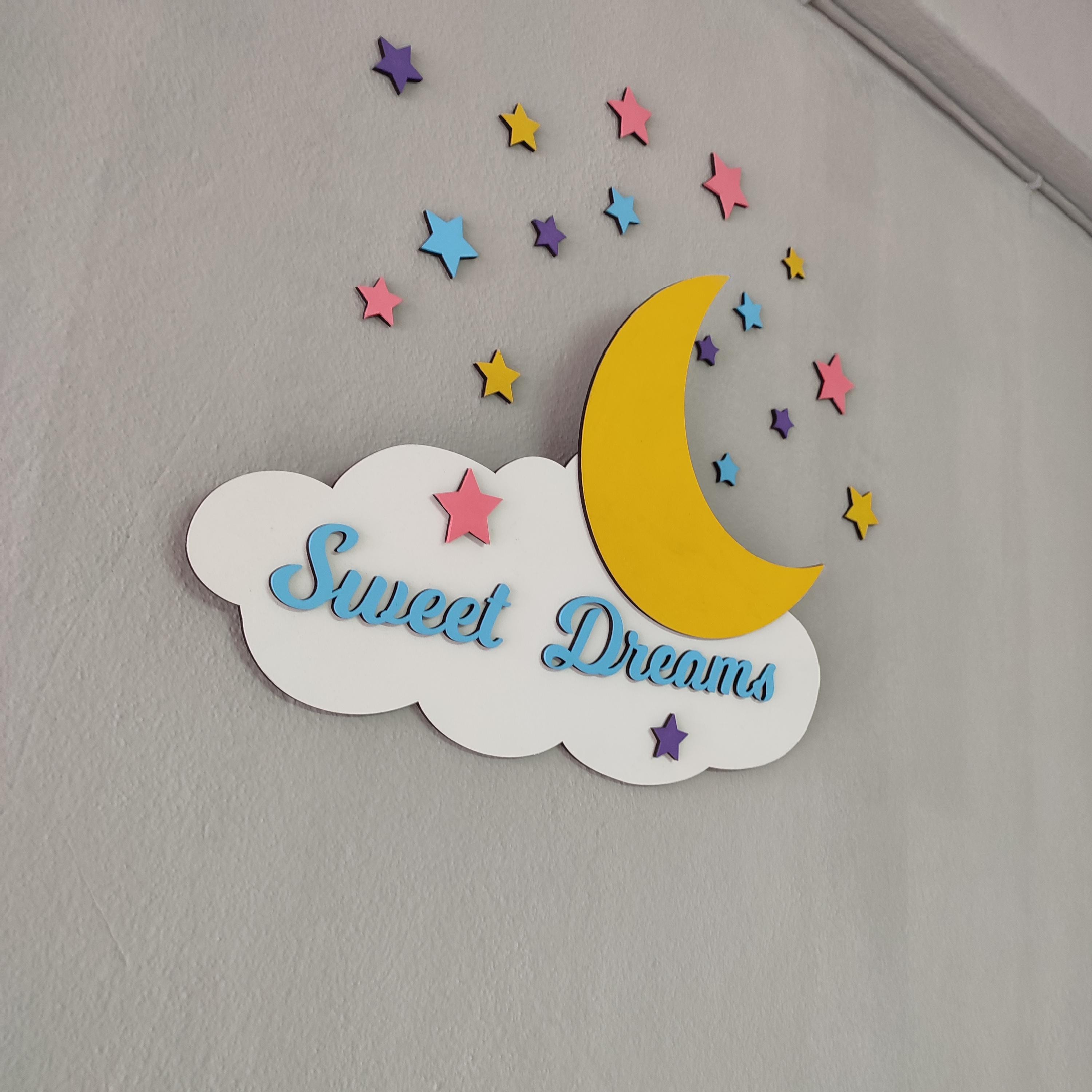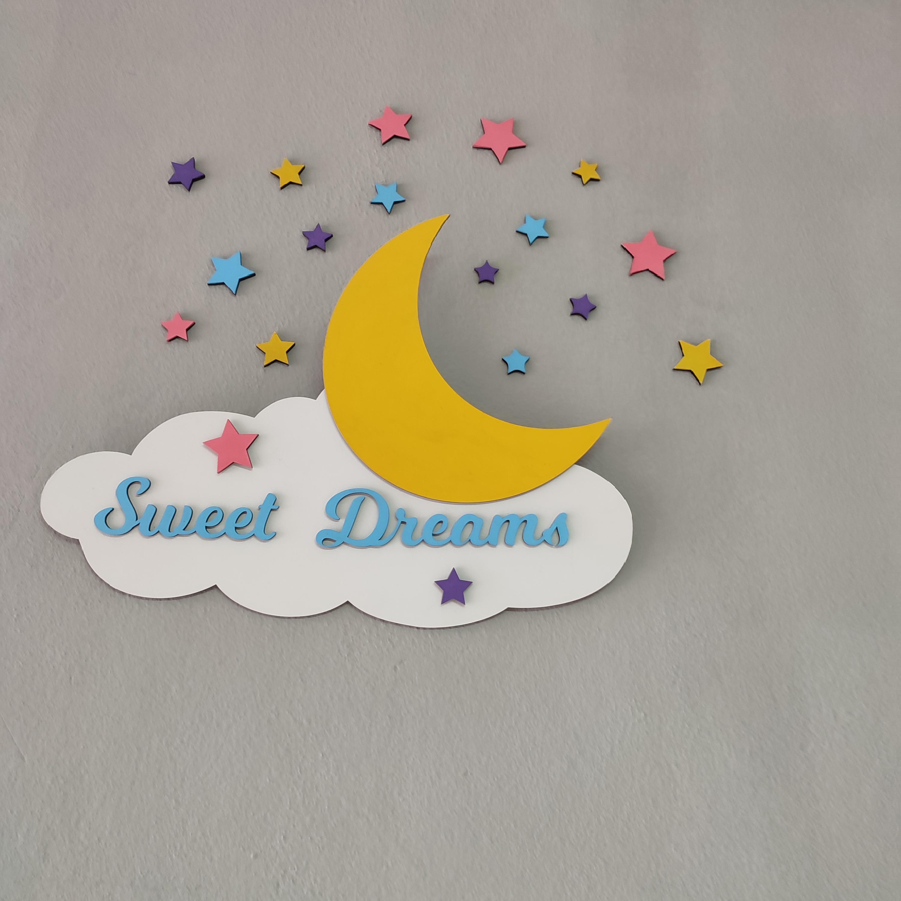 Personalized Sweet Dreams Moon Star and Cloud Themed Kids Room Decor | Custom Name Nursery Wall Hanging | Hand-Painted MDF Baby Room Sign 📝 Please write the name you want to personalize in the perso...