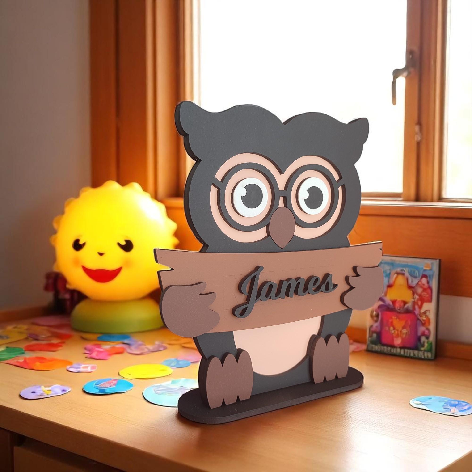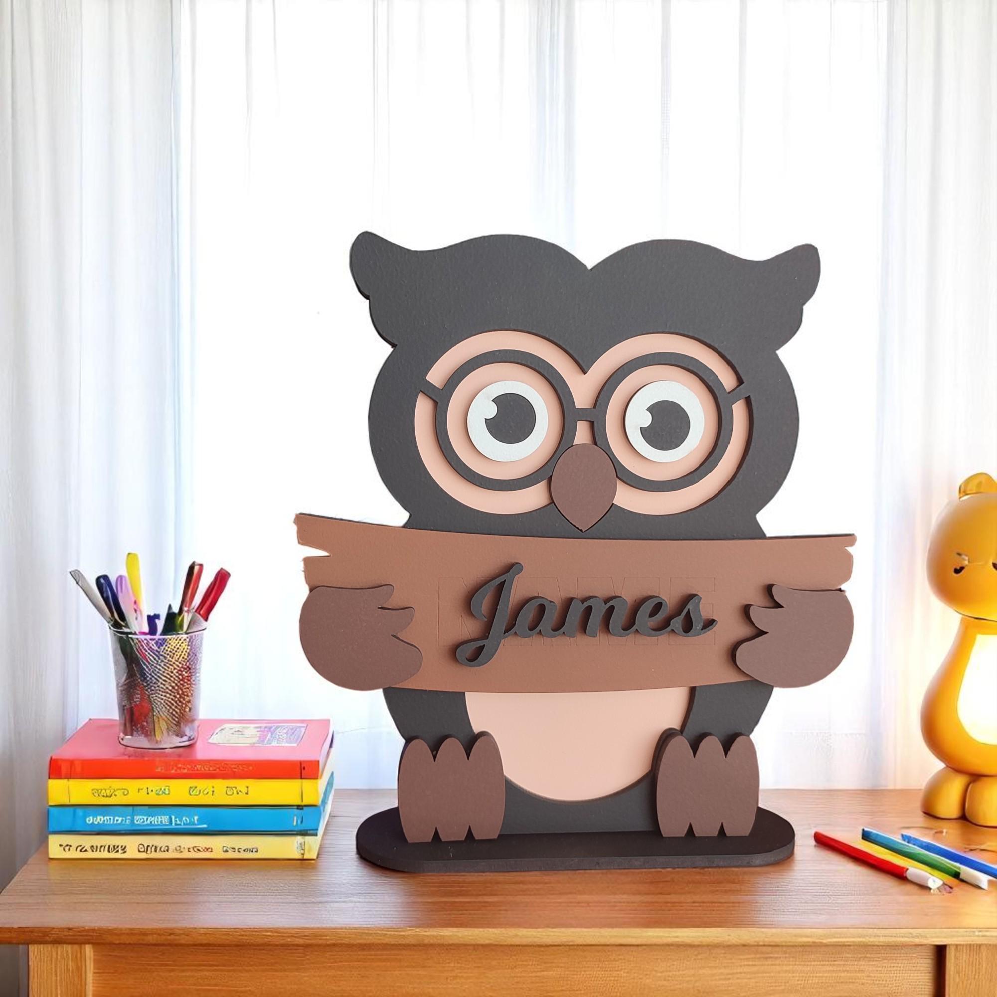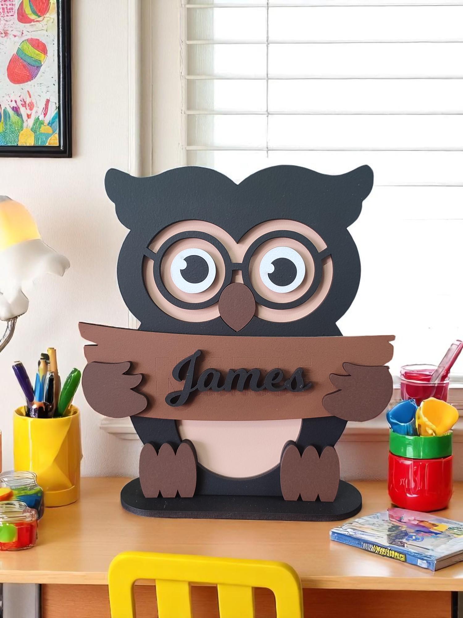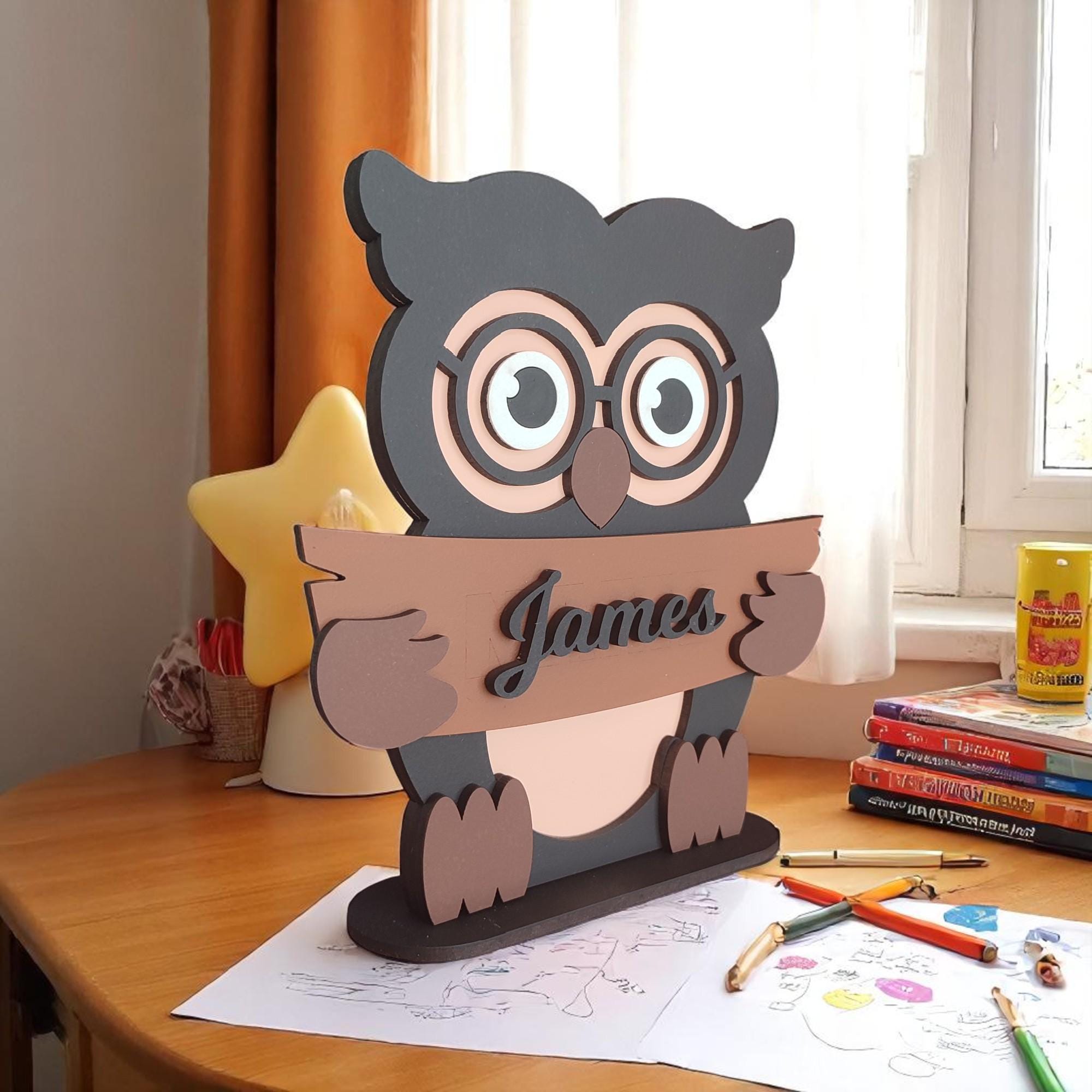 Personalized Owl Desk Stand for Kids Room | Custom Name Tabletop Decor | Hand-Painted MDF Nursery Animal Art | Baby Room Gift 📝 Please enter the name you'd like in the personalization box. If no nam...