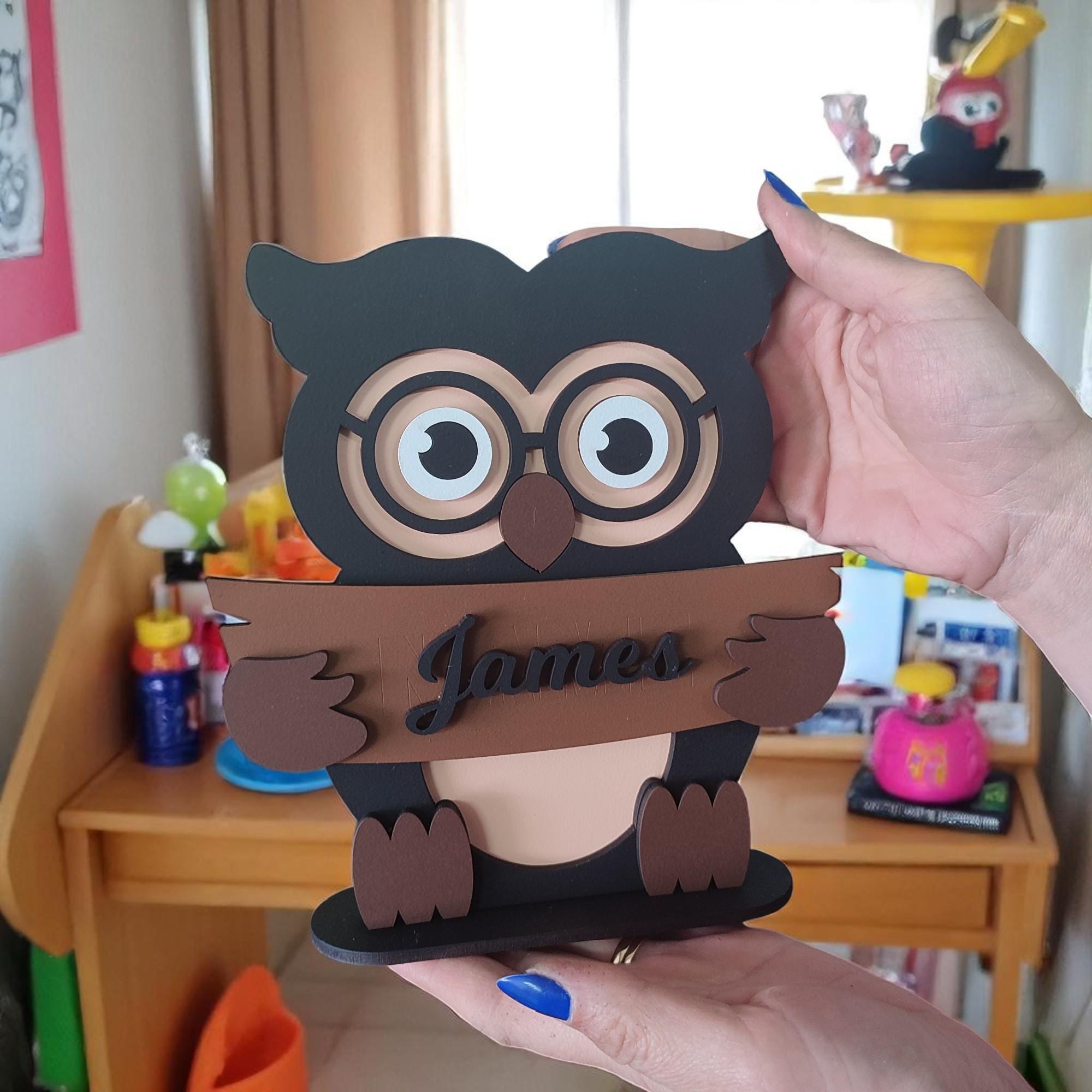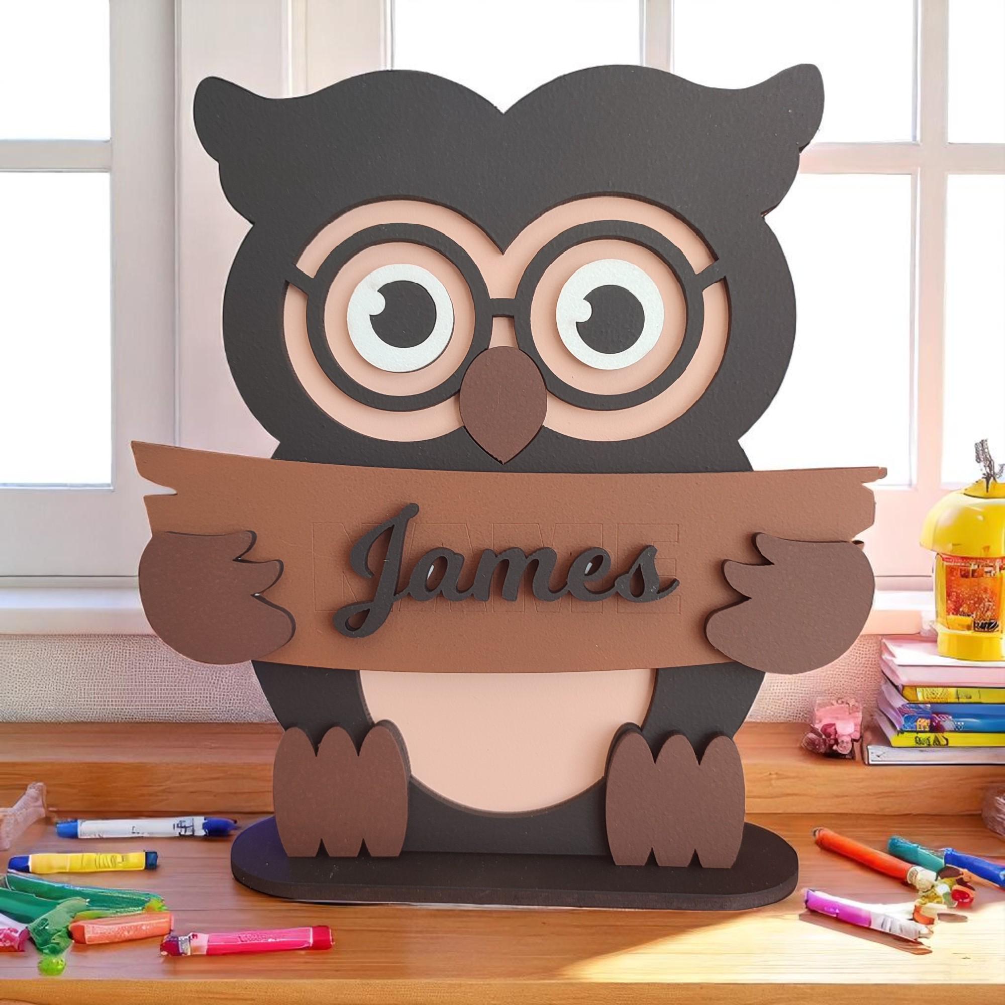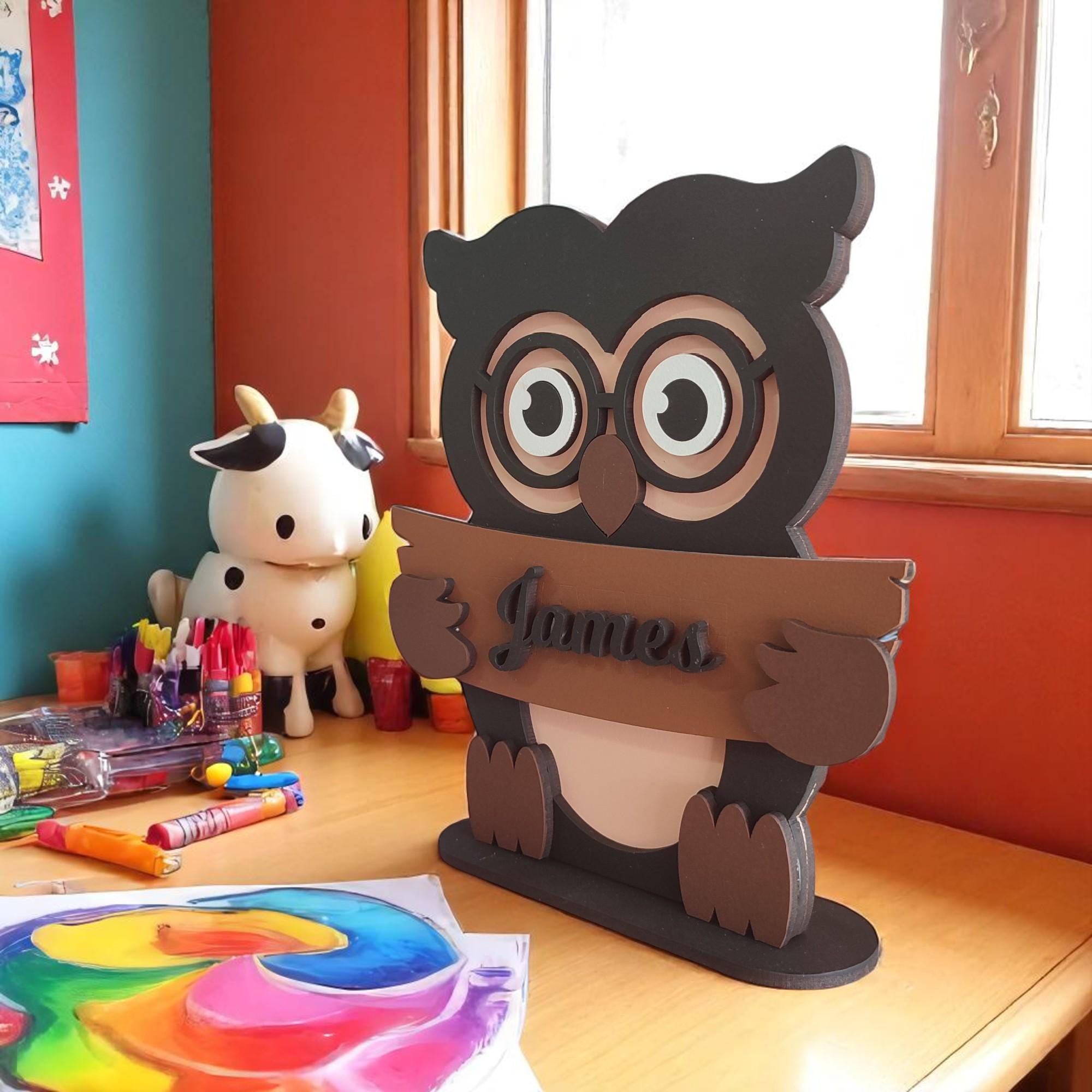 Personalized Owl Desk Decor: Hand-Painted MDF Nursery Art