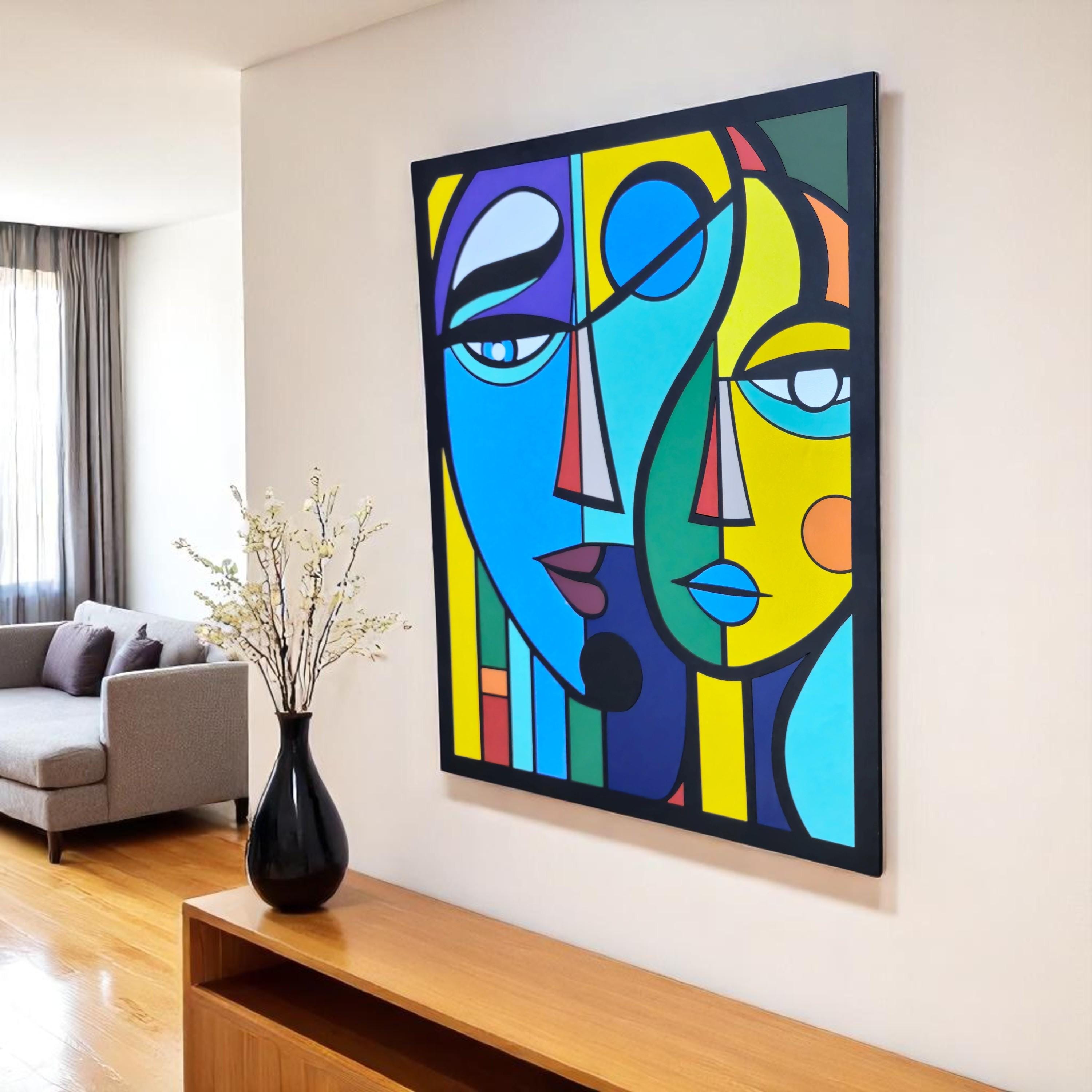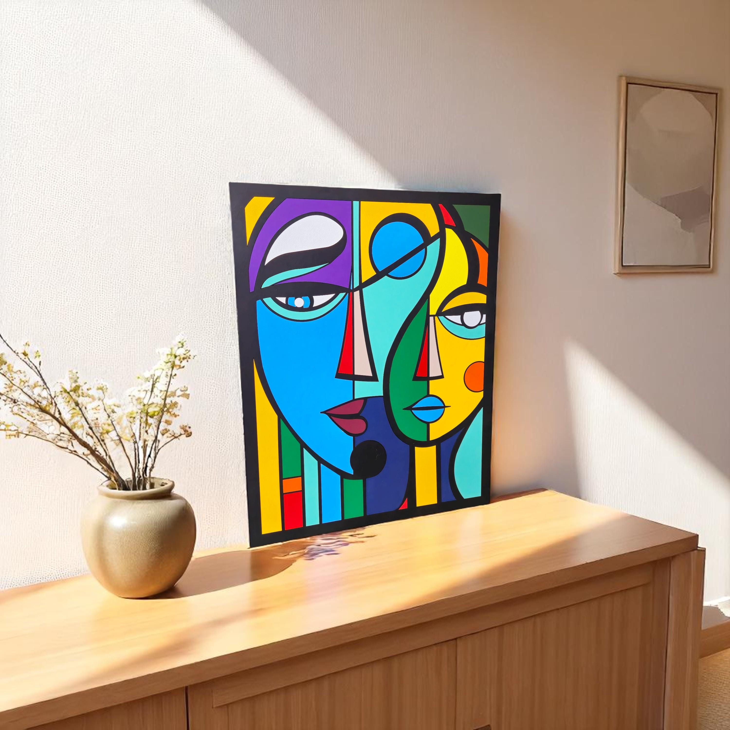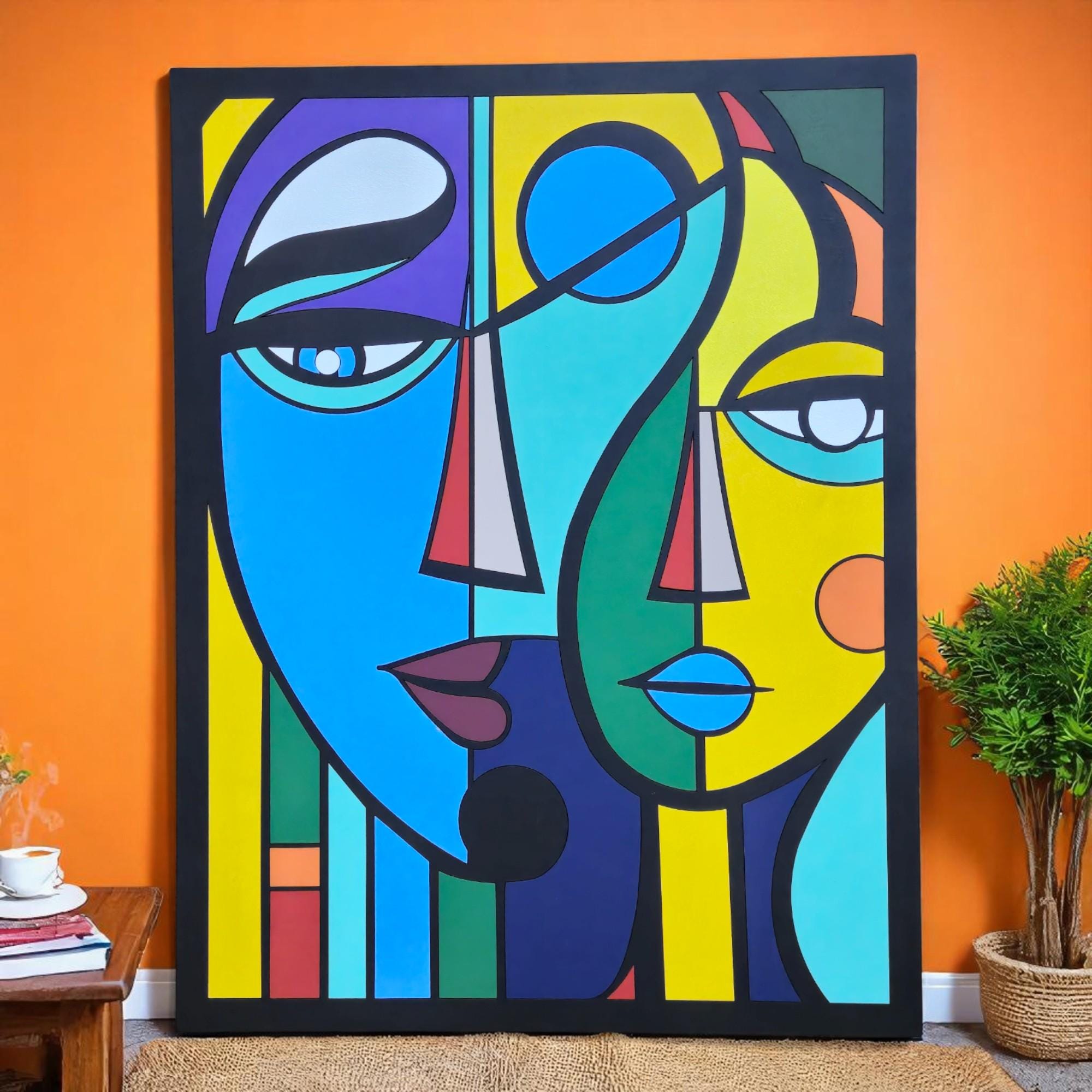 Cubism-Inspired Artistic Design – Features vivid, asymmetrical faces and abstract lines inspired by Picasso's iconic cubist movement.