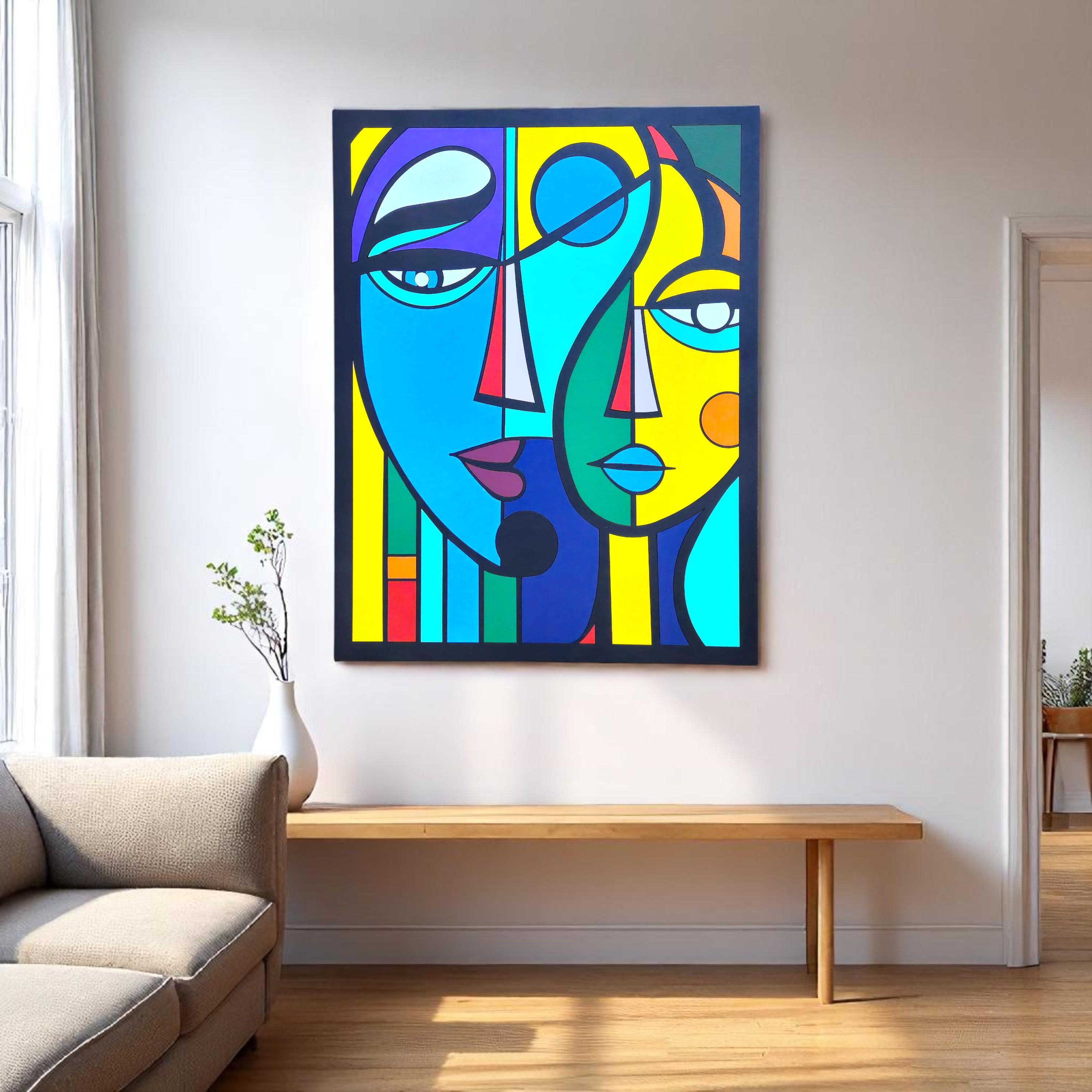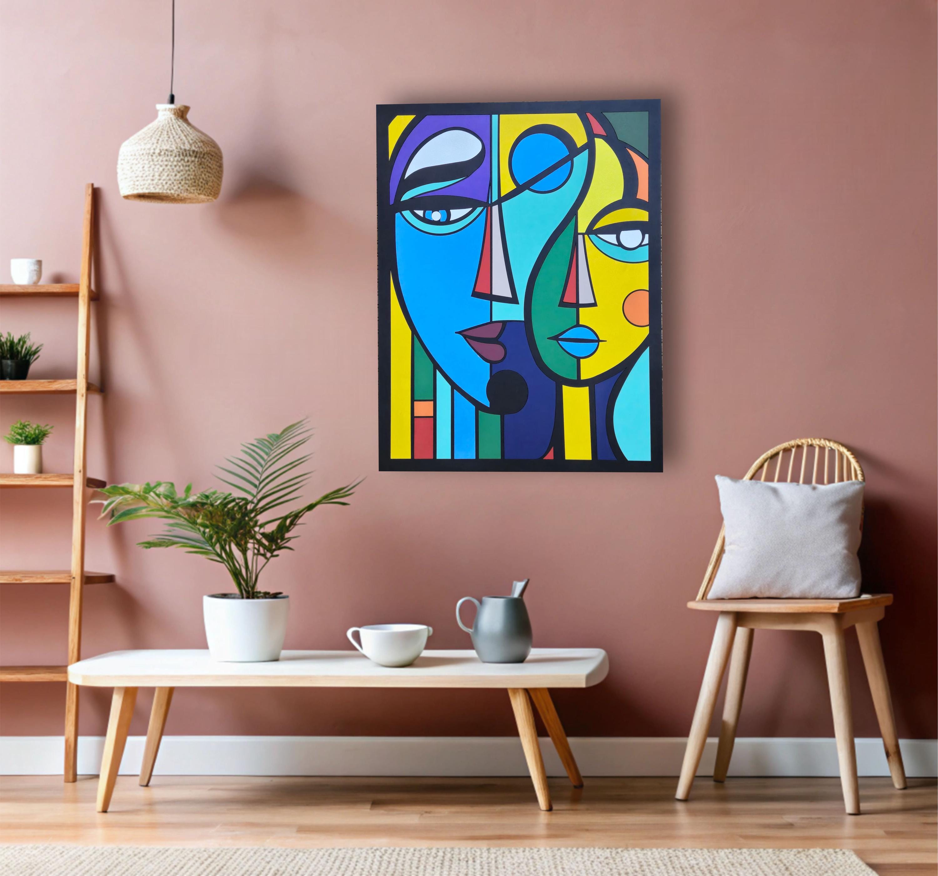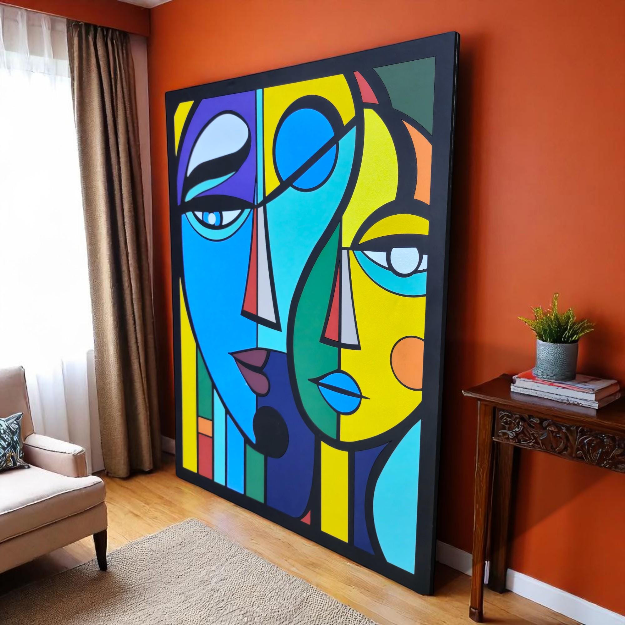 Cubism-Inspired Artistic Design – Features vivid, asymmetrical faces and abstract lines inspired by Picasso's iconic cubist movement.