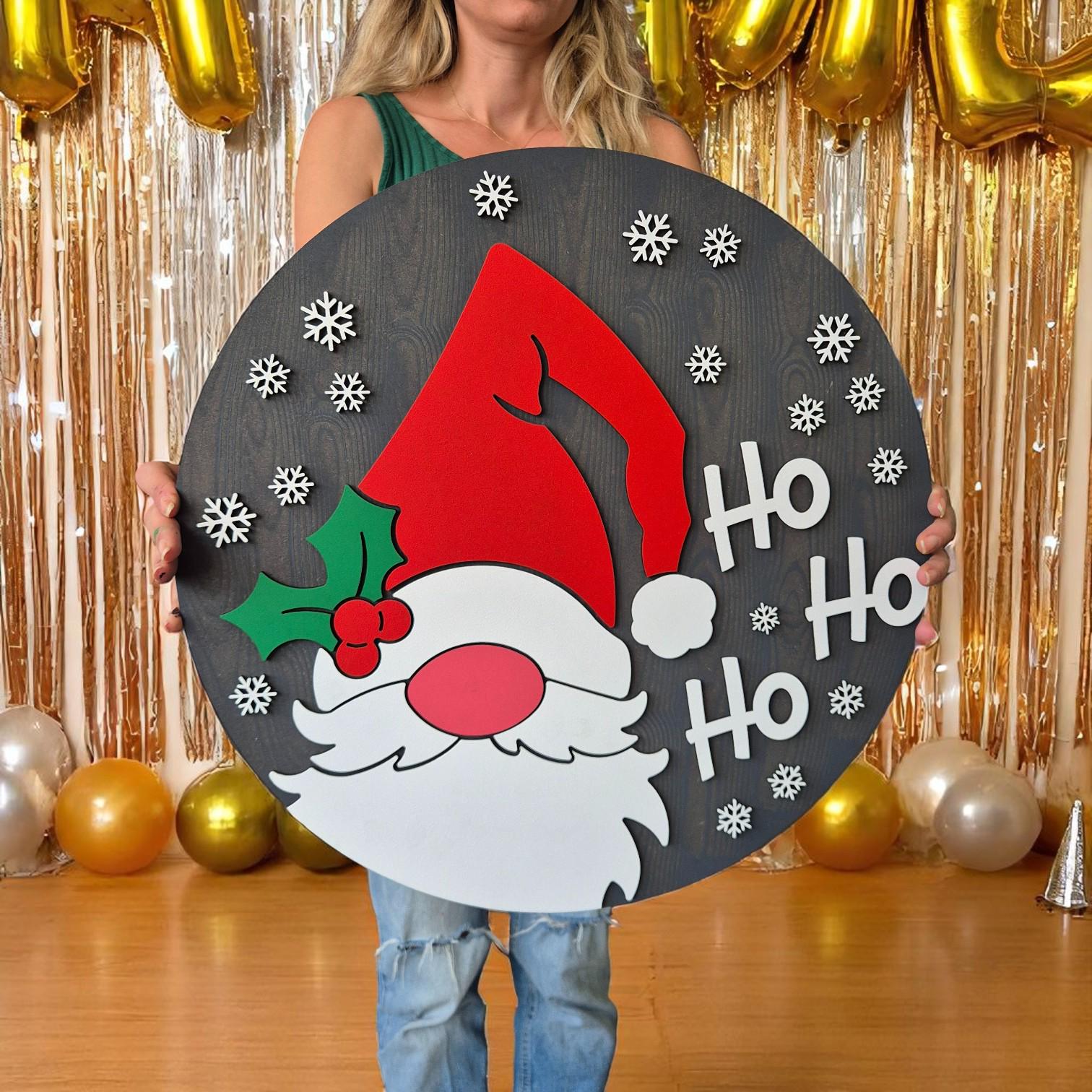 Ho Ho Ho Christmas Wall Art | Festive Wooden Sign | Holiday Home Decor | Santa Claus Decoration | Rustic Christmas Gift