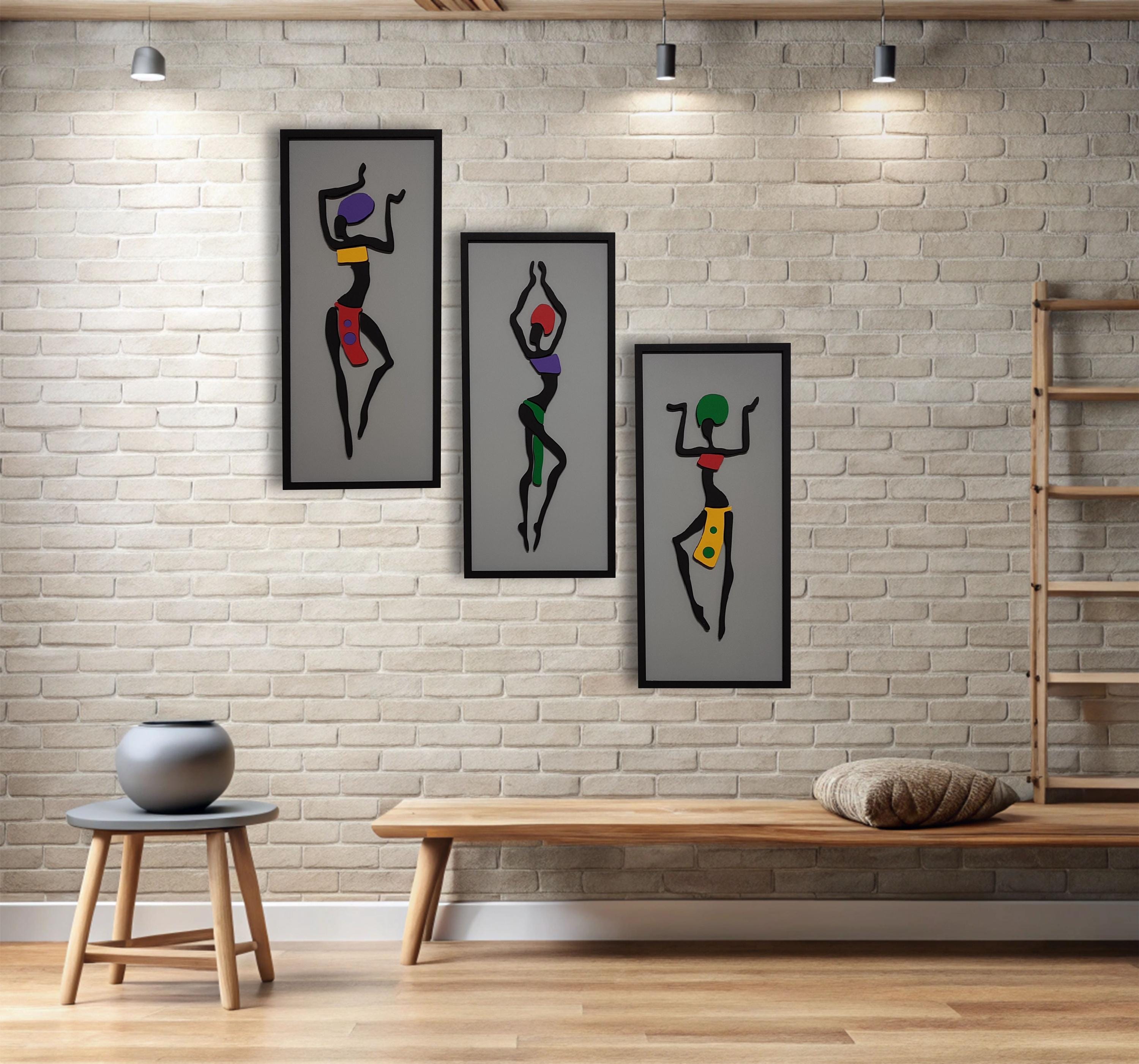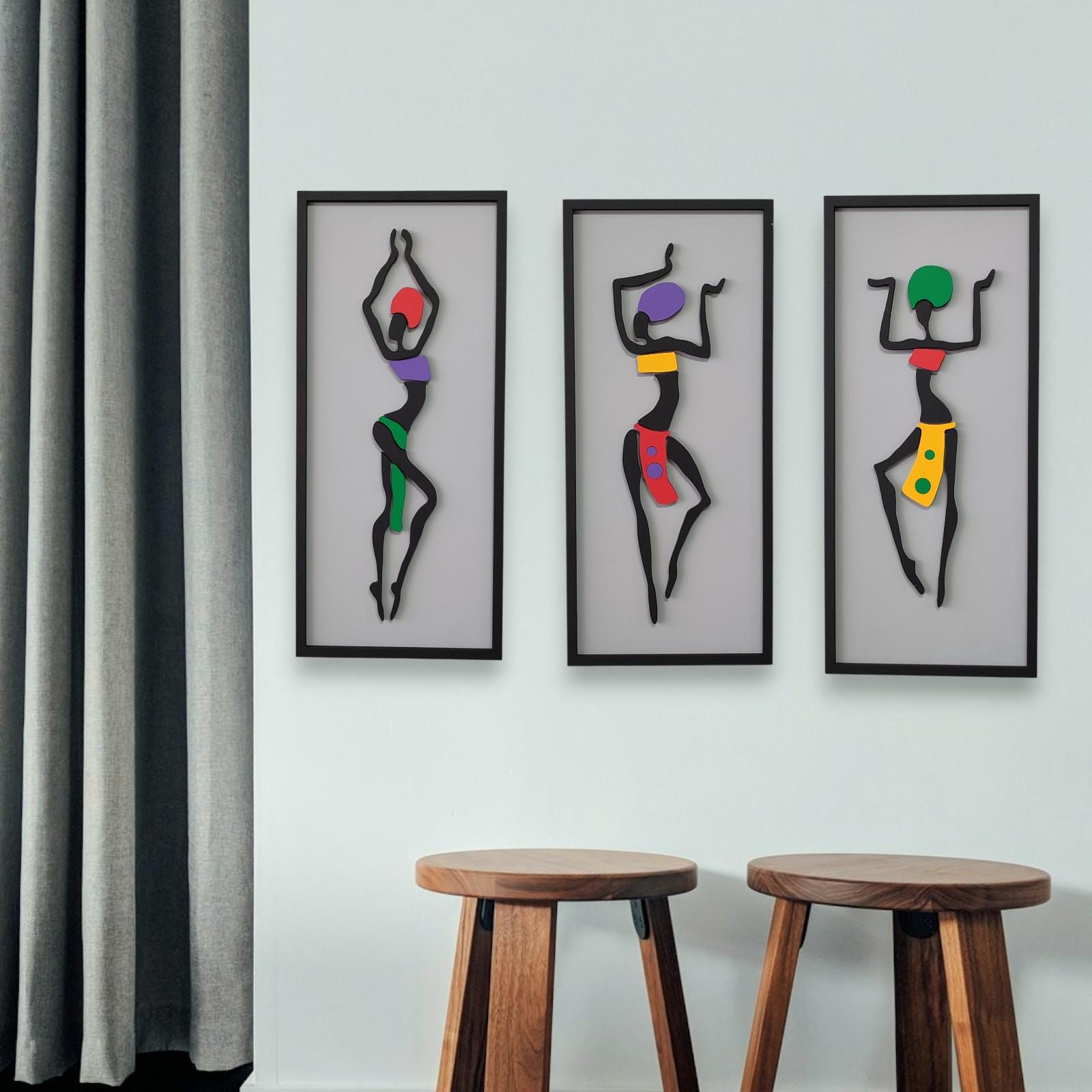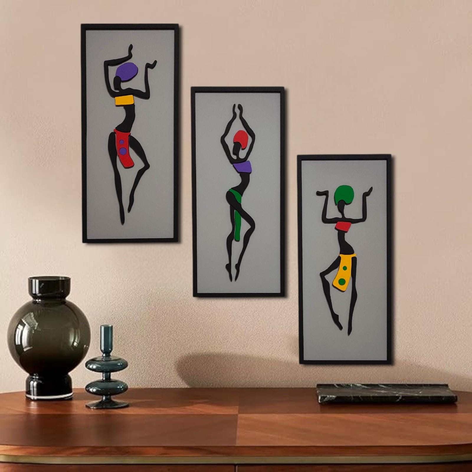 Triptych African Woman Art | 3-Piece Wooden Wall Decor | Modern Home Design Living Room Accent | Unique Housewarming Gift African Wall Art