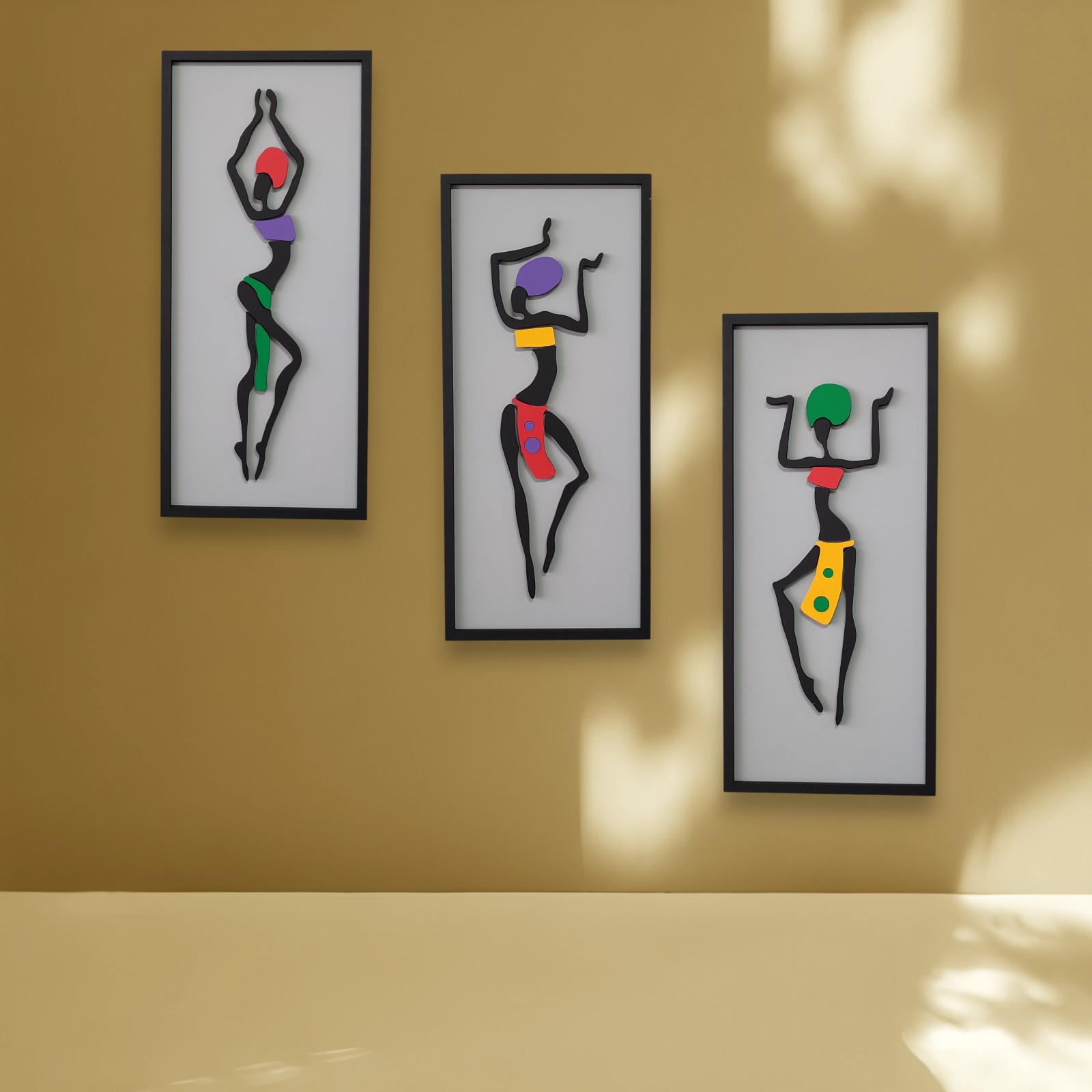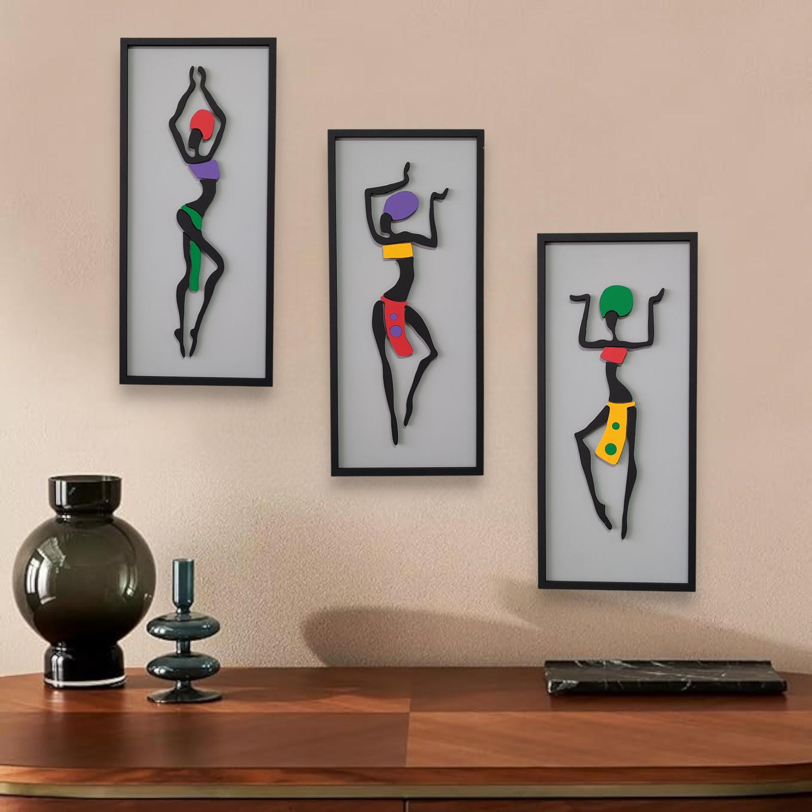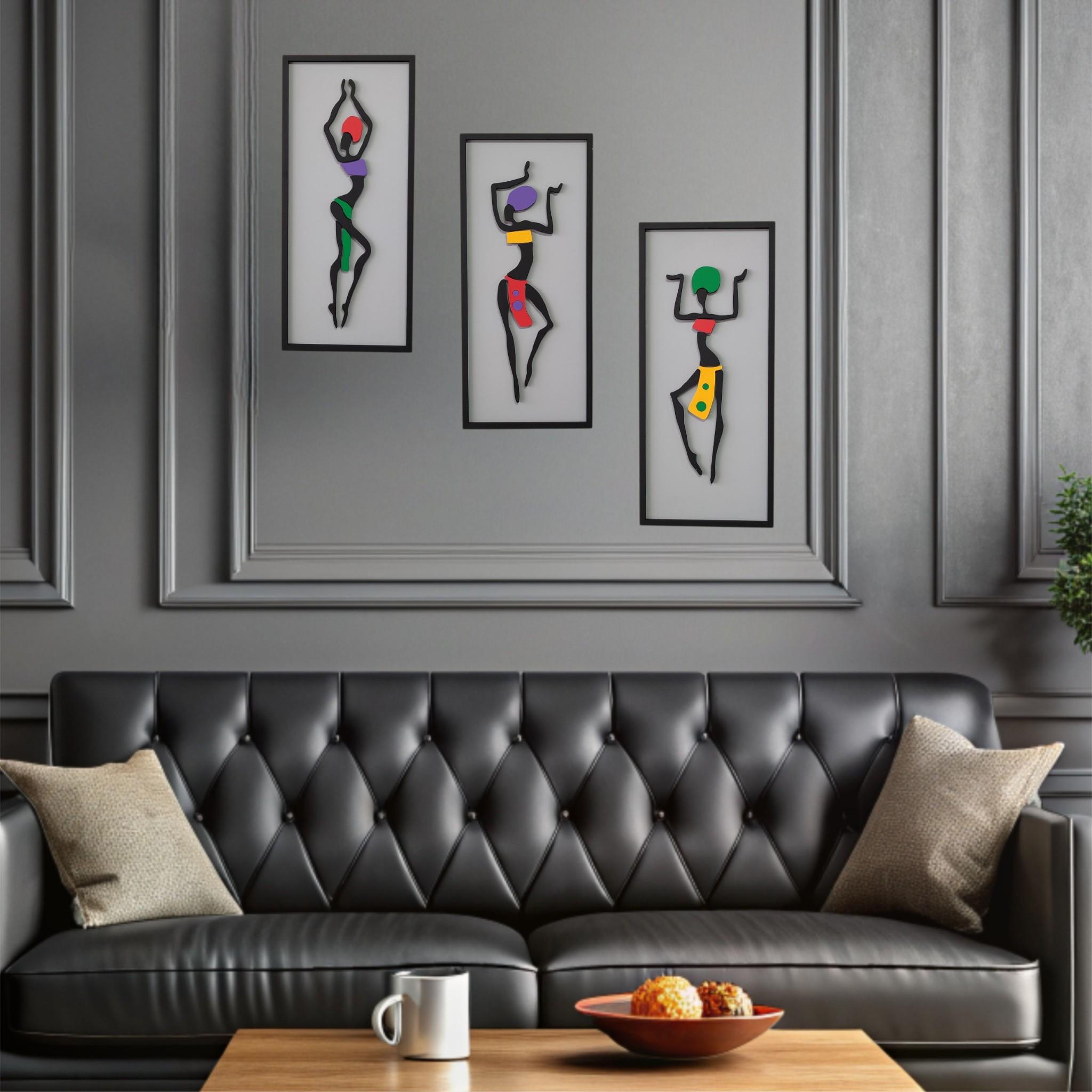 Triptych African Woman Art | 3-Piece Wooden Wall Decor | Modern Home Design Living Room Accent | Unique Housewarming Gift African Wall Art